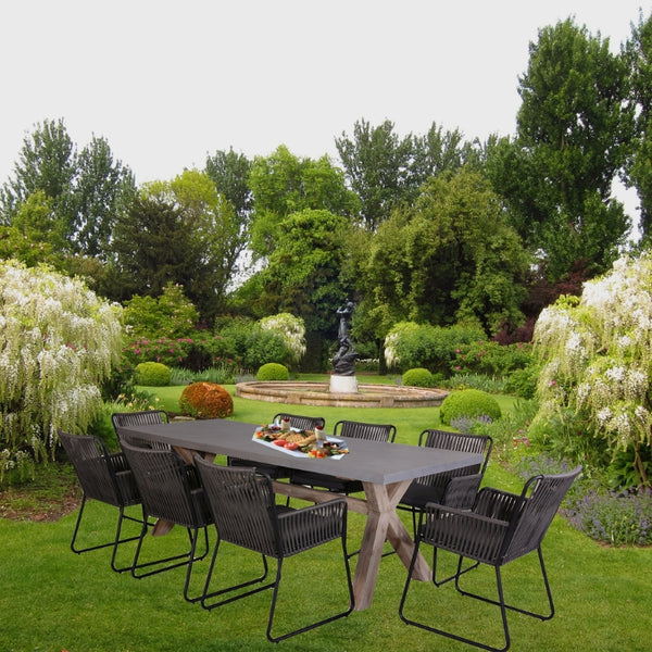 Oro 9pc Set Outdoor Dining Extension Aluminium Table 8 Chair Charcoal