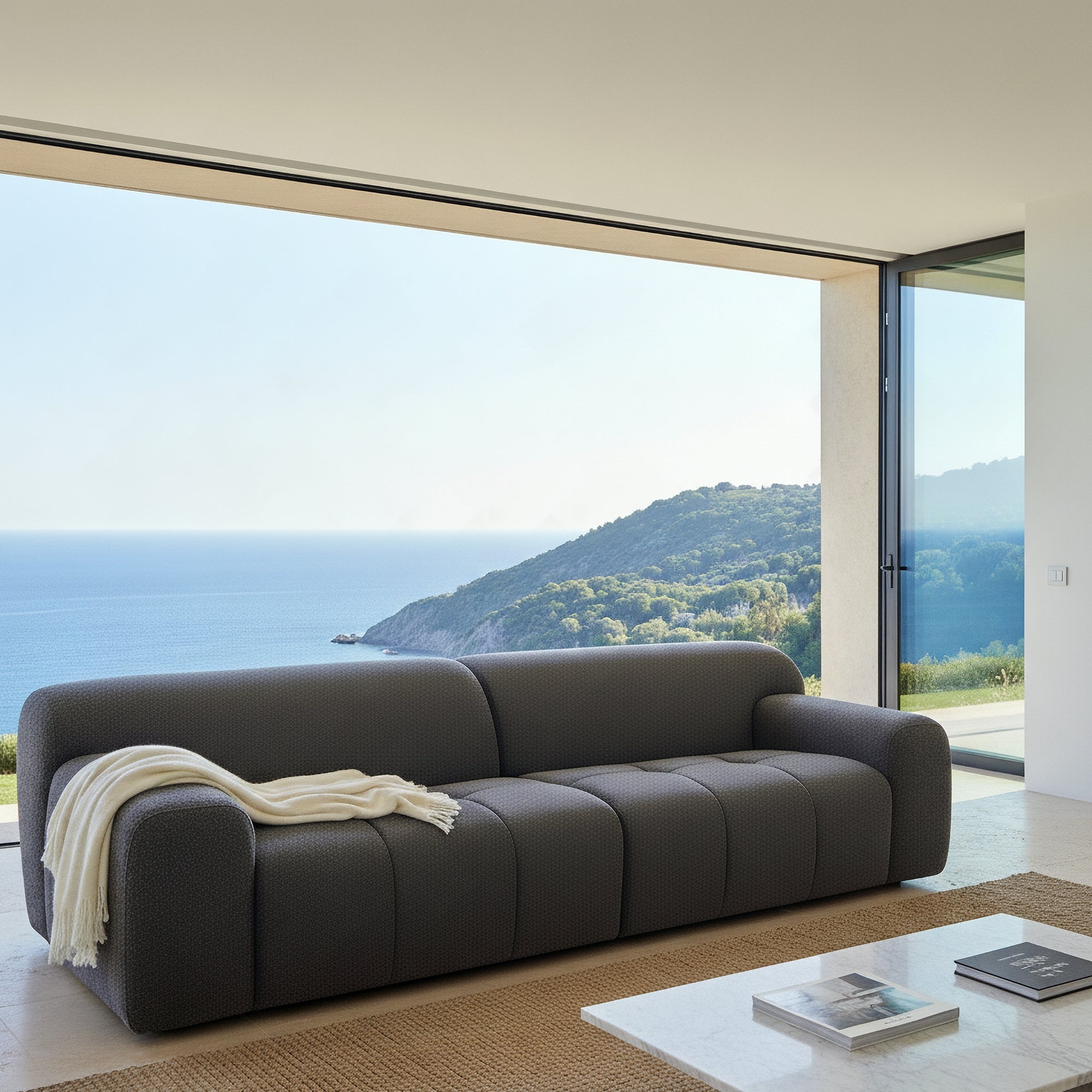 Aero 3 Seater Boucle Fabric Sofa Lounge Charcoal