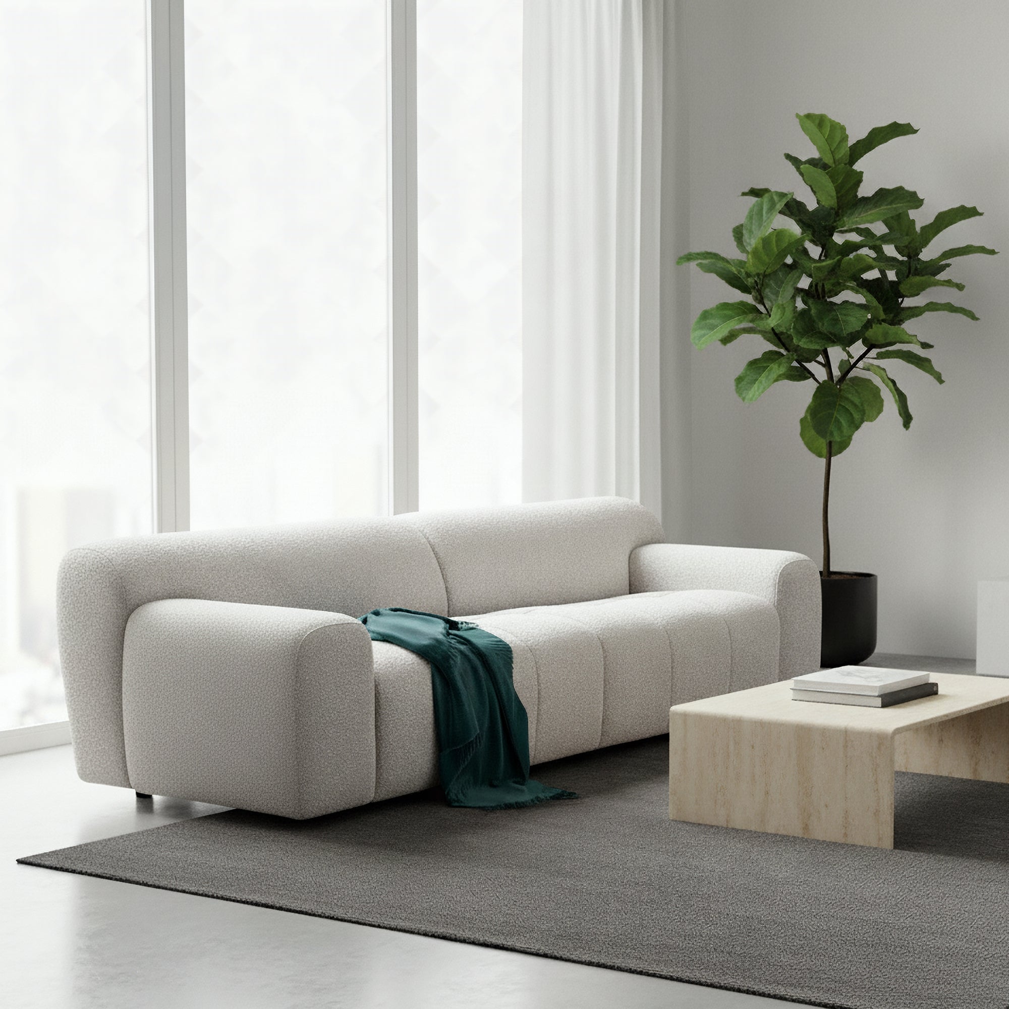 Aero 3 Seater Boucle Fabric Sofa Lounge Coco White