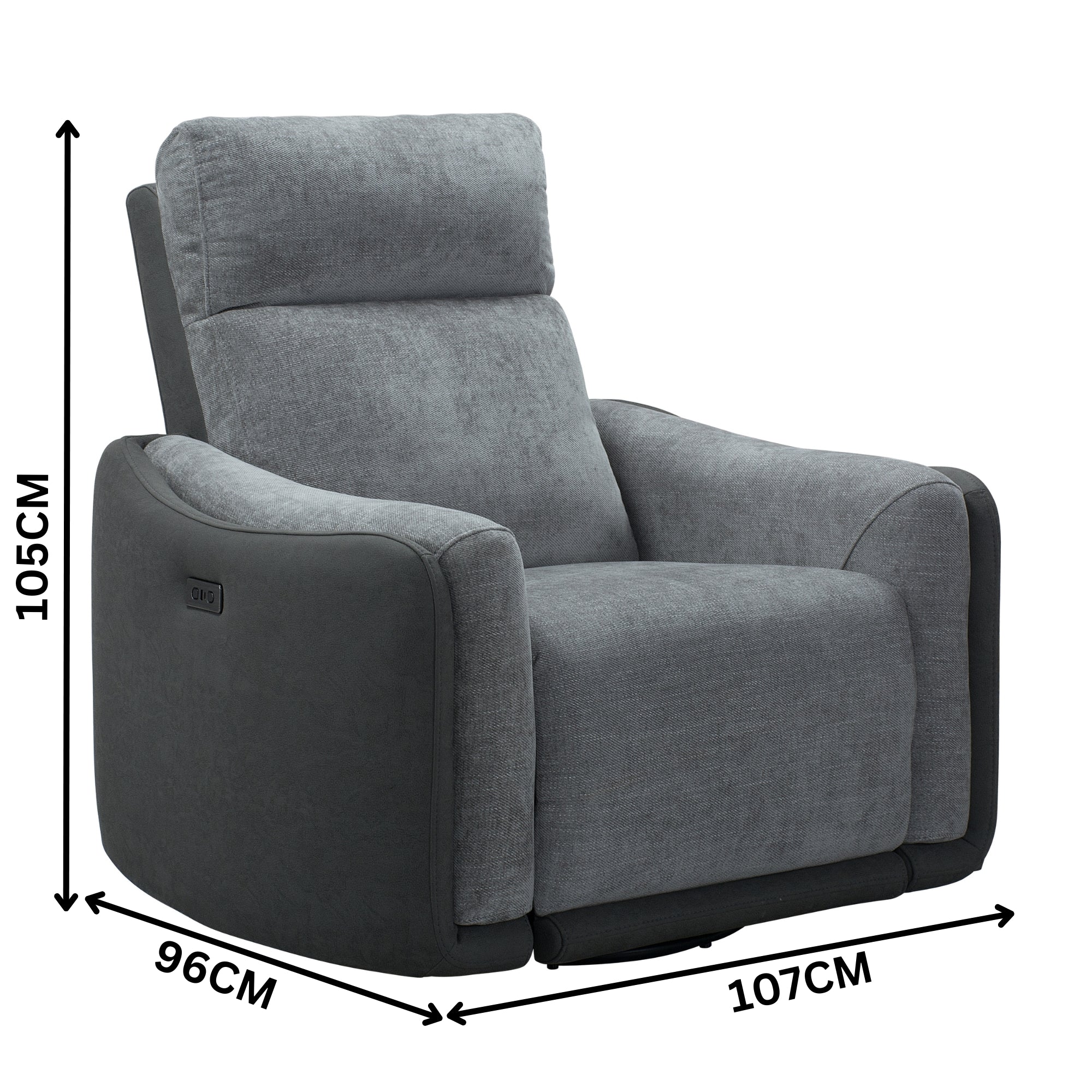 Alexios 1 Seater Fabric Electric Recliner Sofa Chair Lounge Grey