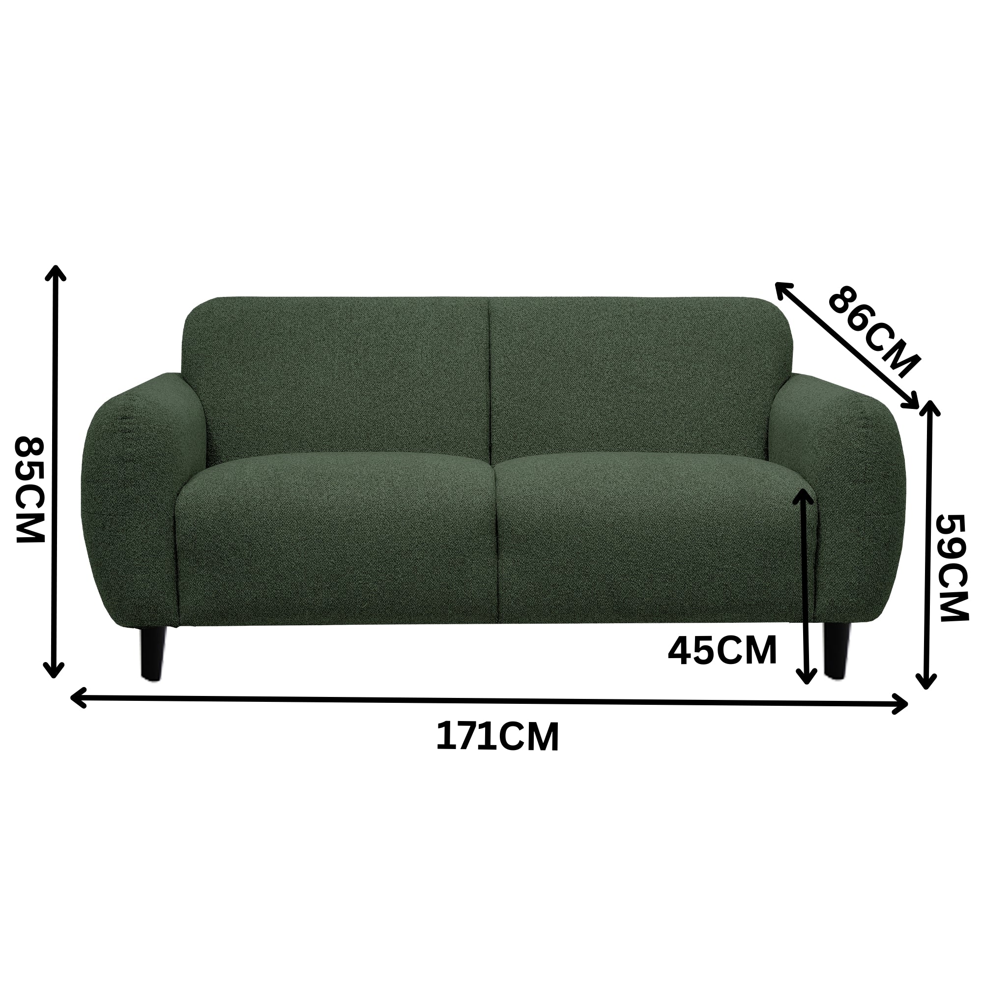 Add timeless sophistication and everyday comfort to your living space with this 2-Seater Sofa in elegant kelly green colour. Upholstered in premium textured fabric, this modern sofa blends soft curves with clean lines for a refined look. The gently rounded arms and backrest, complemented by subtle panel stitching, create a sense of relaxed luxury, while the fixed seat and back cushions ensure a neat, structured silhouette. Supported by tapered timber legs available in black and natural finishes, this piece easily adapts to a variety of interior styles - from minimalist contemporary to urban chic. Built with a durable plywood frame and multi-layered support system featuring foam, S-springs, pocket springs, and webbing, this sofa offers long-lasting comfort and support, perfect for both entertaining and lounging.