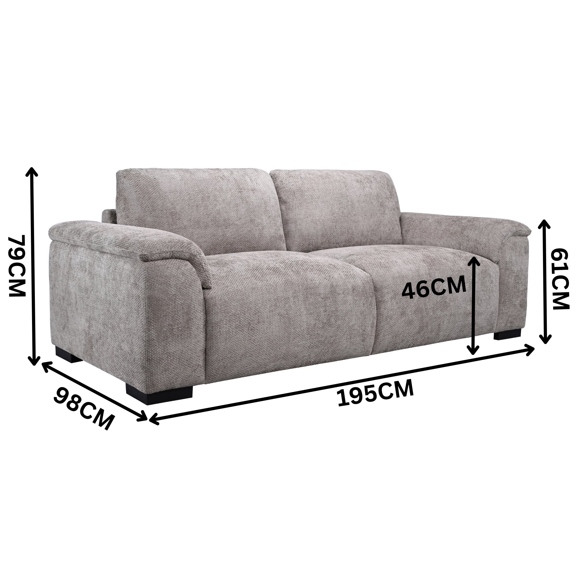 2-Seater Sofa: W195 x D98 x H79.5 (SH46/AH61) CM