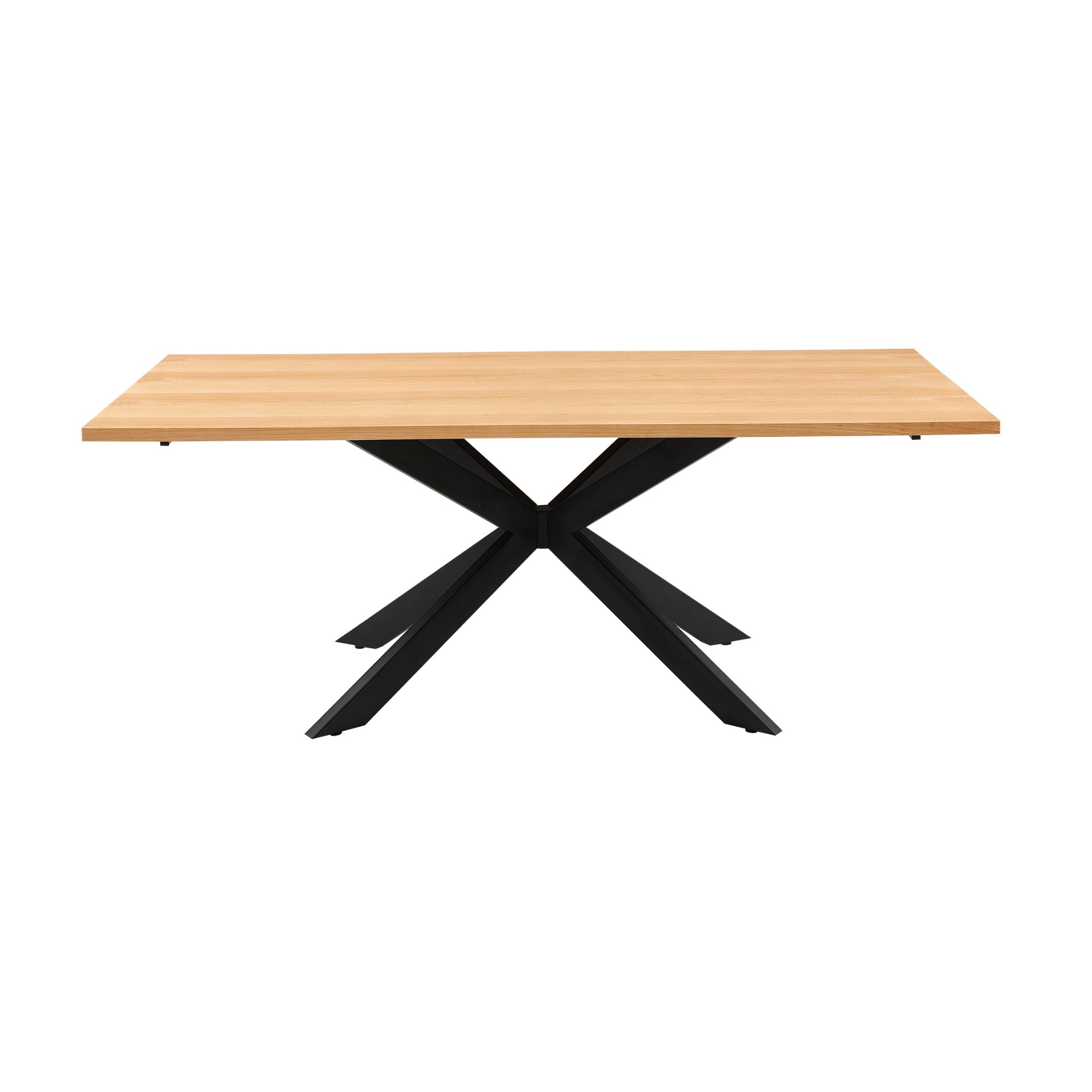 This sleek dining set fills your dining area with style and substance. The 6-seater dining table and 6pcs dining chairs, designed in an industrial style, showcases a 2-tone feature. The table has a veneer timber top in natural oak colour and metal legs in cross design with sandy black powder-coated finish that create a beautiful contrast style. The table fills the entire area with a timeless contemporary look. The table frame is made of sustainably harvested solid MDF and veneer. The table looks even more beautiful when paired with these dining chairs crafted in a compatible style. Designed in the Industrial style, the chair is upholstered in fabric and has strong, tapered legs made of metal with sandy black powder-coated finish. The chair features a cushion seat with curved backrest in beige coloured fabric. The chairs look stunning in all decor settings, thanks to their inviting shape and fabric upholstery. A strong metal tube frame gives it great strength. A one-year warranty is included with the easy-to-assemble dining set. The easy-to-assemble table and chairs have dimensions of W200 x D100 x H76 CM and W58 x D57 x H80 CM.