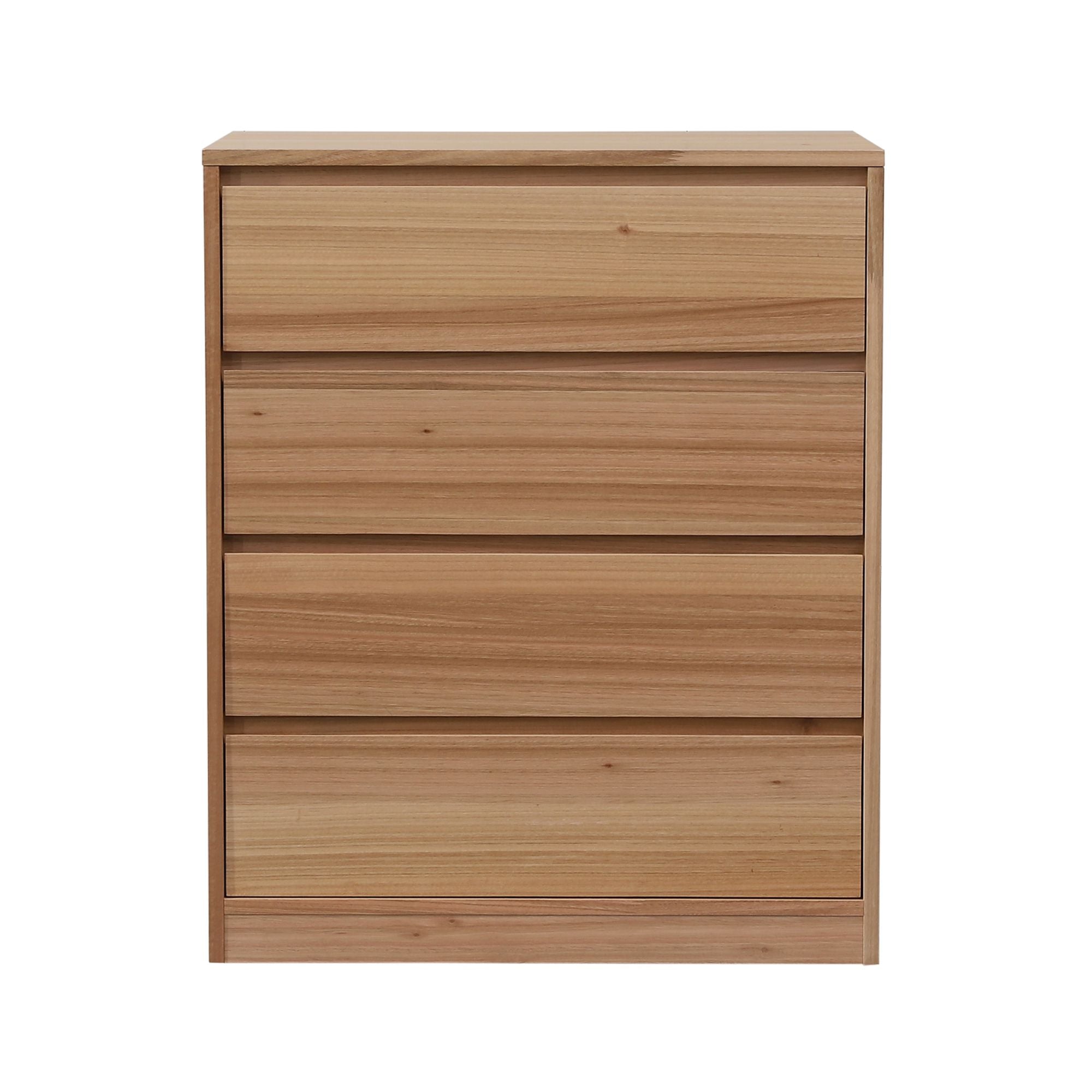 This tallboy designed in a contemporary style gives a cool look to your bedroom. The tallboy has 4 drawers. The drawers are handle-less and have full metal extension runners. It is made of sustainably harvested Solid Messmate and Blue Gum Veneer. The wood combination is known for its amazing strength, durability, and shock-resistance. The tallboy in a natural colour matches effortlessly with a variety of interior decor styles and themes, and a one-year warranty is included with the fully assembled furniture piece. Furniture with dimensions of W80 x D41 x H98 CM.