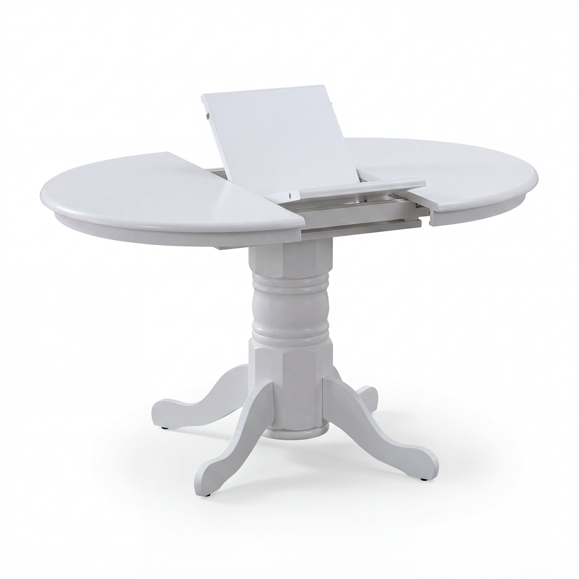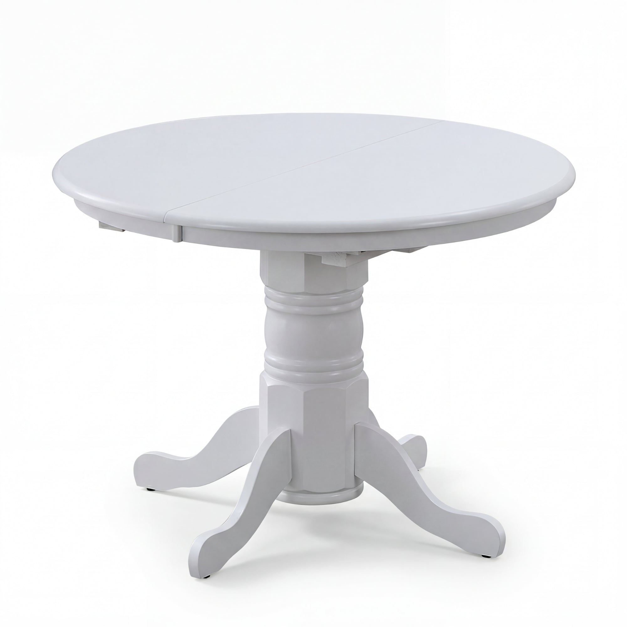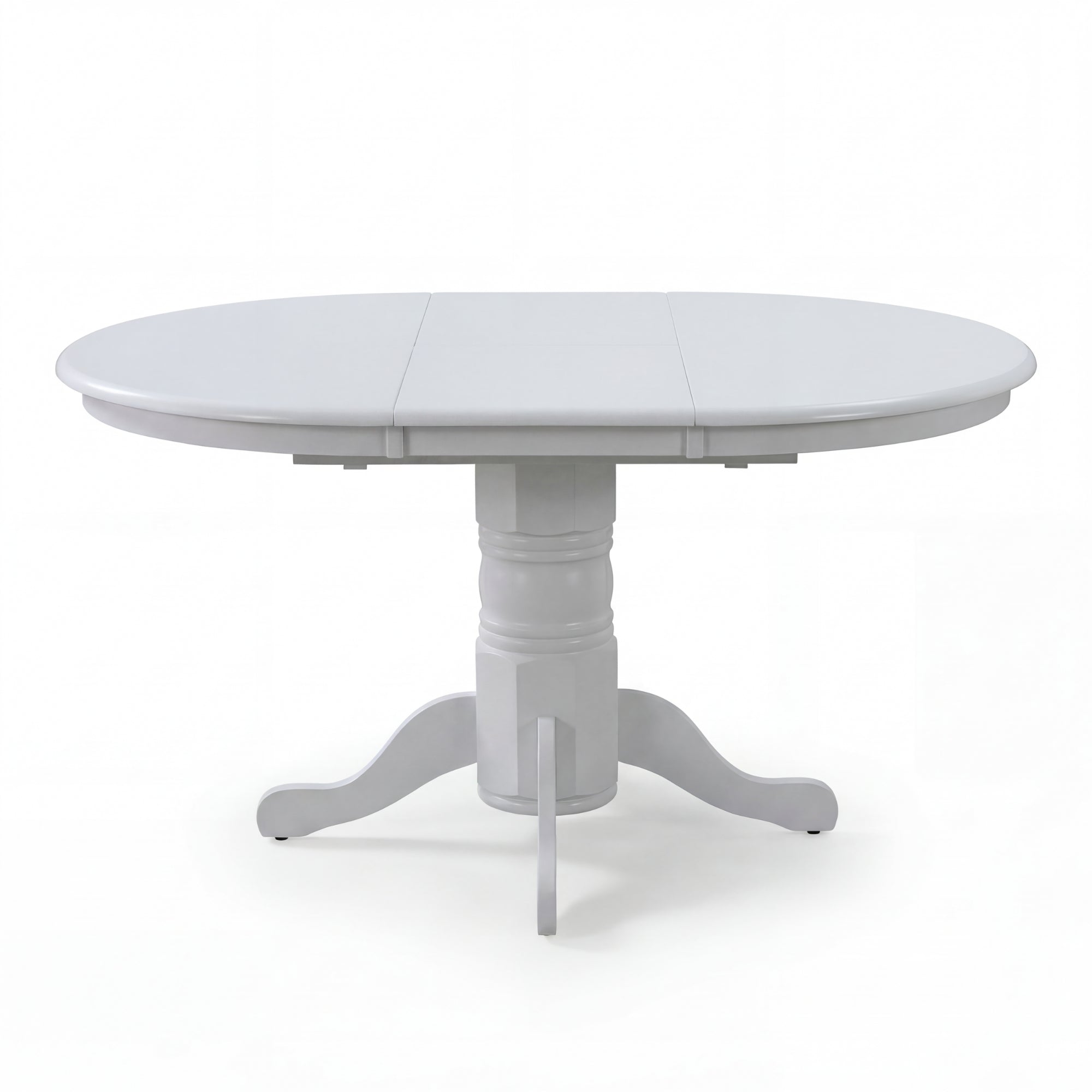 A Extendable Round Dining Table featuring fine-finishing, elegant lines that speak volumes in terms of design, looks, and aesthetics. This 6-seater dining table is designed in the country style to give your living area a completely fresh look. The dining table is made of sustainably harvested rubberwood and is just ideal for small to medium dining spaces. The wood gives the furniture piece an impressive quality and great strength. When placed in the dining area, the white-coloured table with a carved pedestal base looks stunning. The oval extendable table-top offers extra seating. This is an added advantage. A one-year warranty is included with the simple-to-assemble dining table.