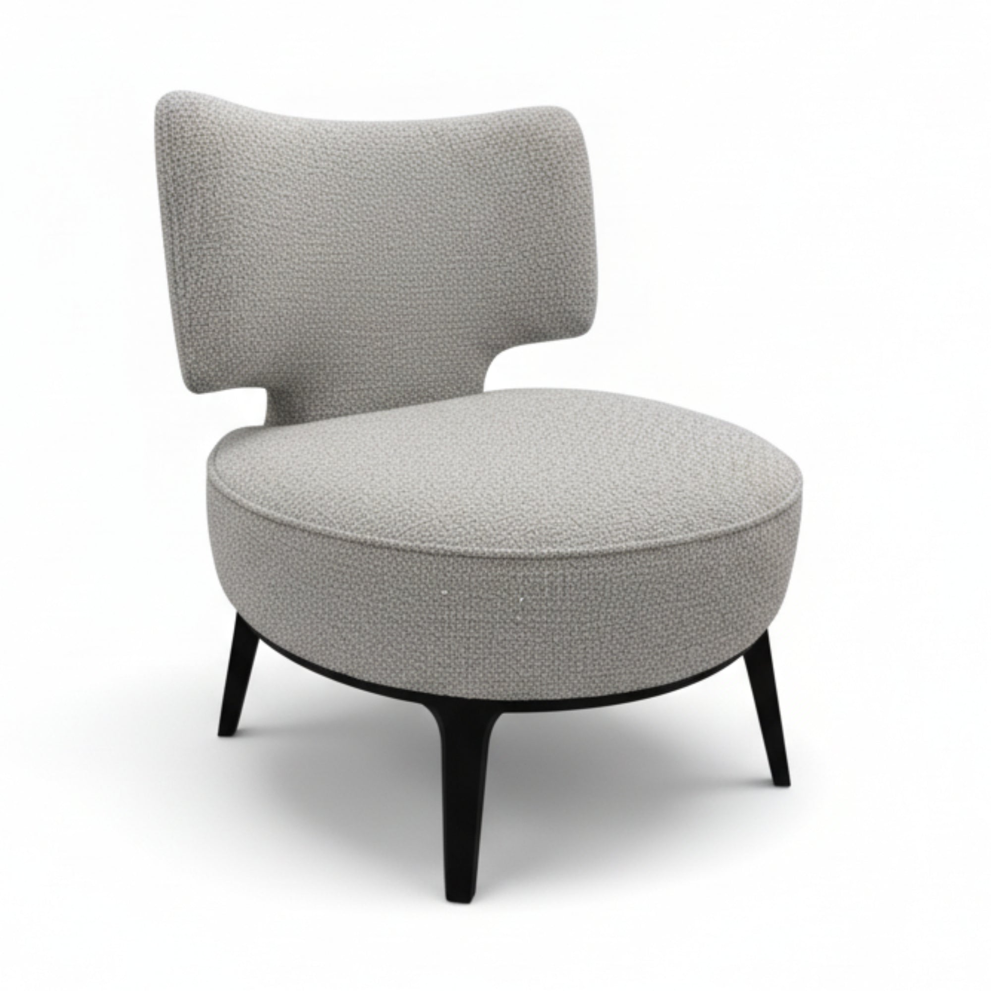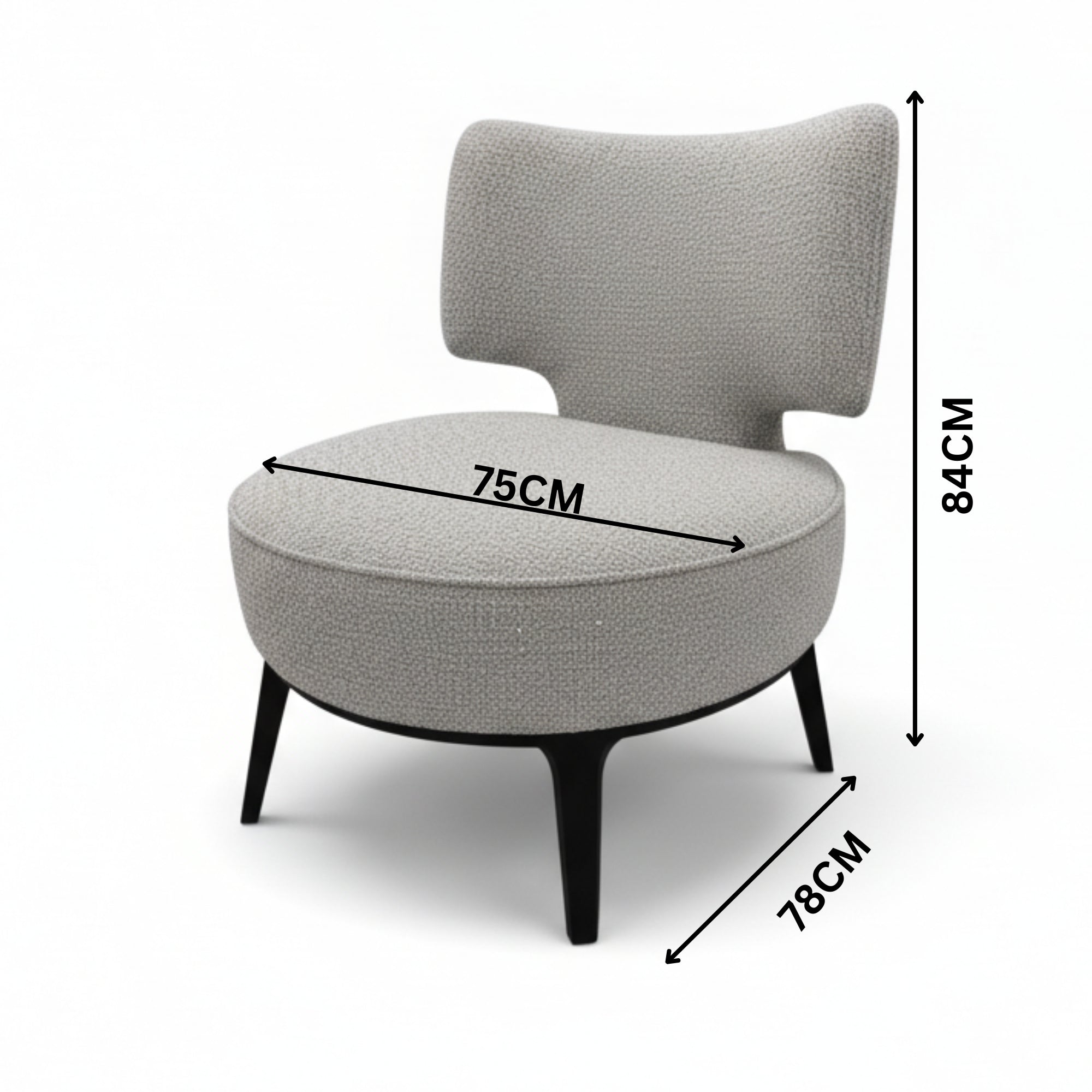 This Occasional Chair in Marble colour combines modern sophistication with supreme comfort. Its sleek frame is upholstered in a contemporary textured Barley fabric, while the rounded seat and curved backrest provide a plush, relaxing experience. Supported by sturdy oakwood legs in black, this chair’s marble color makes it a standout statement piece for any living or bedroom space. Delivered fully assembled, it’s ready to elevate your home decor.