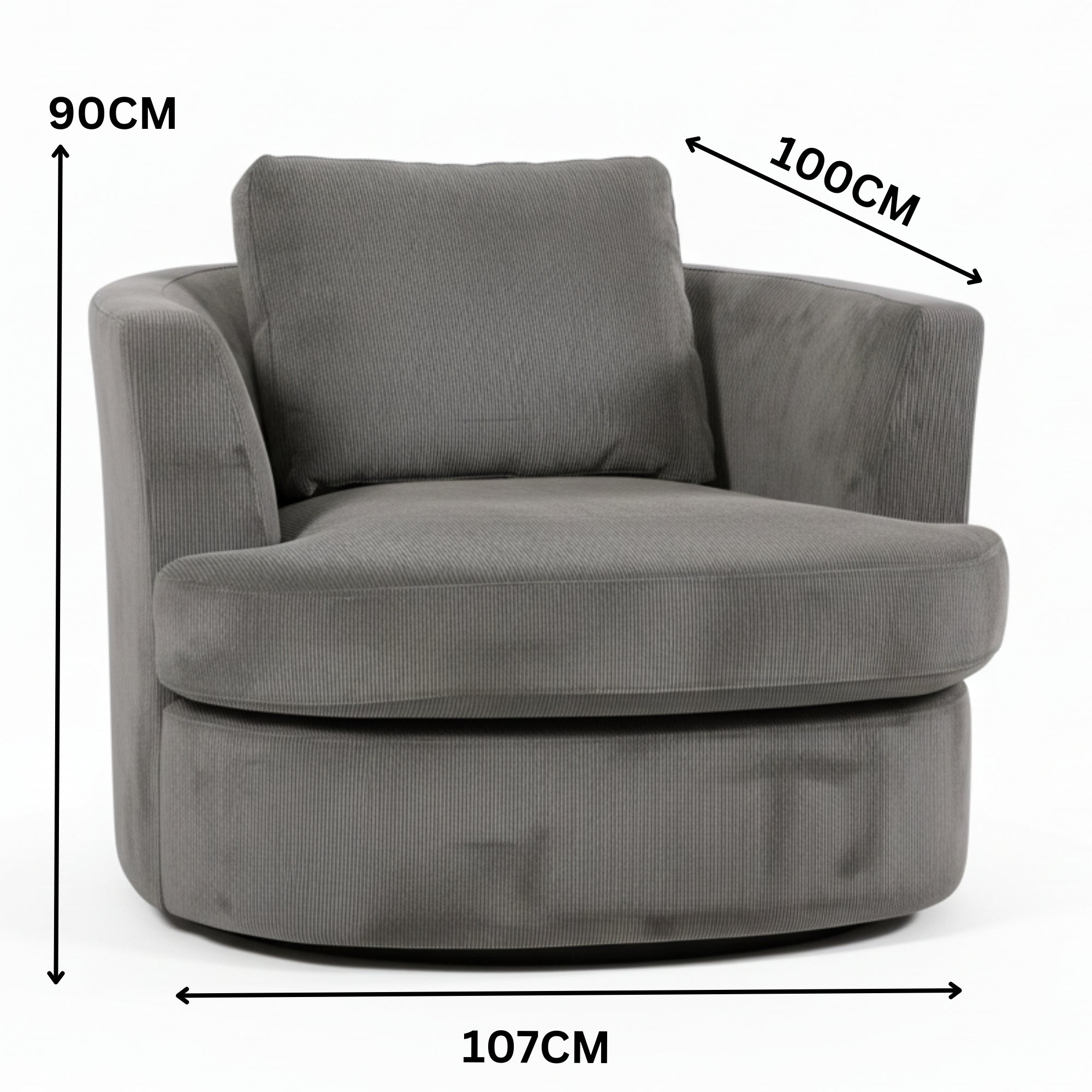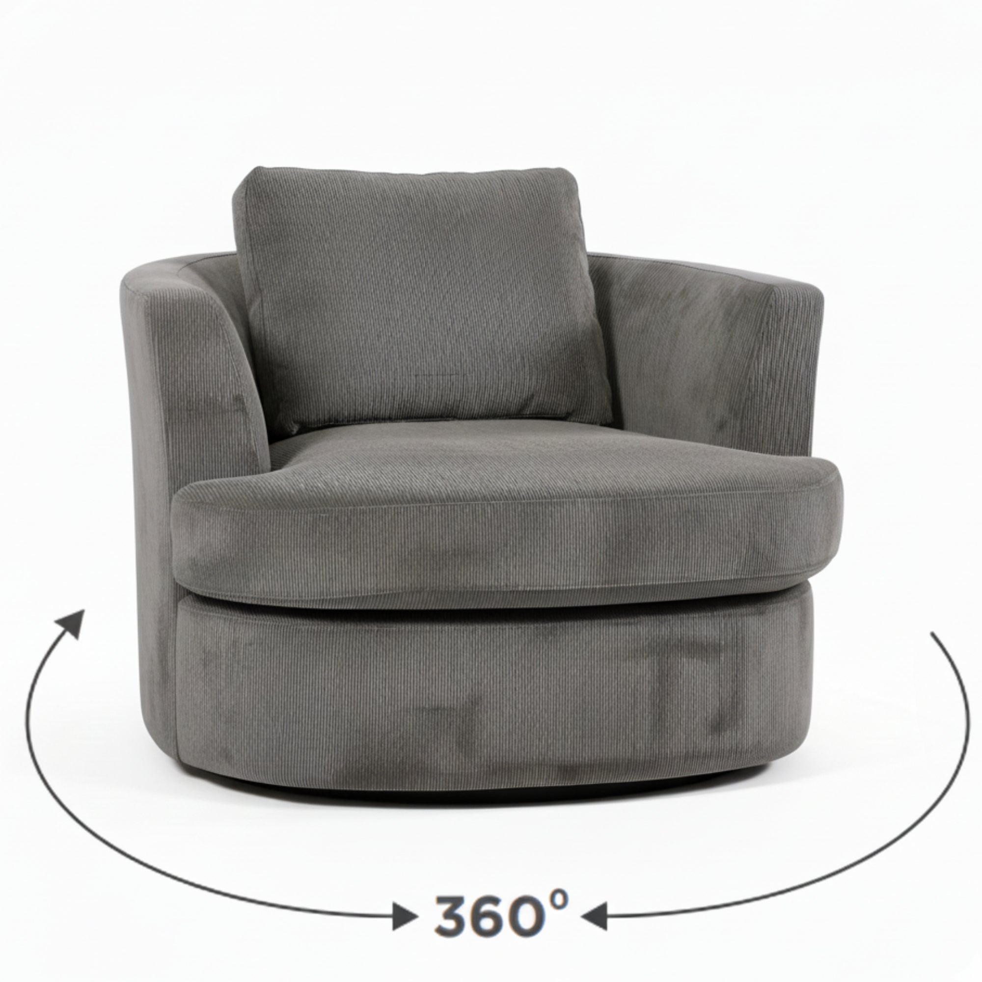 This Arm Chair in grey colour is the perfect blend of style and comfort, designed to enhance any room in your home. Its deep, wide seating ensures ultimate relaxation, while the 360-degree swivel base provides versatility for multitasking or unwinding. Upholstered in a high-performance cord fabric blend, this chair is both durable and soft to the touch. With a fully assembled design, it’s a hassle-free addition to your living room or bedroom.