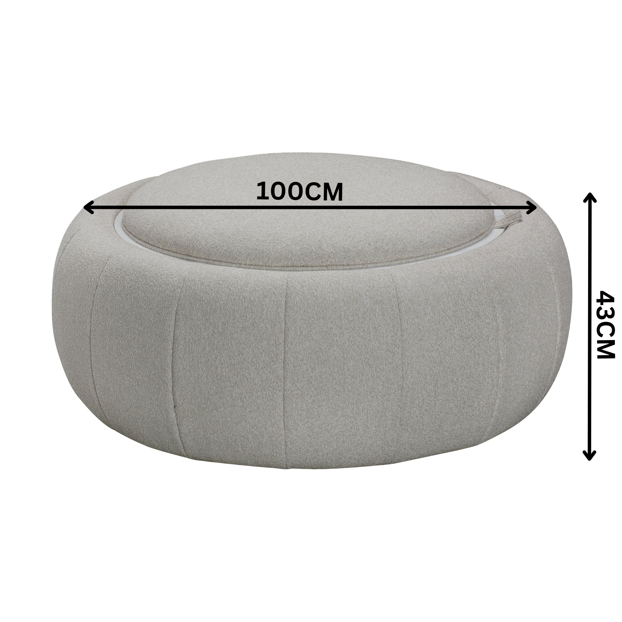 Cleopatra Fabric Ottoman Coffee Table Dual Function Linen Grey