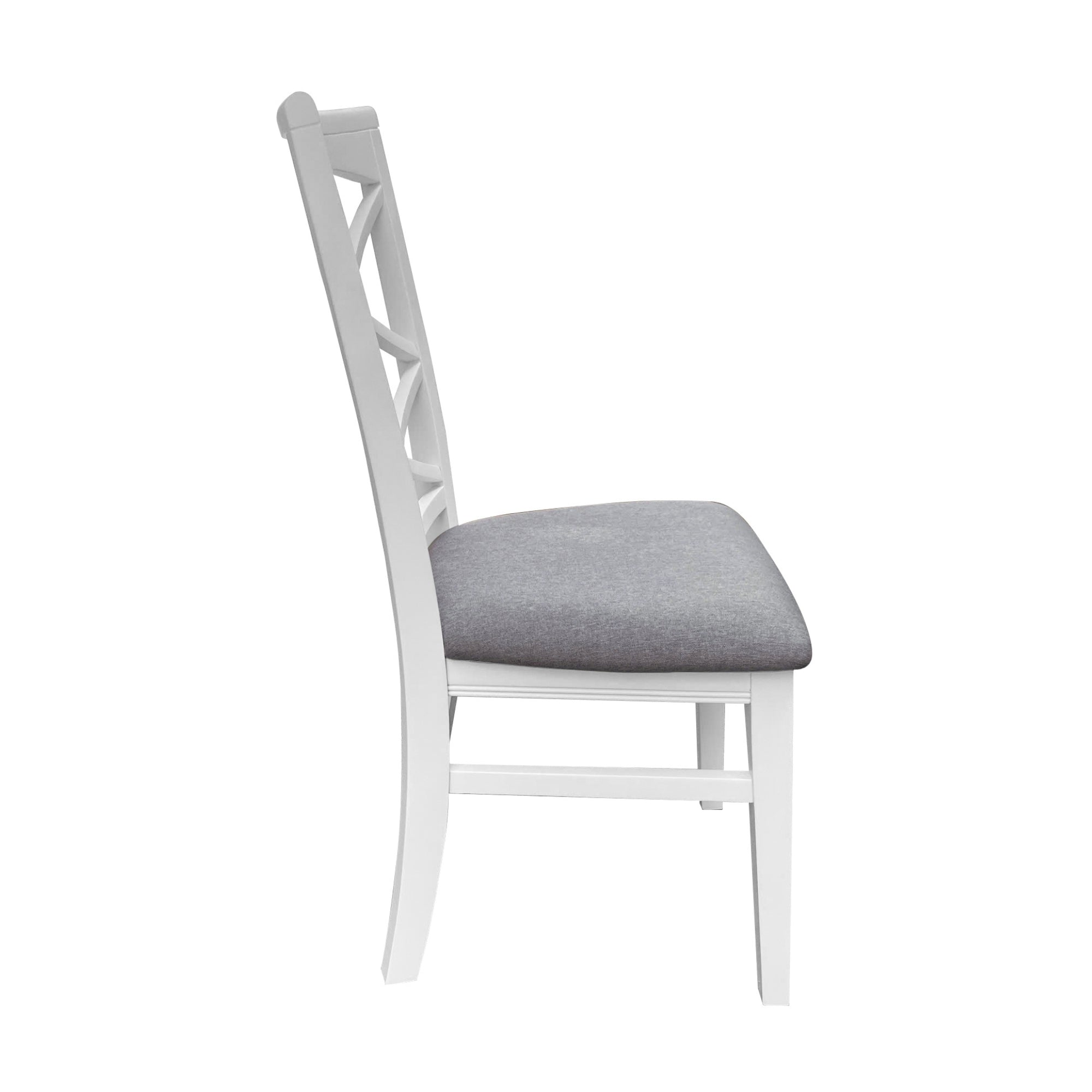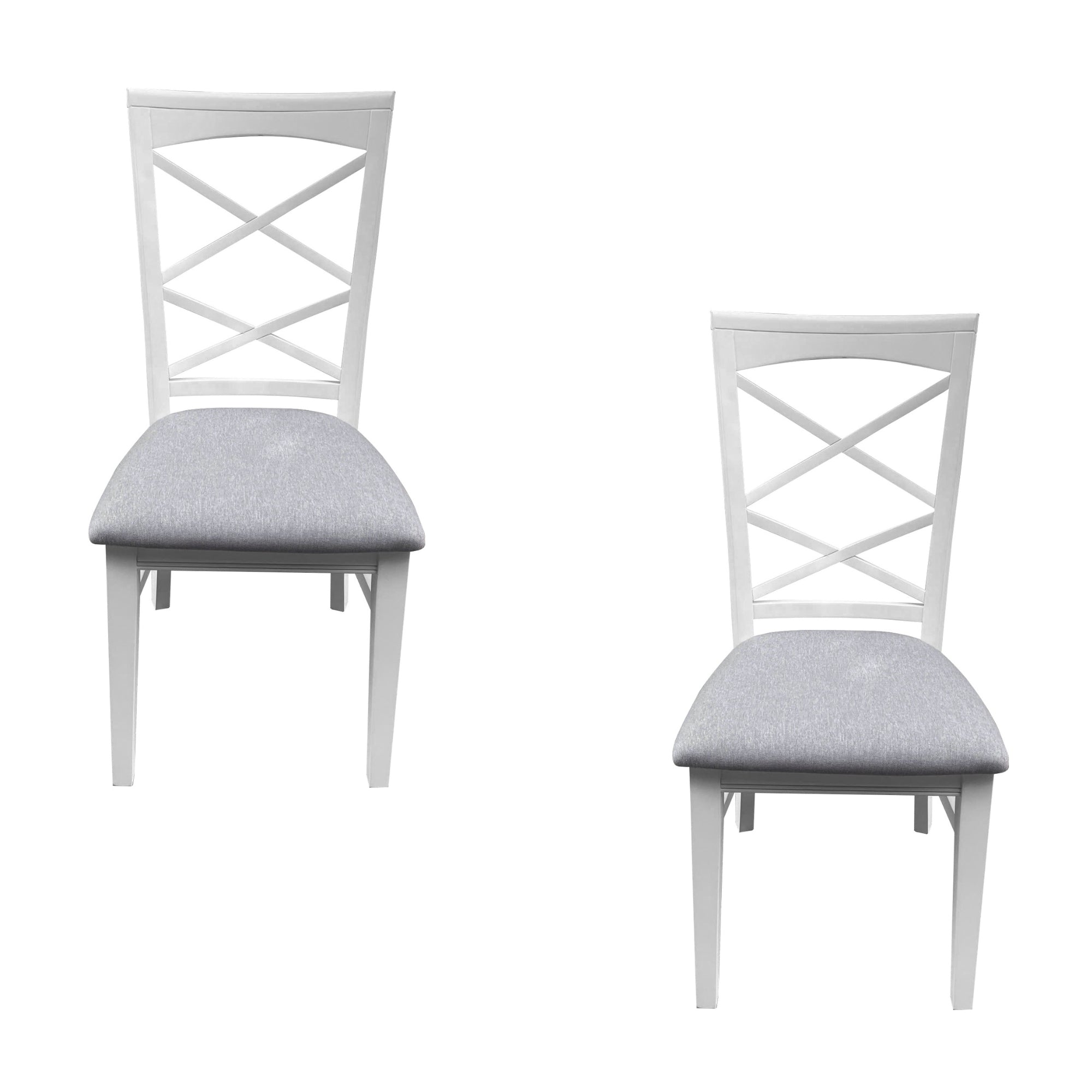 Add a touch of timeless sophistication to your dining space with this set of 2pc Dining Chairs in White Colour, inspired by classic Hamptons design. Crafted from durable acacia timber and MDF, this chair perfectly blends elegant aesthetics with everyday comfort. The crisp white painted frame offers a bright, coastal-inspired look that enhances any dining setting, while the light grey 100% polyester upholstered seat provides a soft, cushioned seating experience. Designed with both form and function in mind, this chair's tall backrest and supportive structure ensure long-lasting comfort during family meals, gatherings, or leisurely dining moments. Built for durability and charm, this stylish dining chair seamlessly fits into both modern and coastal interiors, making it an ideal addition to your dining room ensemble.