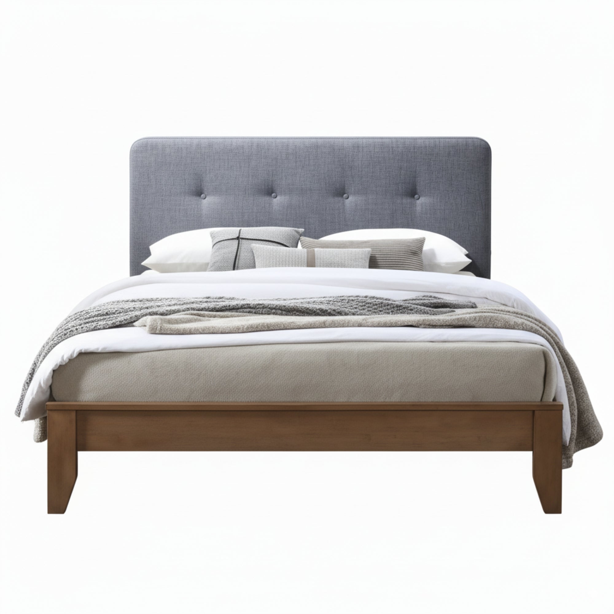 Upgrade your bedroom with this Queen Bed with USB, a perfect blend of modern functionality and sleek design. Upholstered in durable dark grey polyester fabric, the bed features a stylish button-tufted headboard and integrated USB ports for added convenience. Built with a particle board frame, MDF veneered siderails, and rubberwood legs in Hermosa Oak finish, this bed ensures superior strength and support. With strong slats and central legs, it accommodates up to 280kg for reliable comfort and stability.