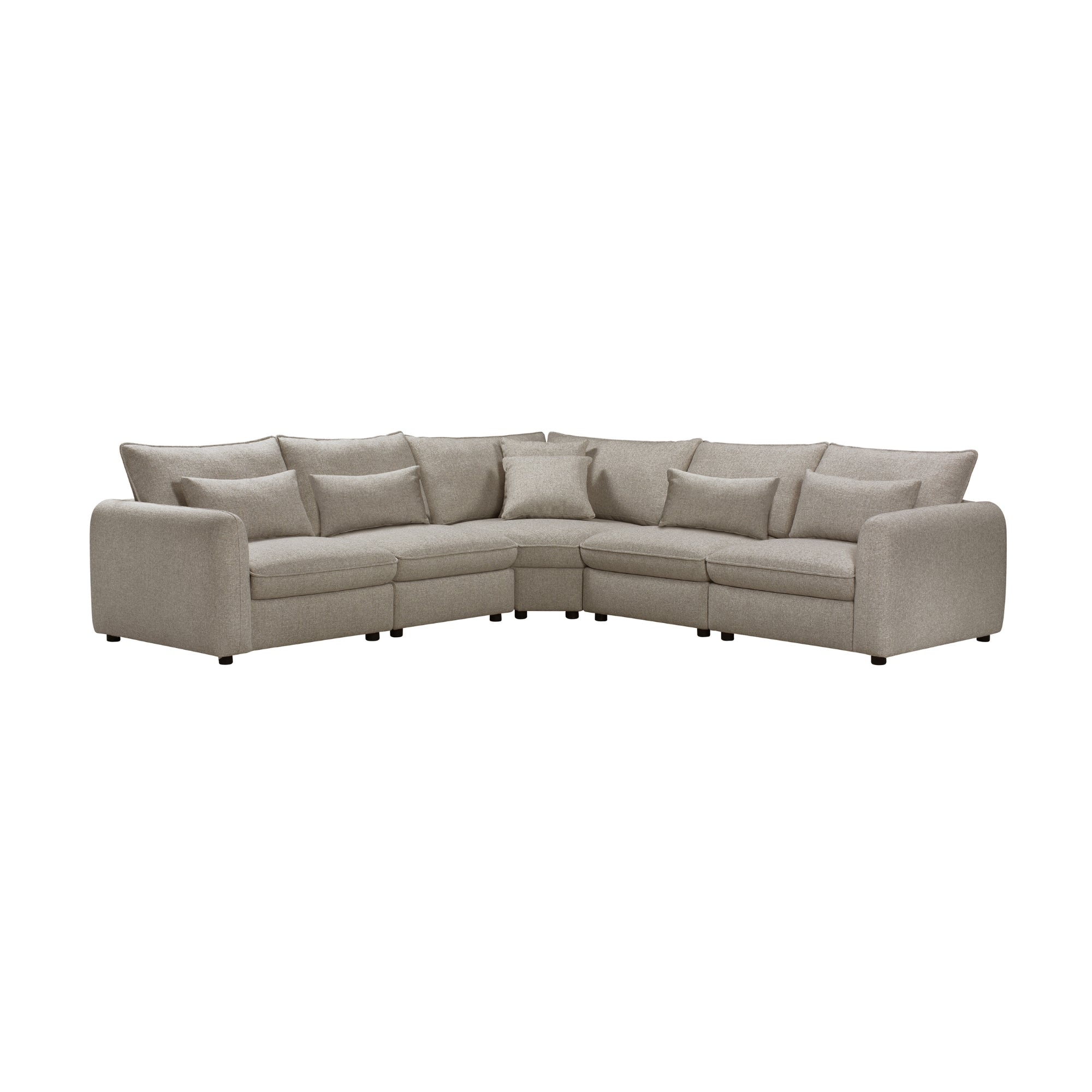 Create a stylish and comfortable living space with this 5Pc Corner Sofa in Beige Colour, designed for both relaxation and versatility. This spacious modular suite includes LHF & RHF arm seats, a corner seat, and two armless chairs, offering flexible configuration to suit your home layout. Upholstered in soft, textured polyester fabric, it exudes understated elegance while ensuring durability for everyday use. The generous seating and six matching scatter cushions provide ultimate comfort, making it perfect for family gatherings or lounging. With its streamlined arms and clean, modern profile, this sofa blends effortlessly into contemporary or classic interiors.
