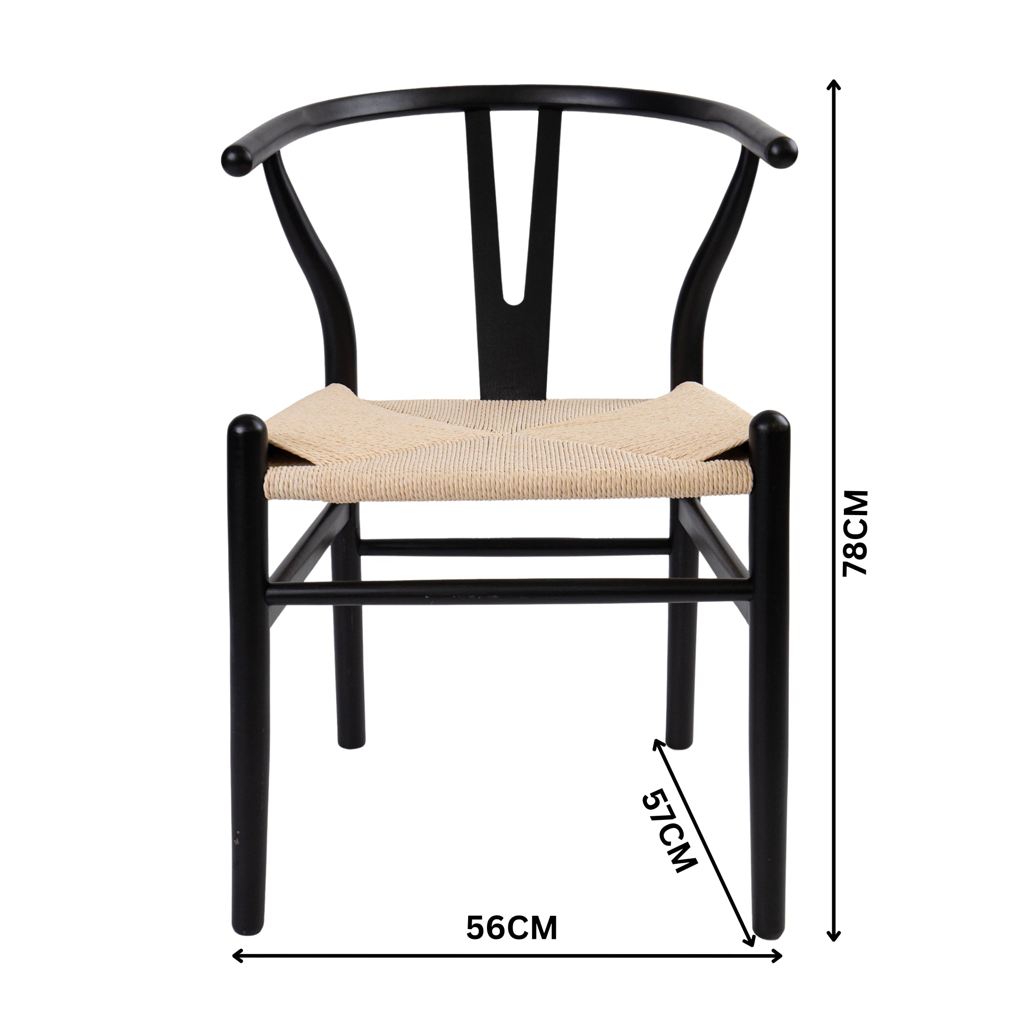 This sleek dining table set fills your dining area with style and convenience. The 6-seater dining table, designed in a contemporary style, showcases a 2-tone feature. It has a natural timber finish top with ski-design black painted legs that create a beautiful contrast style. The table features a black resin insert on the top to complement its modern appeal. The table frame is made of sustainably harvested solid rubberwood. The elegant dining table has a one-of-a-kind design with a tabletop and legs in different colours. The table looks even more beautiful when paired with the exceptionally beautiful dining chairs, designed in the traditional style. The chairs feature timeless curved back and armrest, with a hand-woven paper twine seat in natural colour. They ensure lasting comfort with the help of their wooden construct, and strong legs. The beautiful chair is made of high-quality Beech wood and Recycled Paper Twine, obtained in a sustainable manner. They set looks stunning in all decor settings, thanks to its homely design and multi-colour finish. A one-year warranty is included with this easy to assemble dining set. The table and chairs come with the dimensions of W200 x D100 x H76 CM and W56 x D57 x H78 CM.