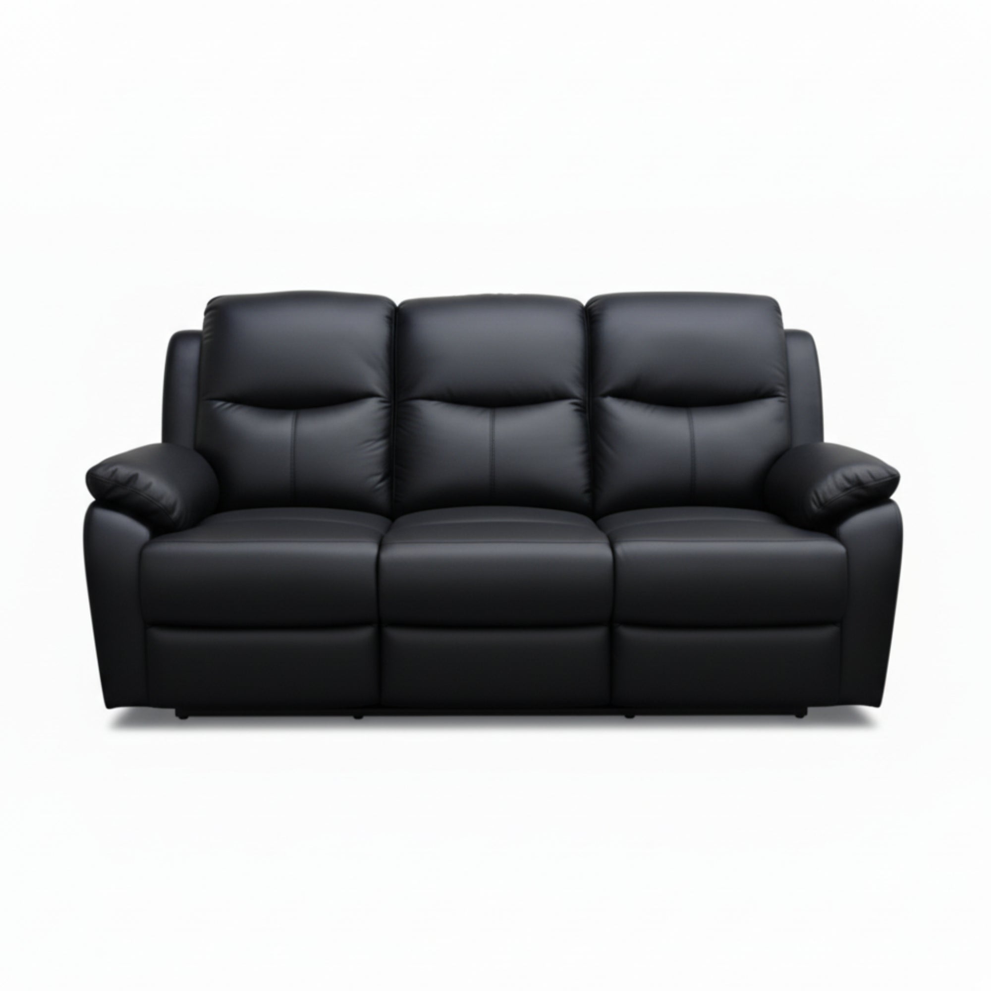 Experience luxury and comfort with our 3-seater manual recliner. Crafted with a durable hardwood and plywood structural frame, this set is upholstered in premium full leather for a sophisticated and timeless appeal. Designed for relaxation, each piece features manual recliners, high backs, and cushioned arms for superior support. Available in black colorways, this lounge set offers flexibility with the option to purchase as a complete set or individually to suit your space.