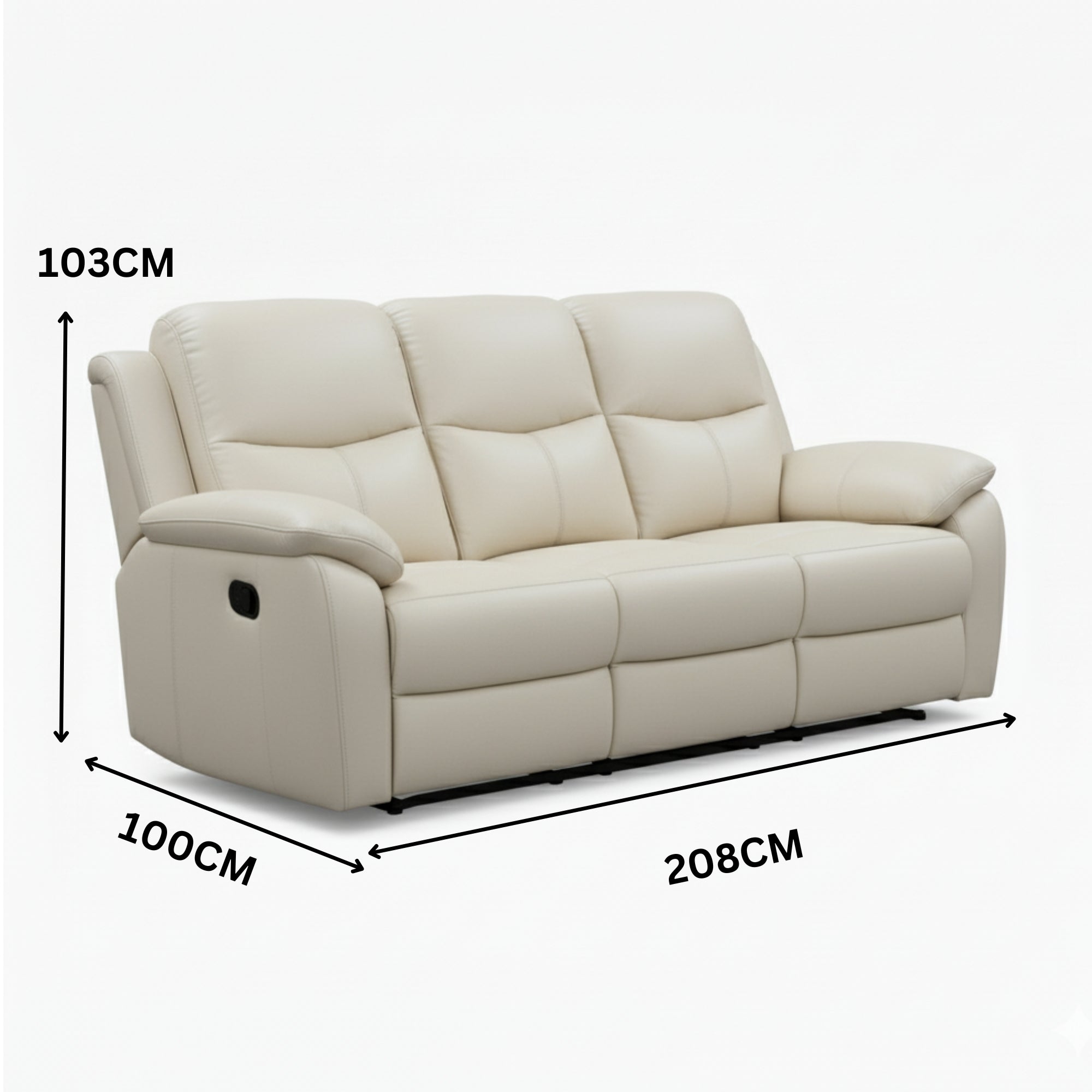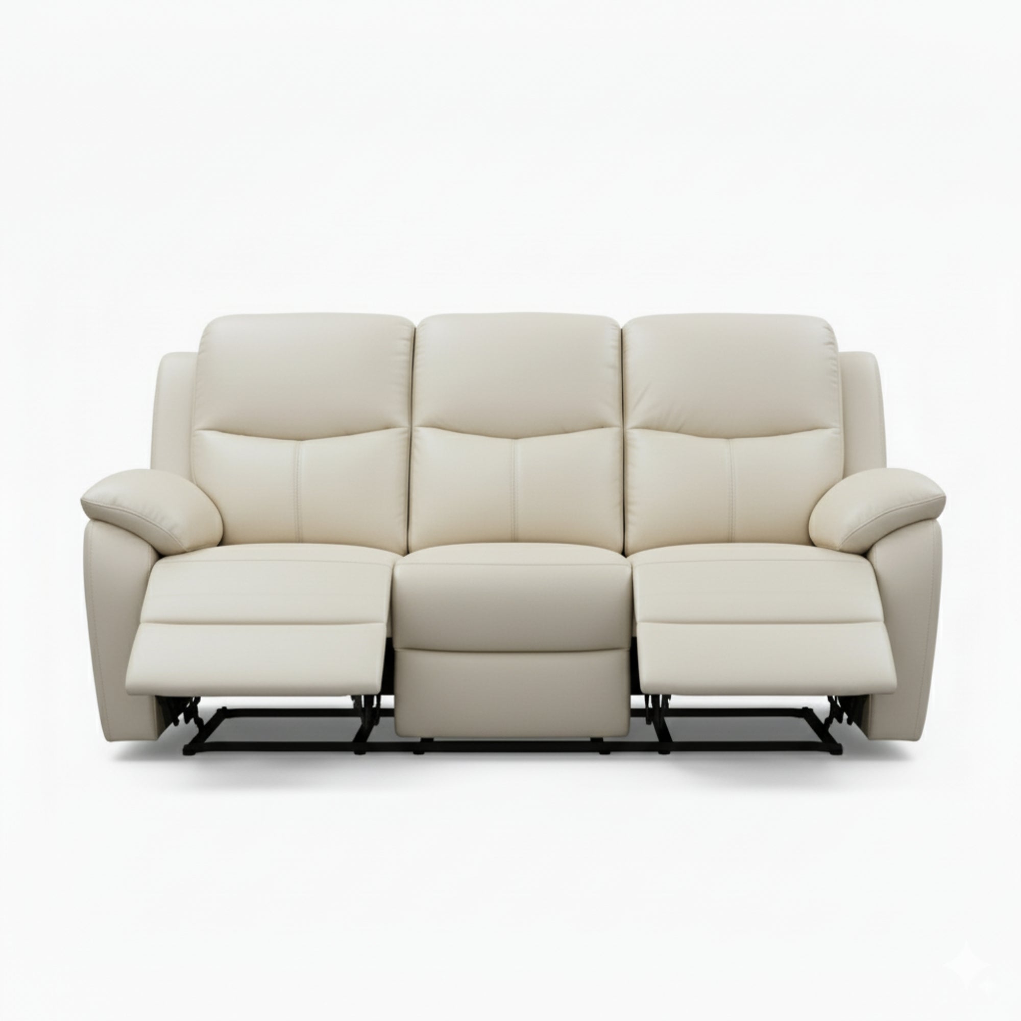 Experience luxury and comfort with our 3-seater manual recliner. Crafted with a durable hardwood and plywood structural frame, this set is upholstered in premium full leather for a sophisticated and timeless appeal. Designed for relaxation, each piece features manual recliners, high backs, and cushioned arms for superior support. Available in wheat colorways, this lounge set offers flexibility with the option to purchase as a complete set or individually to suit your space.