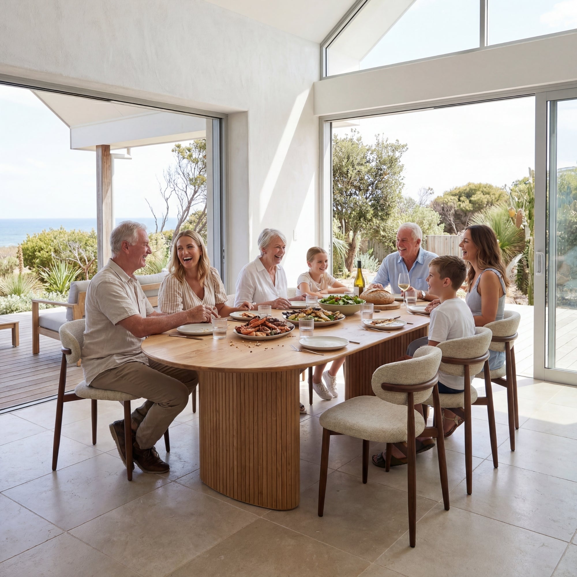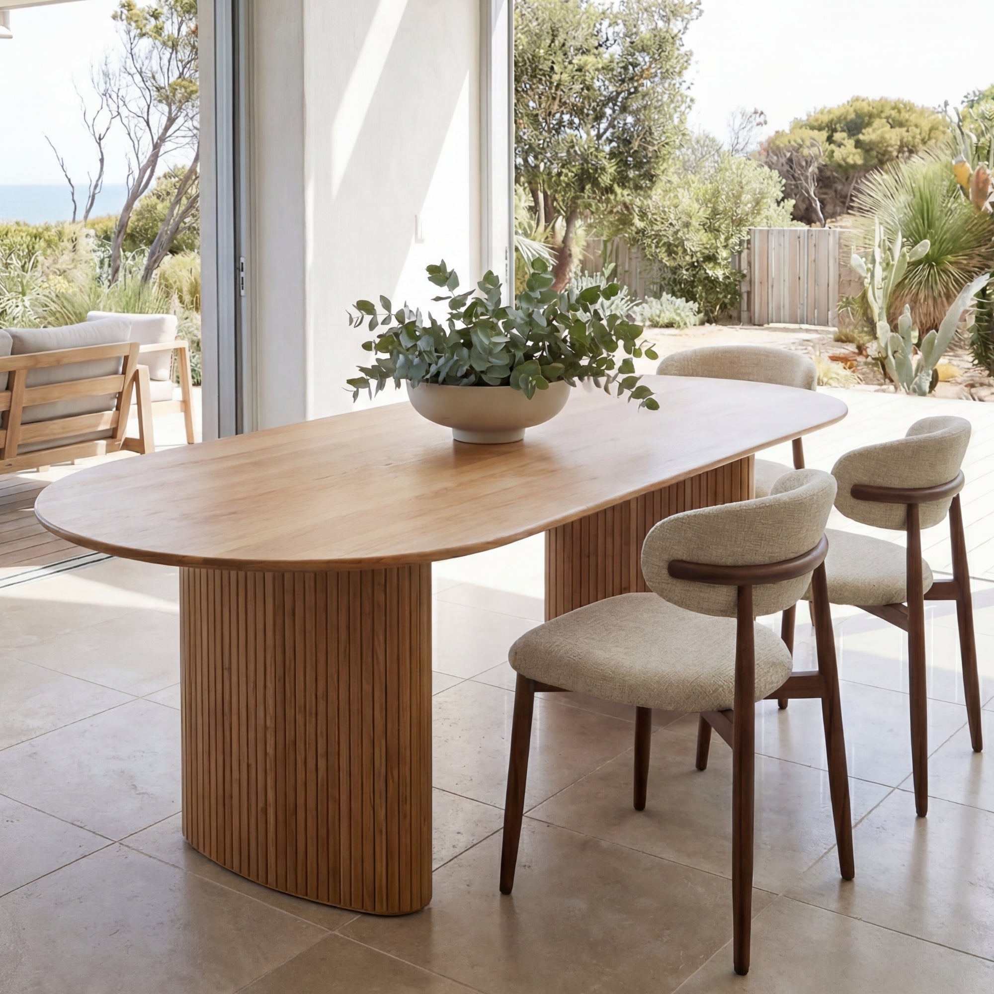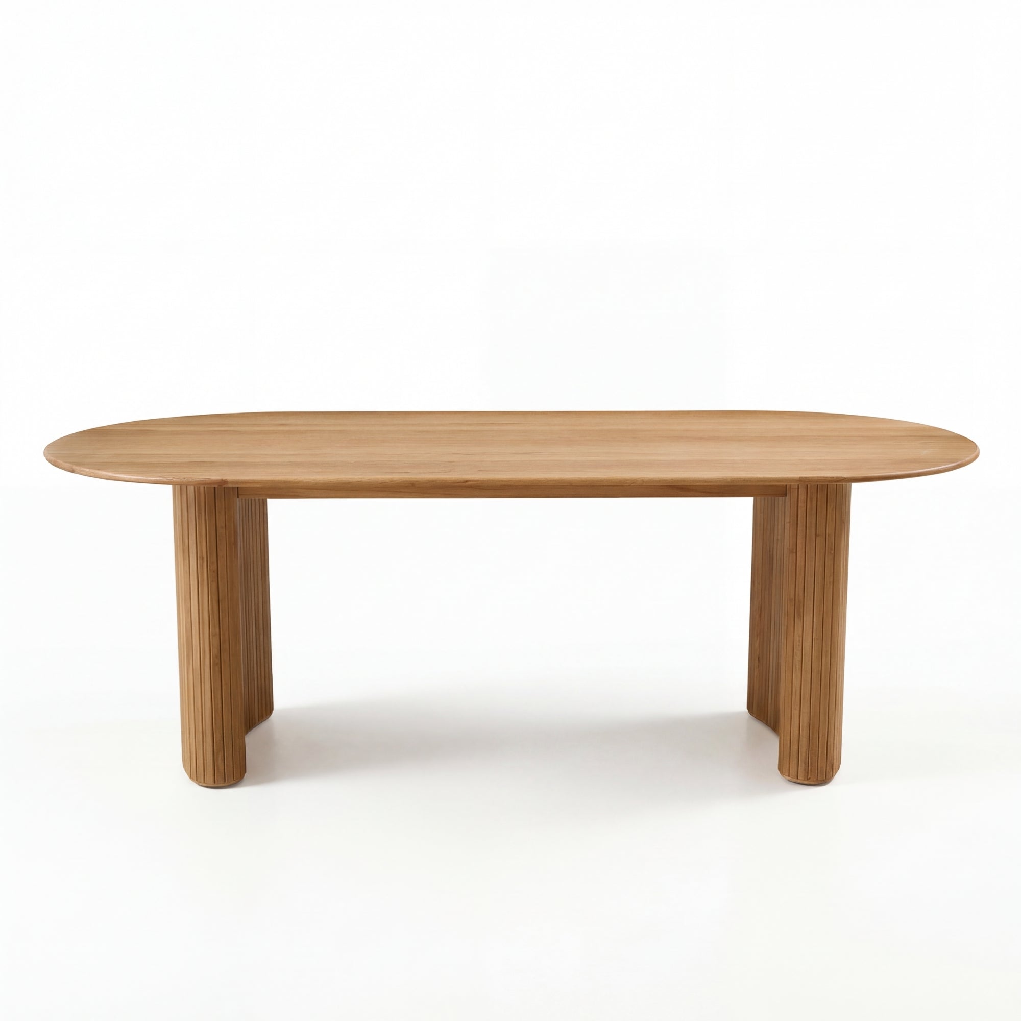 Bring timeless elegance into your home with this 8-seater natural dining table, crafted to blend simplicity and strength. Featuring a beautifully grained MDF tabletop with oak veneer and sturdy solid oak slate legs, this 220cm table is a perfect centrepiece for family dinners or casual gatherings. With its natural tone, clean lines, and durable build, this table is designed for both functionality and modern aesthetics. Ideal for those who appreciate eco-conscious, stylish furniture that lasts.