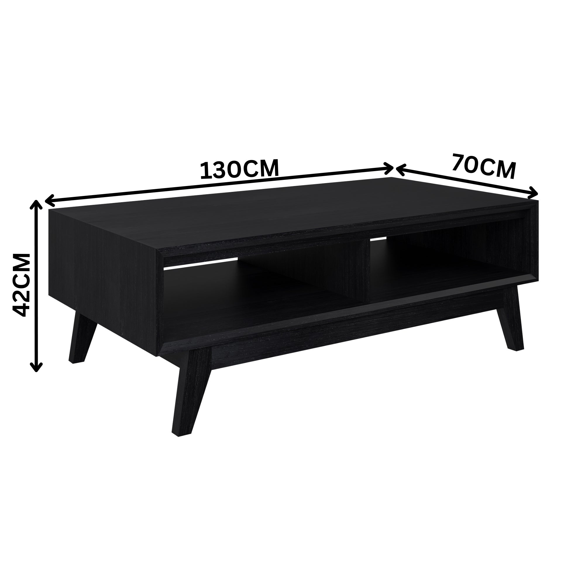 Enhance your living space with this Coffee Table with Shelf, a perfect blend of classic craftsmanship and modern design. Crafted from solid Acacia with a sleek brushed black finish, this table features fluted detailing that adds subtle elegance. Its spacious tabletop and additional lower shelf provide ample space for drinks, decor, and essentials, keeping your living area organized and stylish. The solid timber drawers with full-extension metal runners offer smooth functionality, while metal handles in brushed gold complement the contemporary aesthetic. Designed for durability and everyday use, this coffee table combines practicality, style, and longevity in one sophisticated piece.
