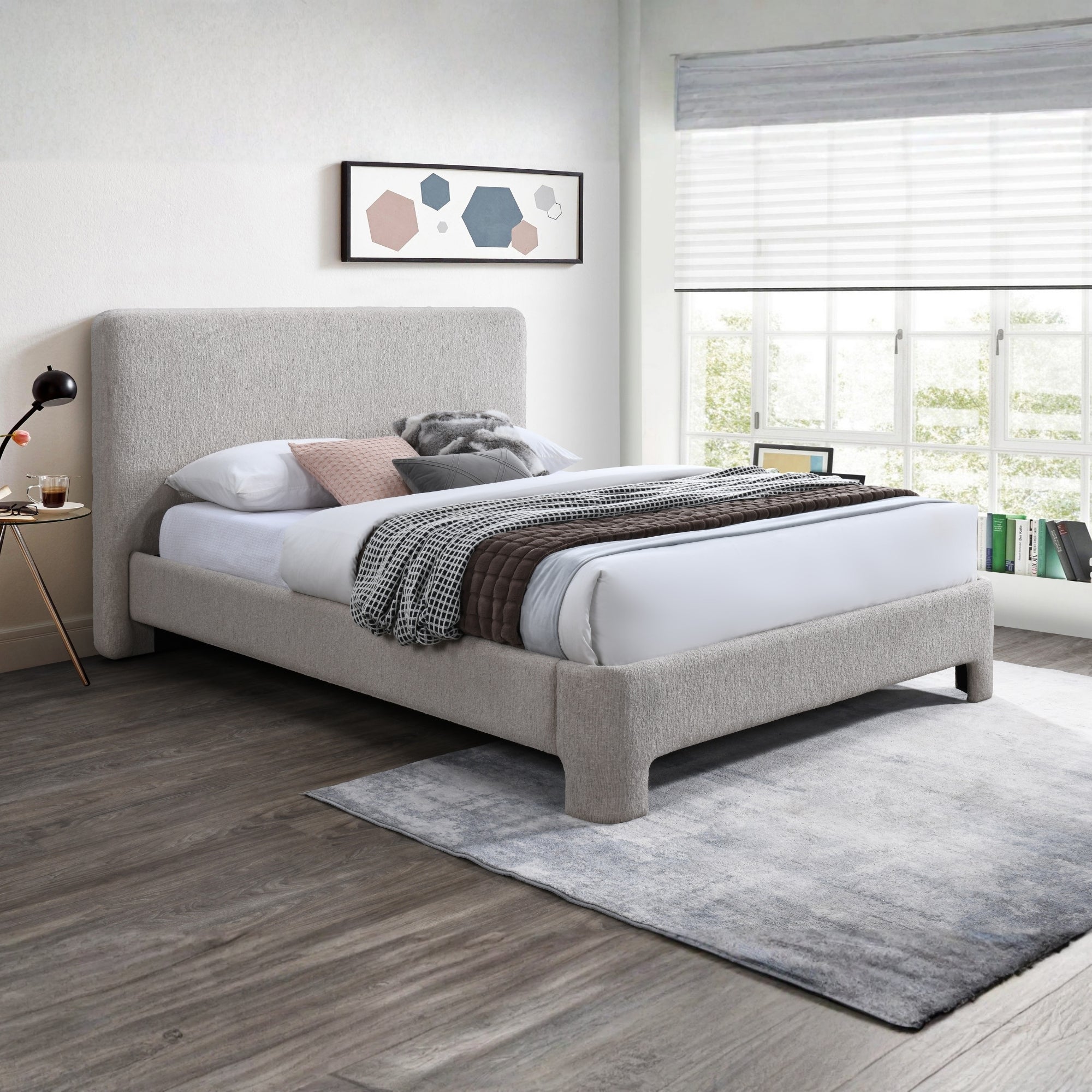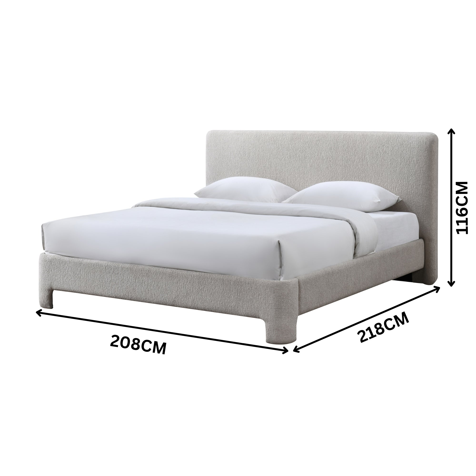 Create a calming and contemporary retreat with the beautifully designed King Bed in Stone Colour, crafted to bring comfort, elegance, and long-lasting support into your bedroom. This soft and serene bedframe features a generously padded headboard with rounded corners, offering a cosy, inviting look that enhances relaxation. The sleek low footend and matching upholstered legs create a seamless, modern aesthetic that suits minimalist, Scandinavian, and urban interiors. Upholstered in stone-coloured 100% polyester fabric, the bed provides a versatile neutral tone that blends effortlessly with a wide range of colour palettes. The carefully engineered frame is constructed from plywood and metal, ensuring stability and durability for everyday use. The slatted bed base with a central metal support beam enhances airflow and provides reliable mattress support - maximised with a 300kg weight capacity (including mattress). Designed for comfort, strength, and timeless appeal, this King Bed is an elegant centrepiece for your master bedroom or guest suite.