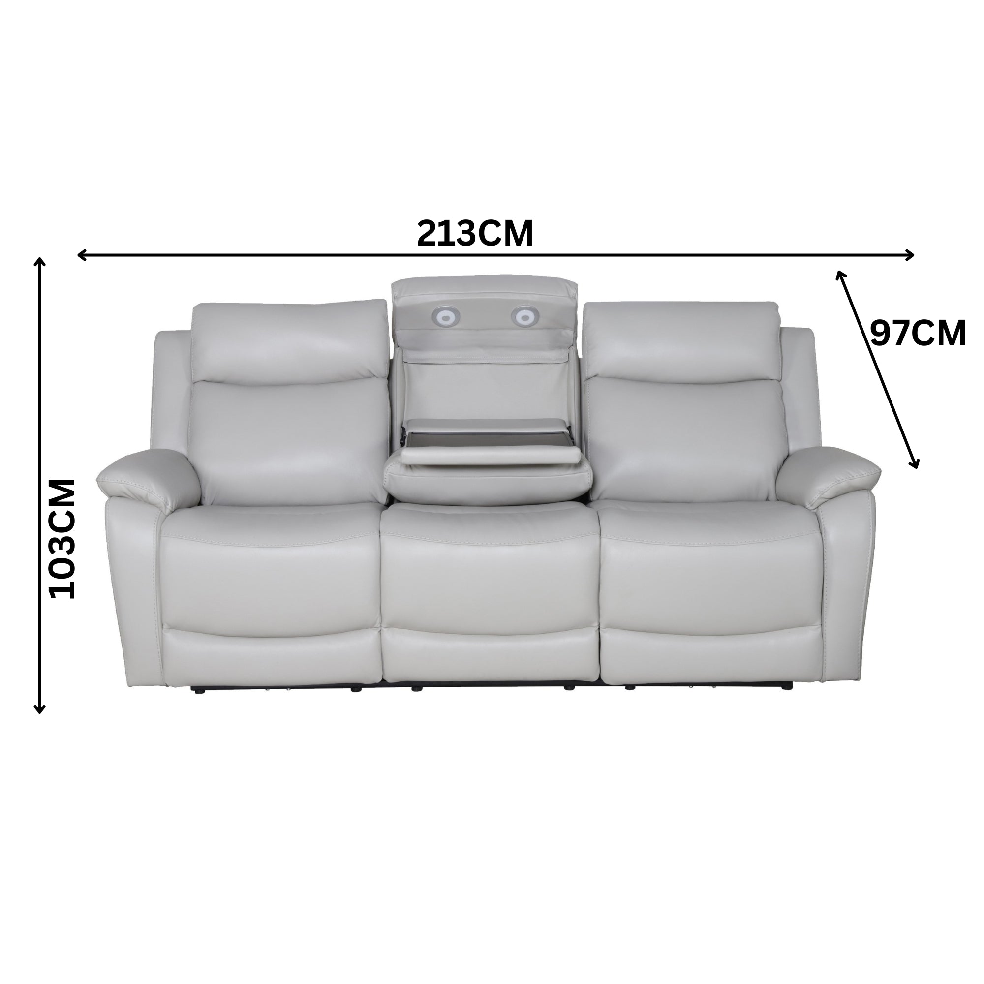 Flint 3 Seater Electric Recliner Genuine Leather Light Grey