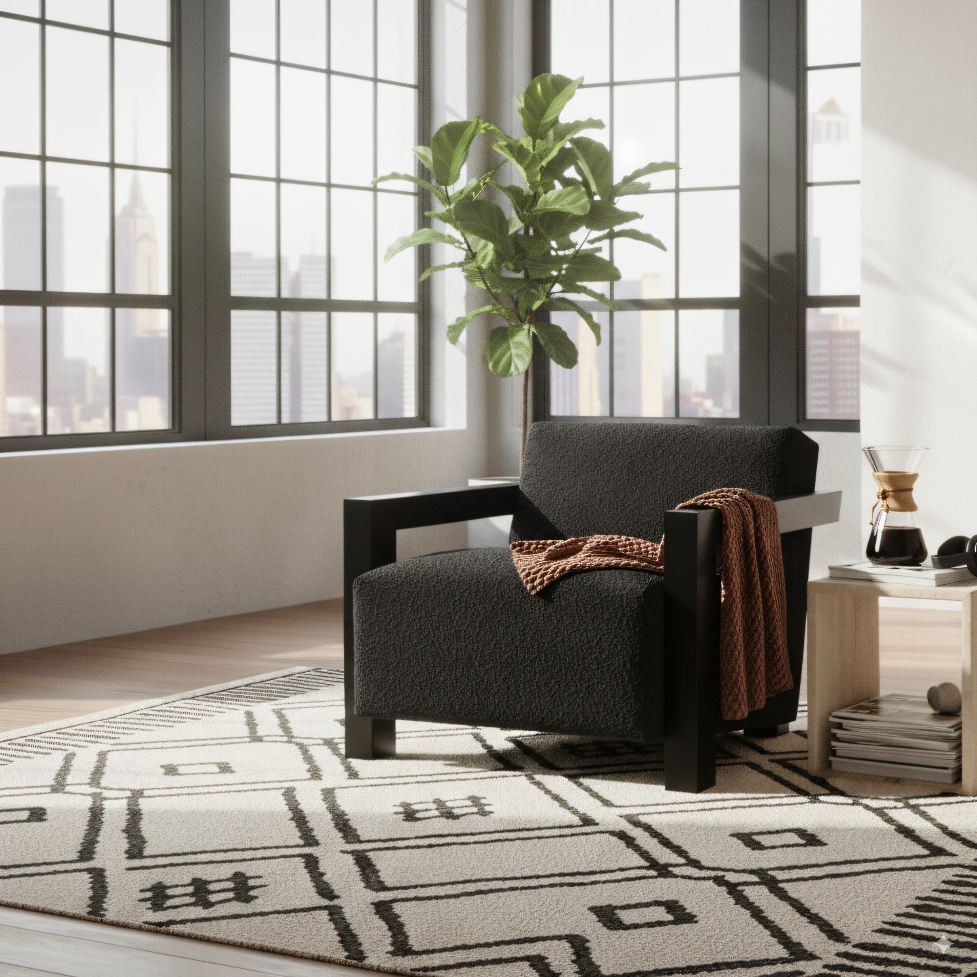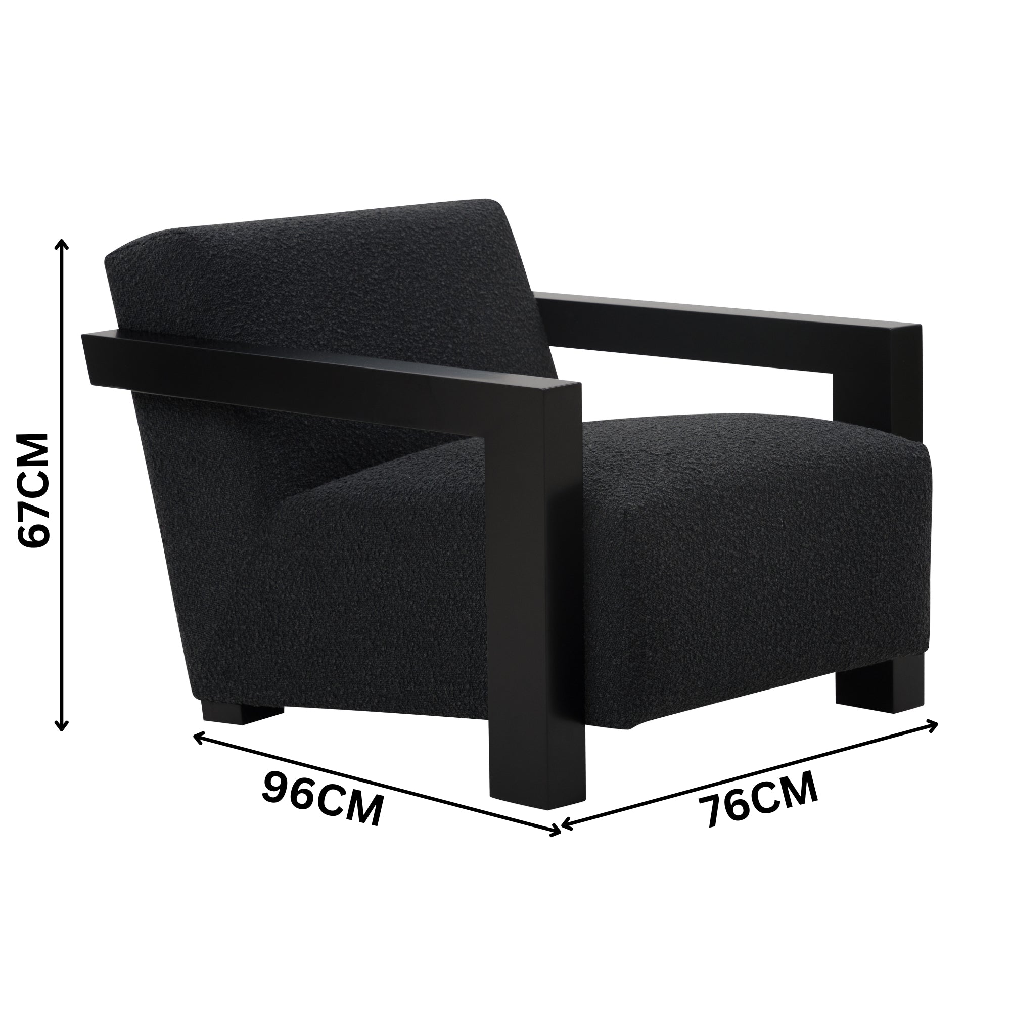 Bring refined comfort to your living space with this armchair in charcoal colour, designed for both style and durability. This armchair features a sturdy rubber timber frame with plywood support, ensuring long-lasting strength. The seating is enhanced with S-spring construction, providing superior comfort and resilience. The chair's 7cm thick cushioning delivers plush seating, while the charcoal colour adds a touch of modern elegance to any room decor. Whether used as a stand-alone piece or paired with your sofa, this armchair creates a cosy and inviting atmosphere, perfect for relaxing with a book, enjoying coffee, or entertaining guests.