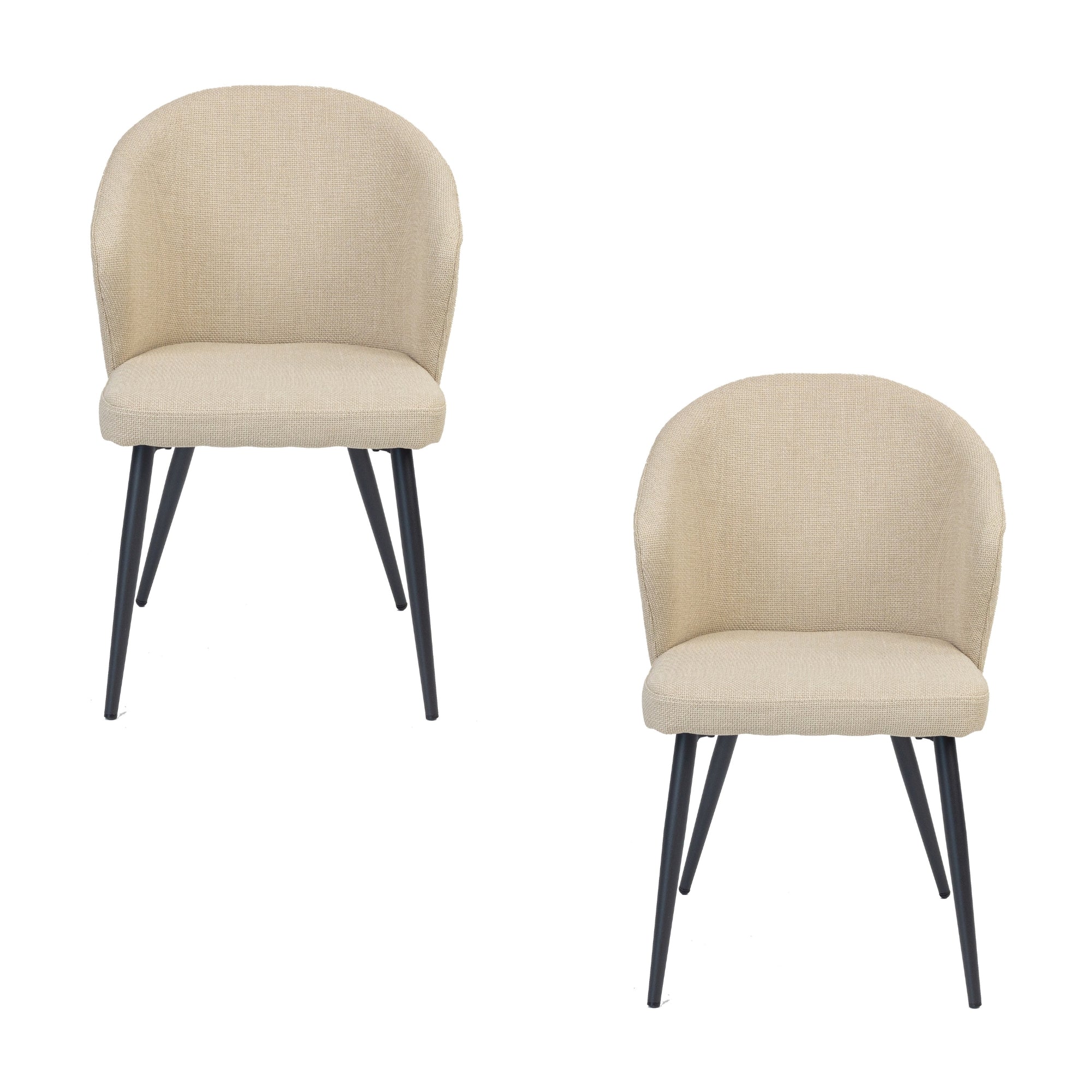 Bring a touch of modern sophistication to your dining space with this set of 2PC Fabric Dining Chair with arm in beige Colour. Upholstered in soft, durable 100% polyester fabric, this chair offers both comfort and style, making it perfect for everyday dining or special gatherings. The chair's sleek black powder-coated metal legs provide stability and durability, while adding a contemporary contrast to the textured beige seat. Its versatile design allows you to mix and match with a variety of dining tables, from wood and glass to marble and metal finishes, making it an ideal addition to any modern or industrial-style interior. Lightweight yet sturdy, the chair requires minimal assembly - simply attach the legs and it's ready for use. With a comfortable seat height and ergonomic design, this chair ensures relaxed dining experiences without compromising on style.