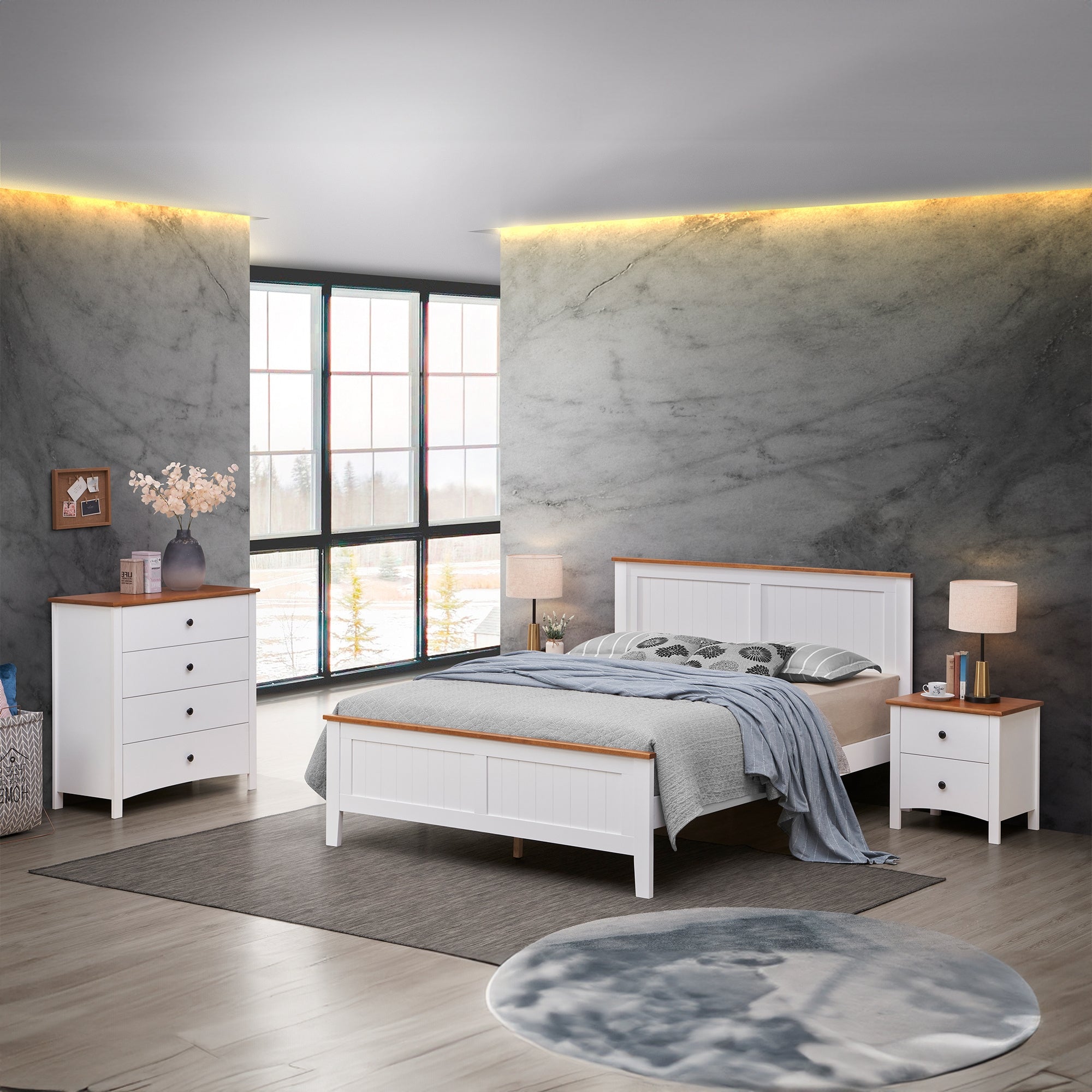 Harbourview 4pc Set Double Bedroom Suite Bed Frame Bedside Table Tallboy Brown White