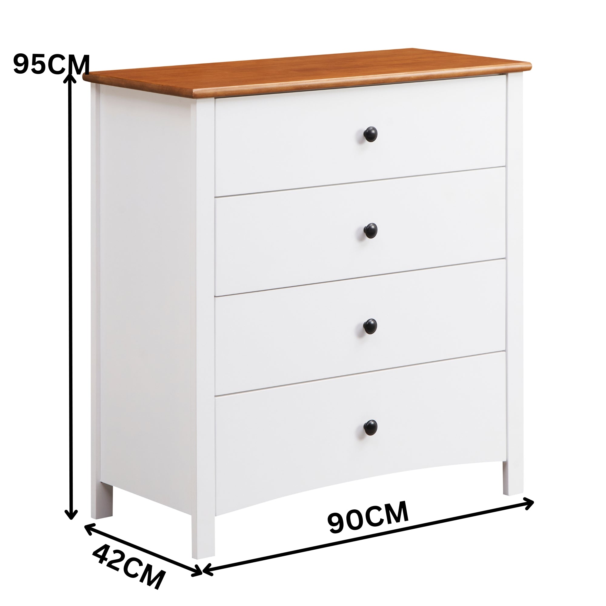 Transform your bedroom with the timeless charm of our Kit that includes Double Bed, 2 Bedsides and Tallboy, designed in the popular Hamptons style. Featuring a white painted finish with natural mid-brown timber tops, this set offers a perfect blend of elegance and functionality. The Double Bed boasts a panelled headboard and footboard, while the matching bedsides and tallboy provide ample storage with smooth, full-extension drawers and stylish black metal handles. Crafted from durable rubberwood and MDF, this kit ensures lasting quality. Casegoods arrive fully assembled, with minimal assembly required for the bed.