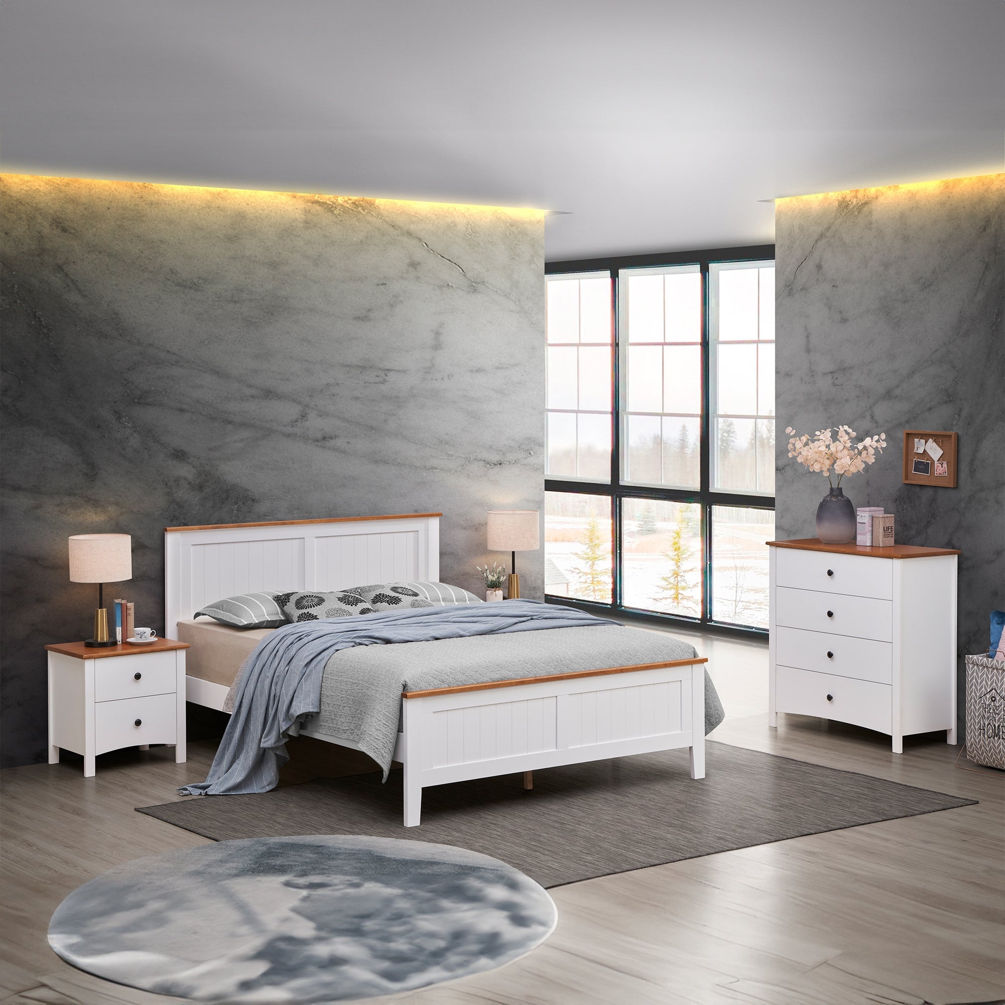 Harbourview 4pc Set Queen Bedroom Suite Bed Frame Bedside Table Tallboy Brown White