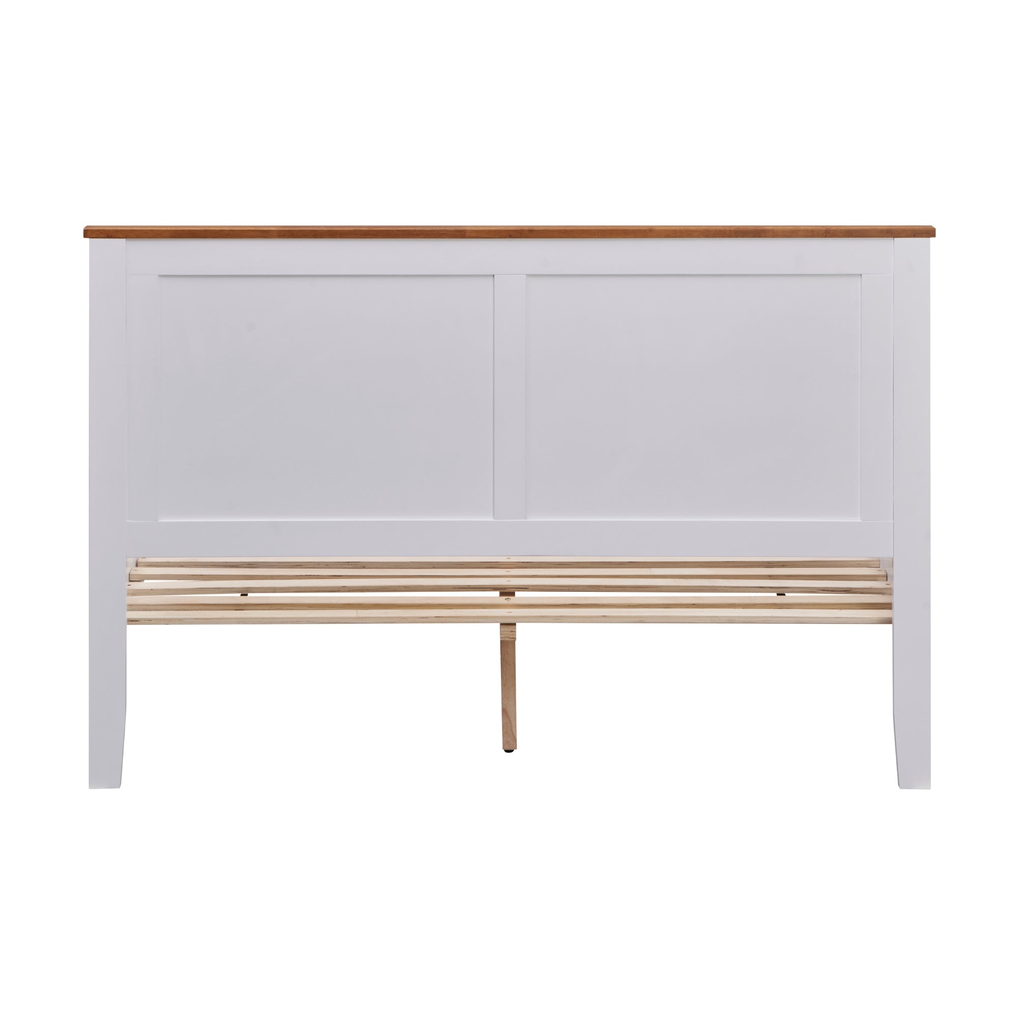 Add a touch of timeless elegance to your bedroom with this Queen Bed, designed in a charming Hamptons style. Featuring a white painted finish contrasted by mid-brown timber tops, this bed exudes sophistication and warmth. The panelled headboard and footboard complement the aesthetic, while the rubberwood tops, legs, and central support legs ensure exceptional strength and durability. Perfectly combining style and functionality, this Queen Bed is a versatile addition to any modern or traditional bedroom.