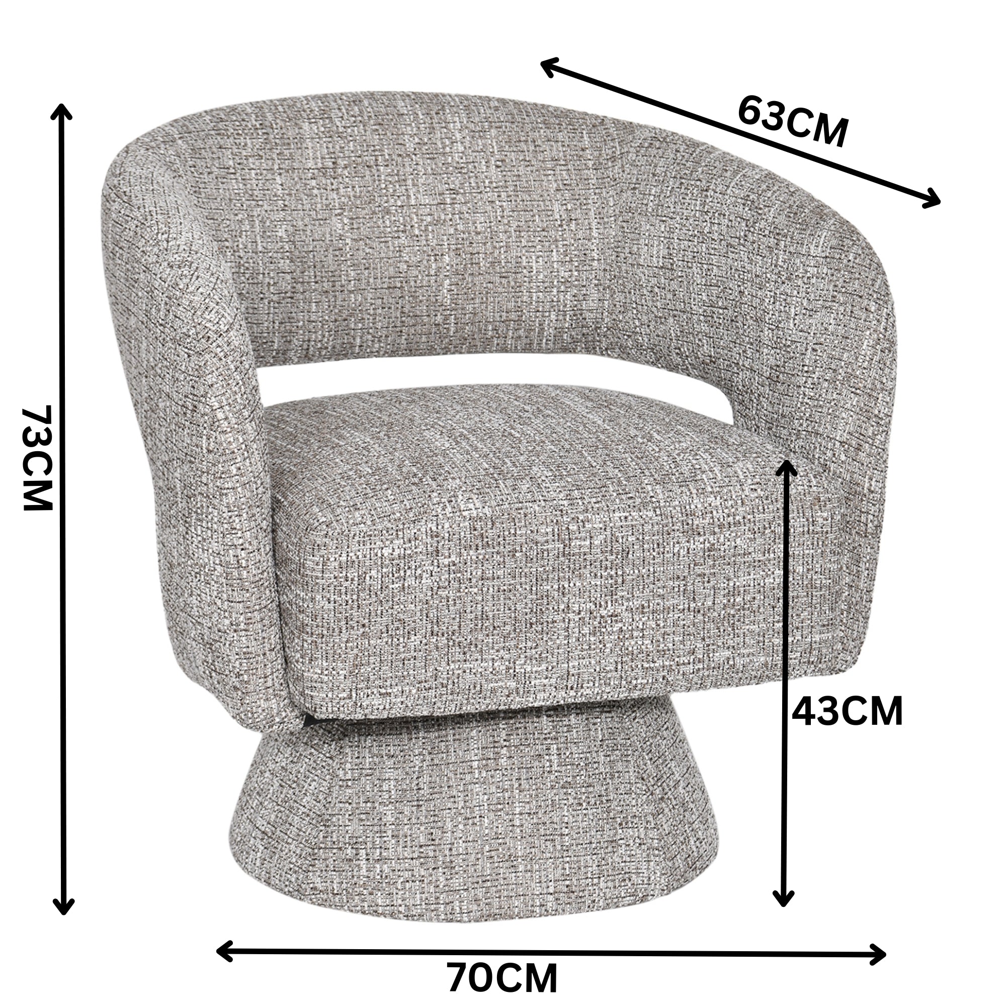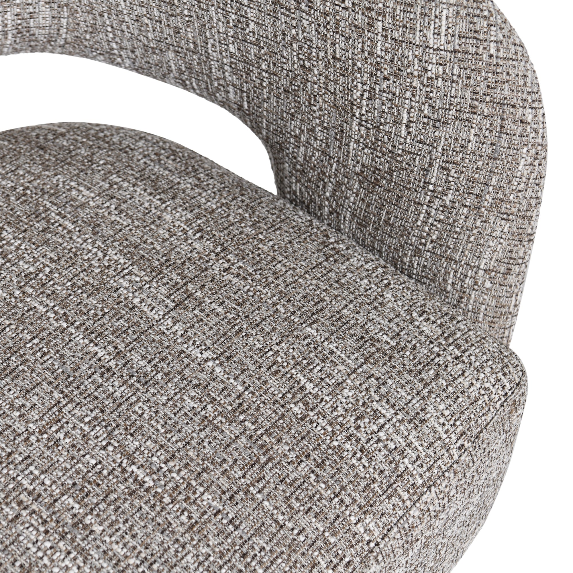 Add a modern twist to your living space with this Swivel Accent Chair in Almond, a stylish and comfortable statement piece that complements any interior. Featuring a split-back curved design, this chair blends sculptural form with practical function, offering both elegance and support. Upholstered in a rich, textured woven polyester fabric in warm almond tones, the chair brings depth and sophistication to your decor. The firm yet comfortable seat provides excellent support, making it ideal for everyday lounging or as an accent piece in your living room, bedroom, or office. The 360-degree swivel base allows you to rotate smoothly in any direction, adding versatility and convenience. Built with a durable plywood structural frame, this chair ensures lasting strength and stability. Perfect for those who appreciate refined design and functionality in one.