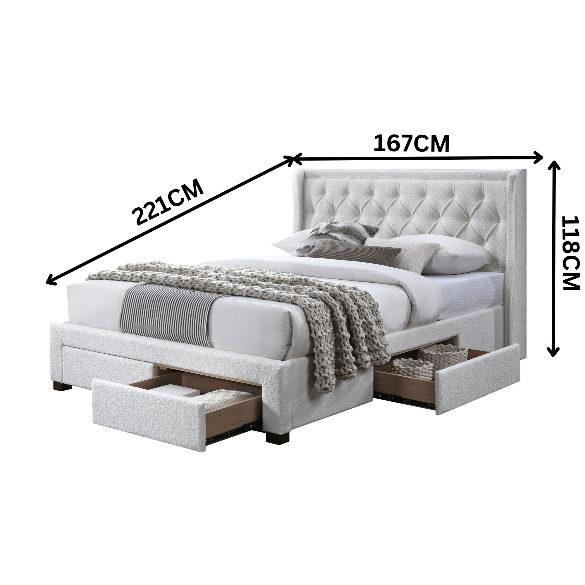 Jackson Queen Size Bed Frame 4 Storage Drawers Boucle Fabric Ivory Cream