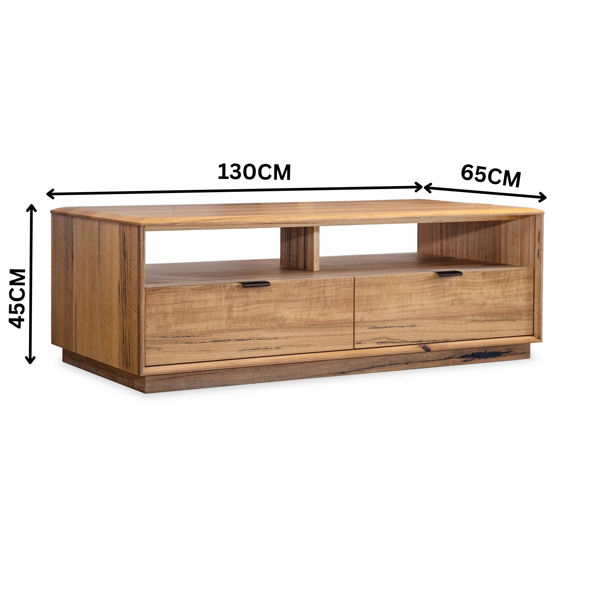 Bring style and practicality to your living or dining space with this 2-drawer coffee table, crafted from solid and veneer marri wood in a natural finish. Designed to complement both modern and classic interiors, this coffee table pairs its timeless wood tones with black metal handles for a contemporary touch. The table features two spacious drawers with full extension metal runners, providing easy storage for remotes, magazines, and other essentials. Its sturdy construction ensures long-lasting durability, while the fully assembled design makes setup effortless. With its functional storage and elegant look, this coffee table is the perfect centrepiece for your lounge or family room.
