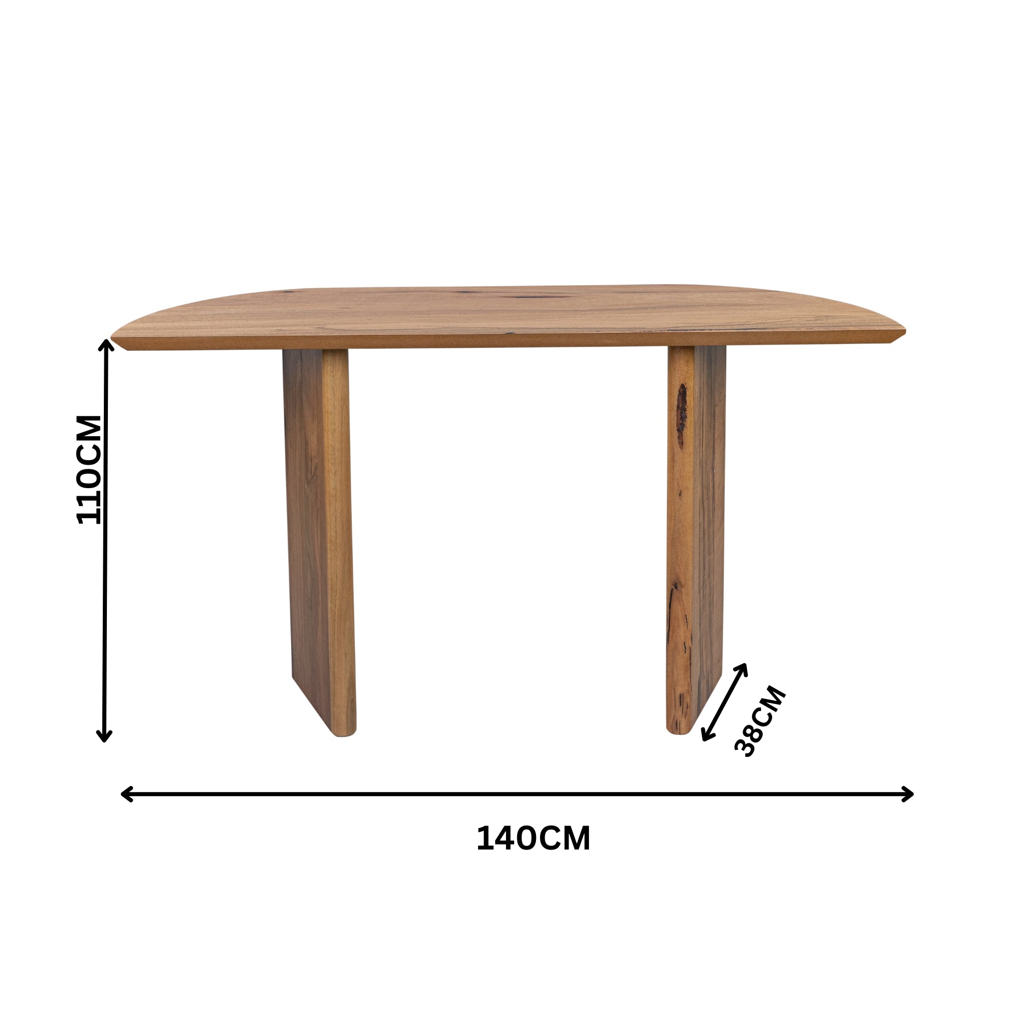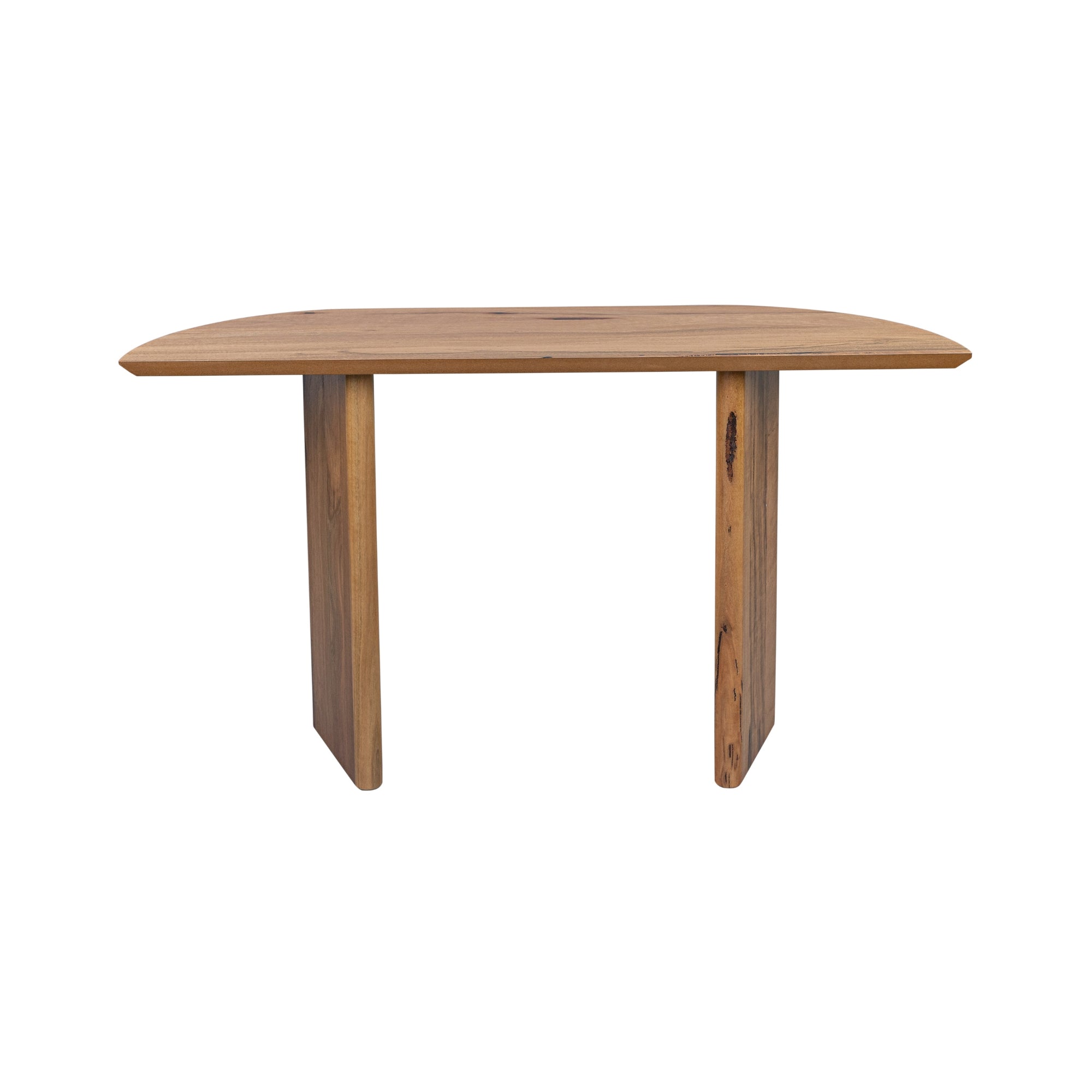 This console table with a natural aesthetic and distinct leg design gives an inviting look to your living area. Assuring an inviting ambiance, this table, crafted in the celebrated Scandinavian style, features a robust tabletop and legs. The table is made of sustainably harvested solid and veneer Marri wood, flaunting timber colours and grain patterns that give it a unique beauty. Enhancing its appeal, the table is coloured in a natural tone, creating a stunning synergy when paired with complementary furniture pieces. The easy-to-assemble table comes with a one-year warranty. Its legs need assembly.