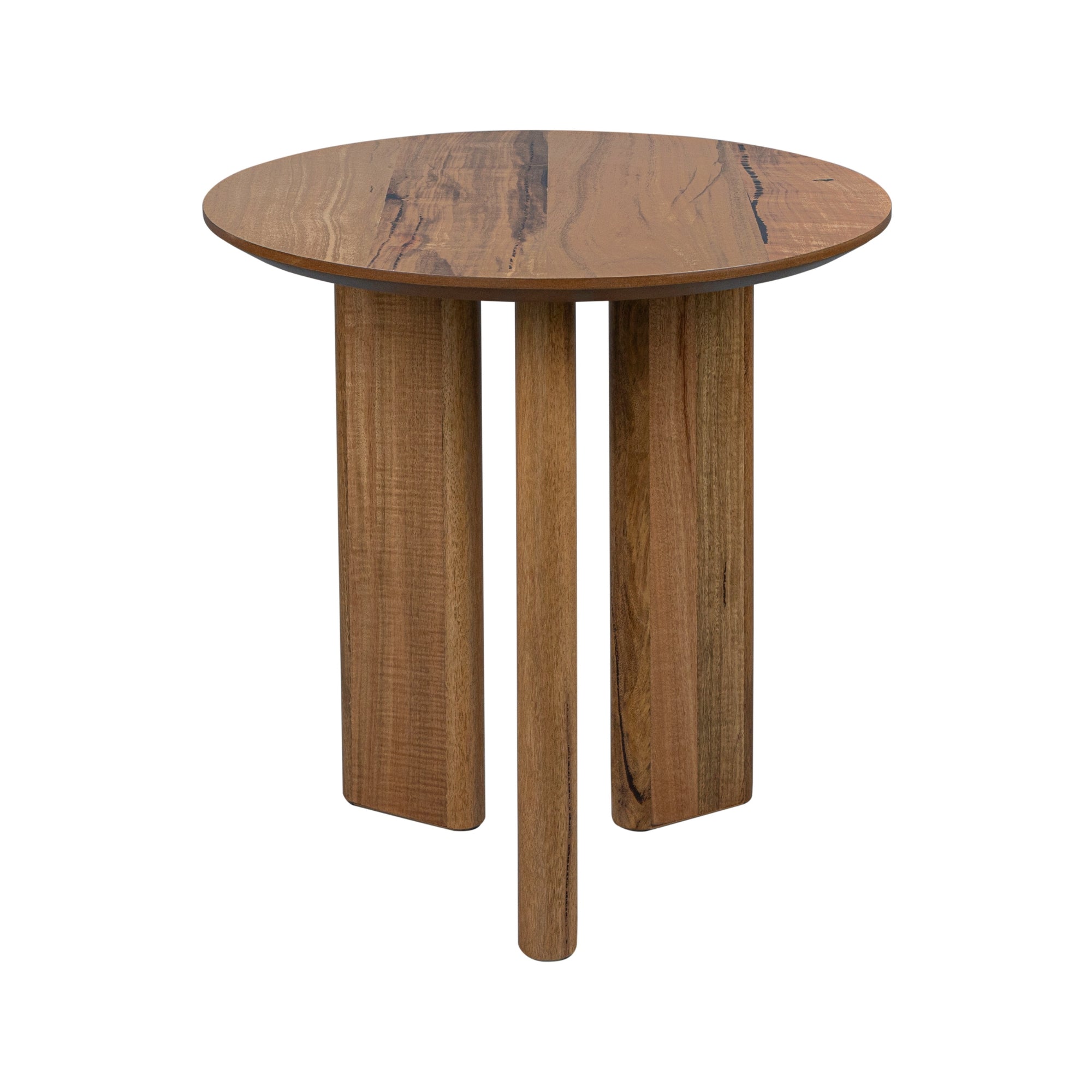 This lamp table with a natural aesthetic and distinct leg design gives an inviting look to your living area. Assuring an inviting ambiance, this table, crafted in the celebrated Scandinavian style, features a robust tabletop and legs. The table is made of sustainably harvested solid and veneer Marri wood, flaunting timber colours and grain patterns that give it a unique beauty. Enhancing its appeal, the table is coloured in a natural tone, creating a stunning synergy when paired with complementary furniture pieces. The easy-to-assemble table comes with a one-year warranty. Its legs need assembly.