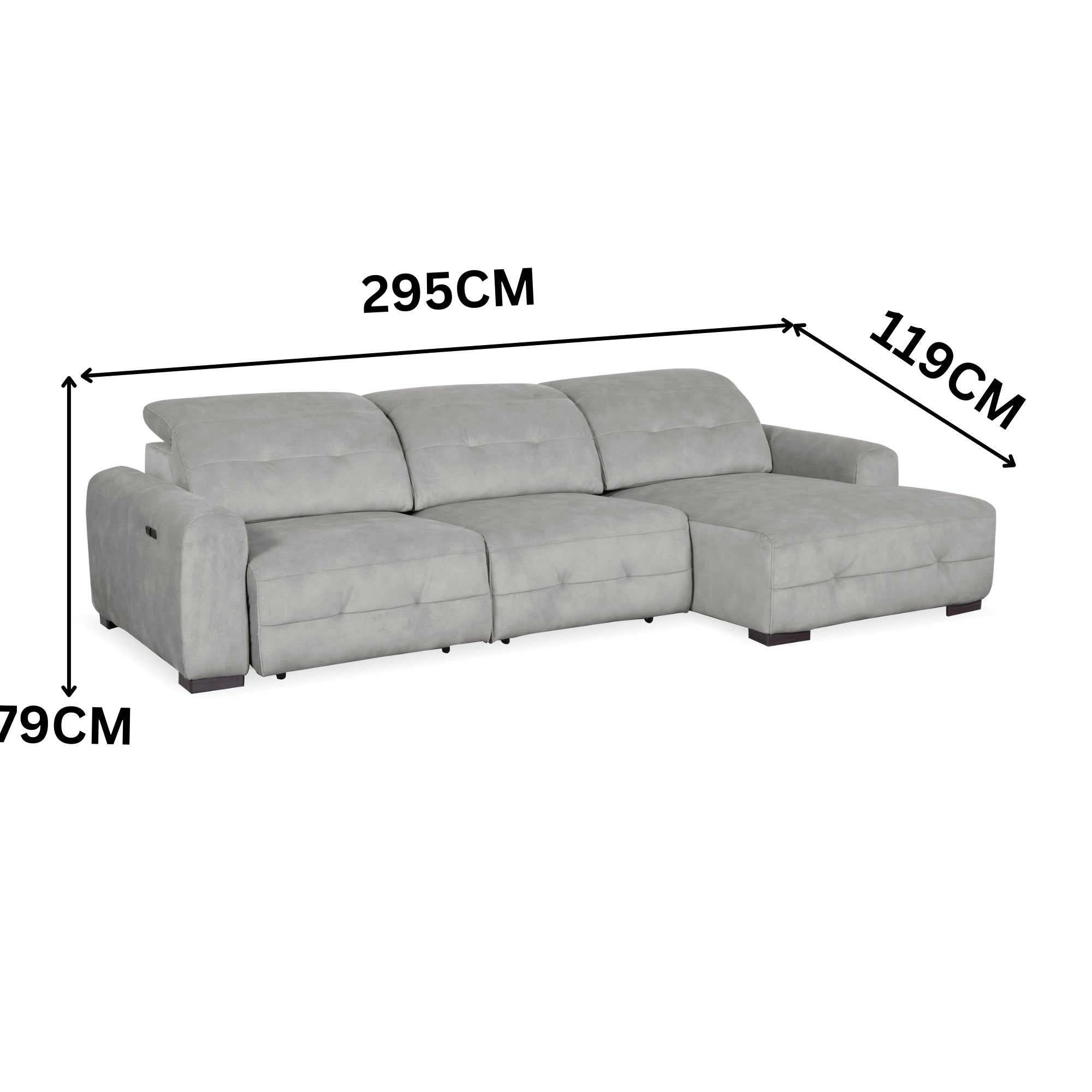 Jarden 2 Seater Sofa Electric Sectional Bed RHF Chaise Ash Grey