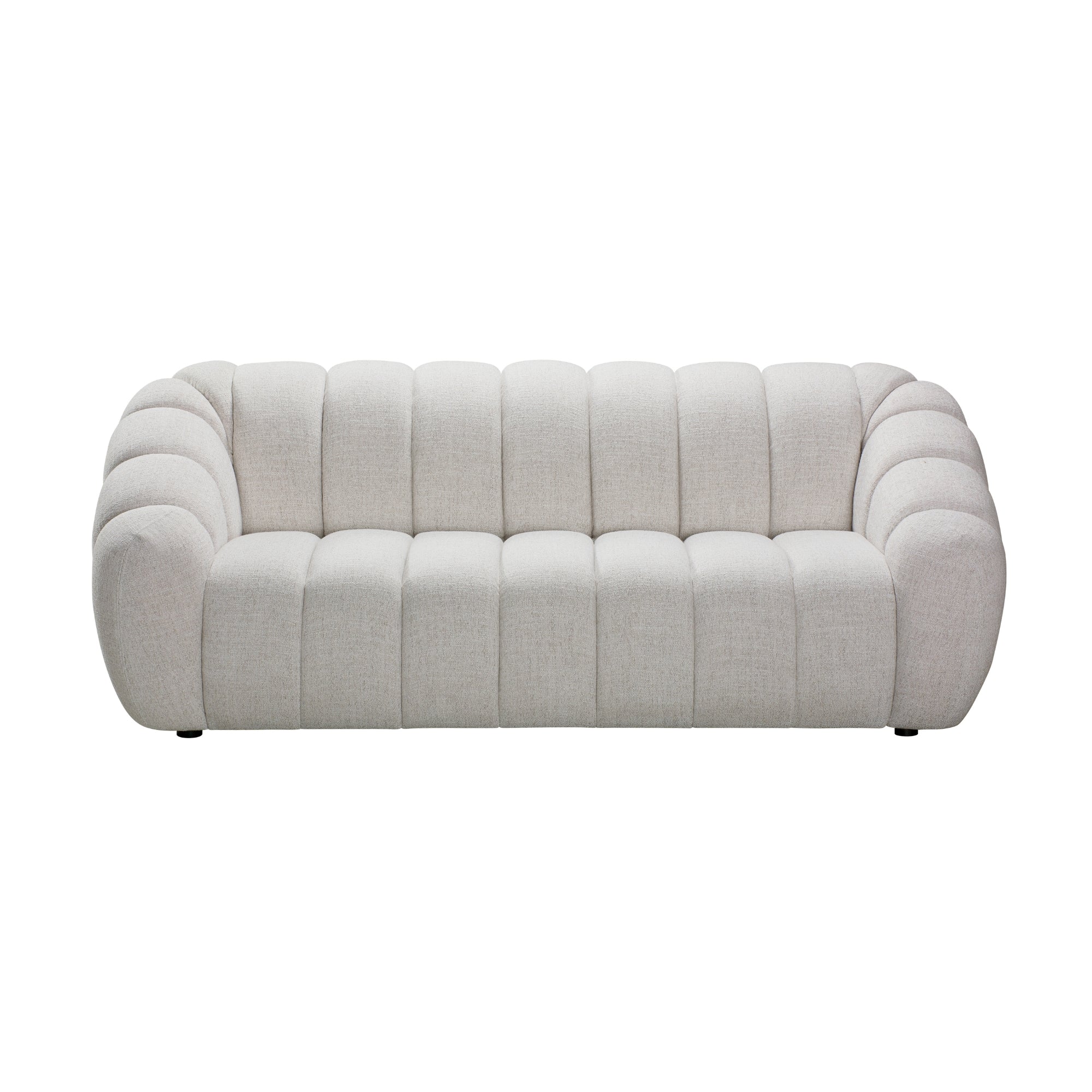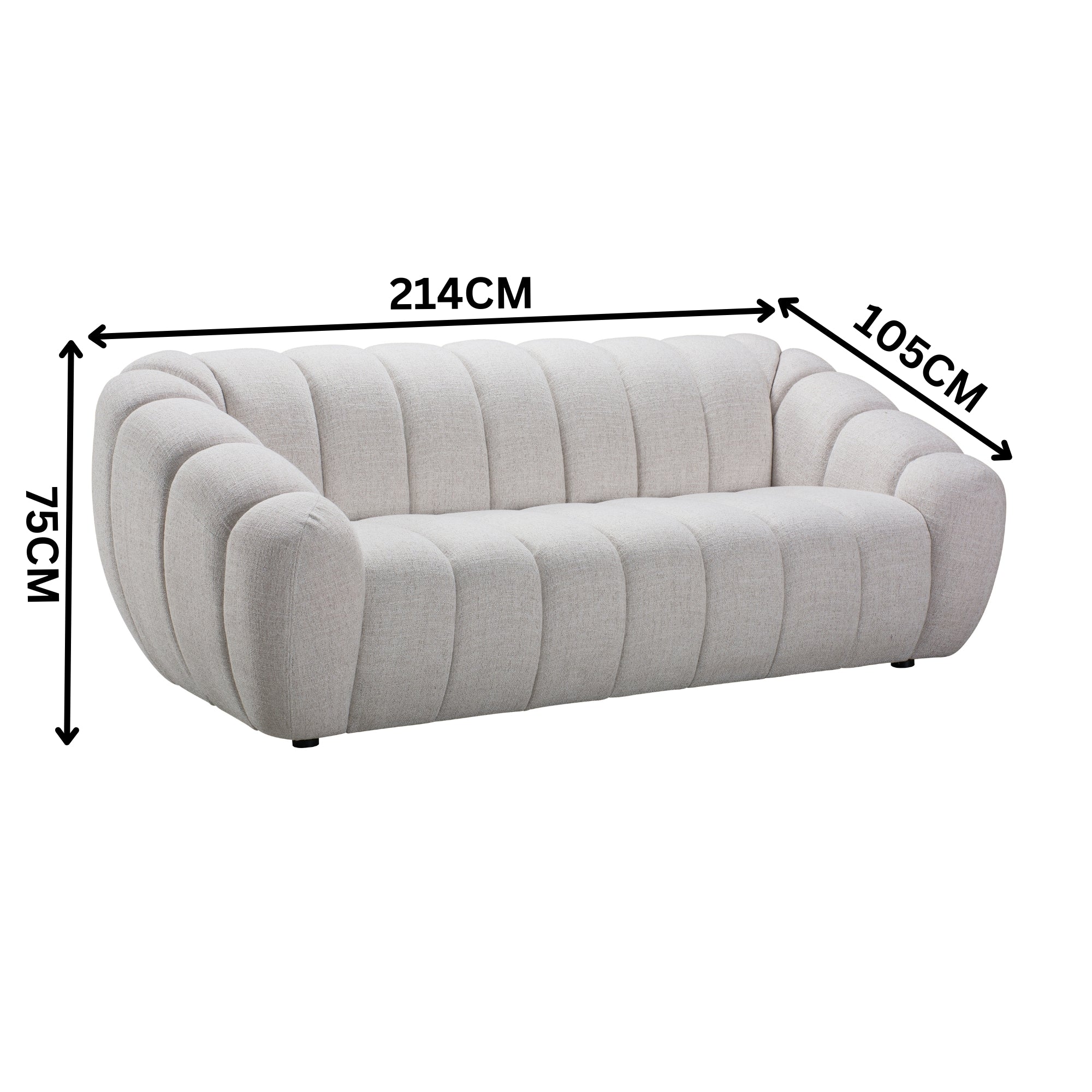 Create an inviting and stylish living space with this 3-Seater Sofa in Beige colour, designed for modern comfort and timeless appeal. Featuring deep seating and gently slanted arms, this sofa offers a relaxed and enveloping feel - perfect for lounging or entertaining guests. Its low-profile, curved silhouette paired with vertical panel detailing adds a contemporary touch to any room. Upholstered in soft, linen-look Monique fabric, the beige tone blends effortlessly with a wide range of interiors, from modern minimalist to classic chic. Built with a durable solid wood and plywood frame and supported by S-springs, pocket springs, and webbing, this sofa combines style with long-lasting comfort.