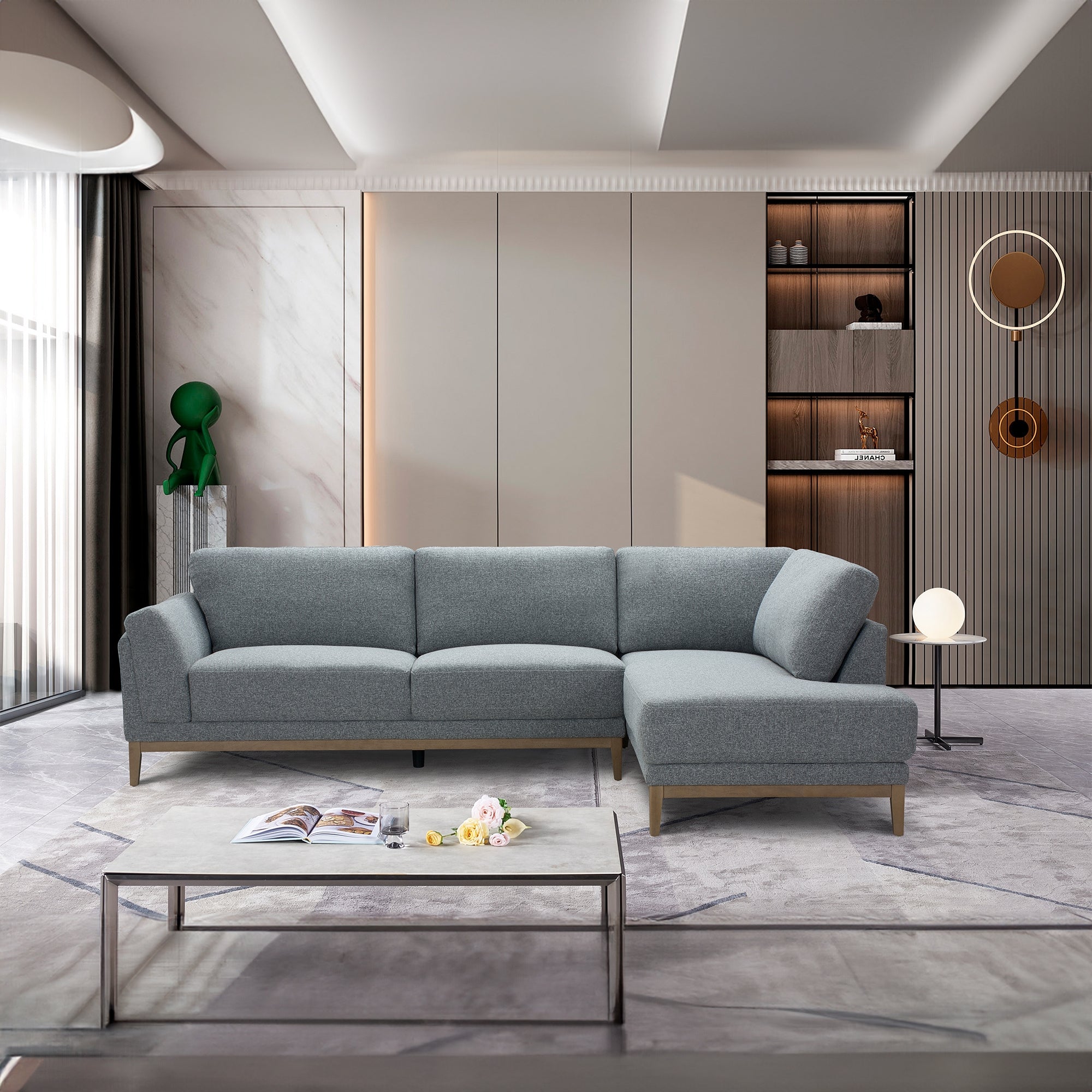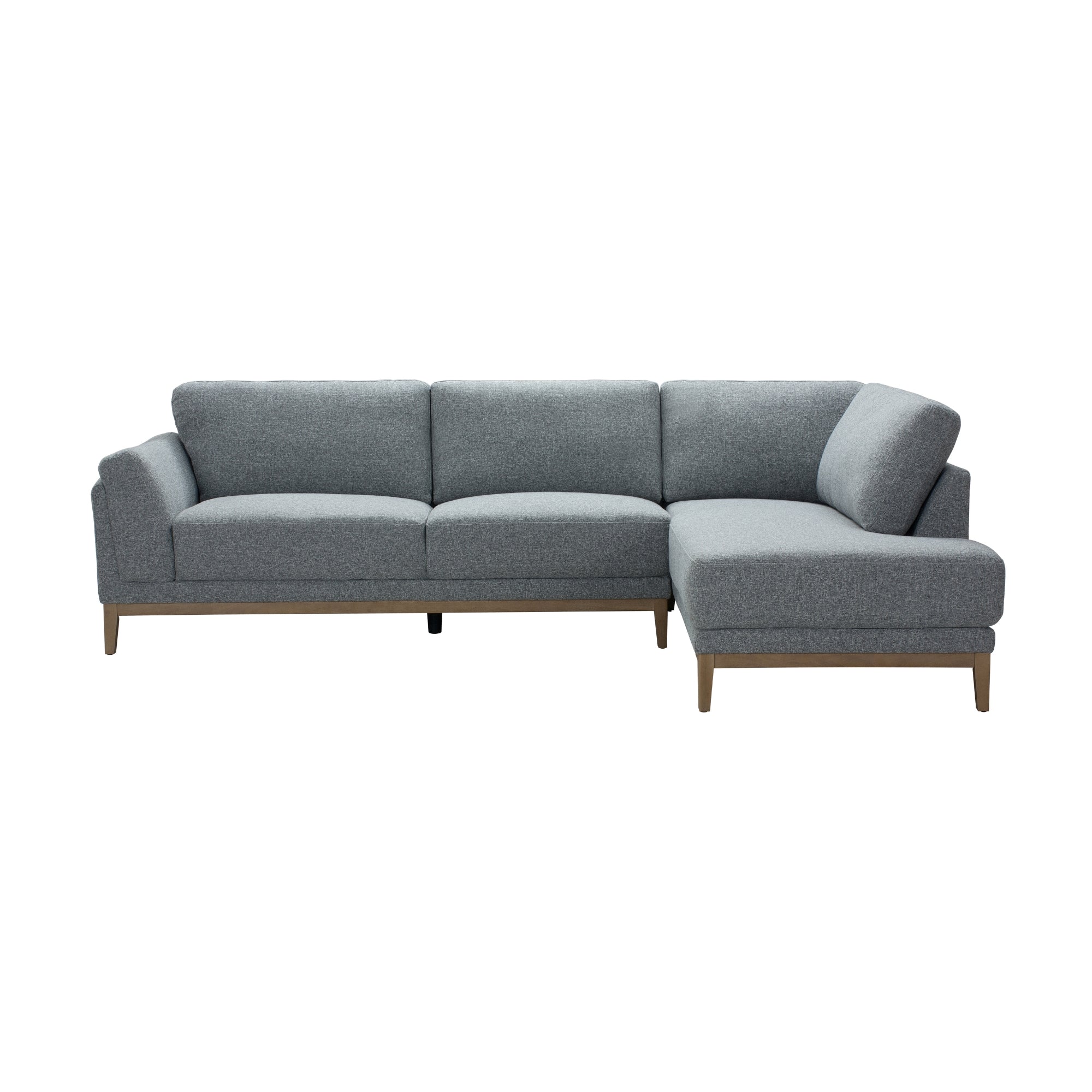 Bring comfort and style to your living room with this 3-Seater with RHF Chaise in Grey Colour. Upholstered in soft Monique Steel fabric, this chaise suite offers a cosy, contemporary look that blends seamlessly with modern interiors. Its timber plinth base with tapered legs adds warmth and Scandinavian-inspired charm, while double-padded armrests provide extra comfort with a tailored, structured finish. Built with a solidwood and plywood frame and supported with foam, S-Spring, pocket springs, and webbing, this suite is designed for long-lasting durability and luxurious seating. Perfect for relaxing, entertaining, or lounging, it combines style, comfort, and functionality in one elegant package.
