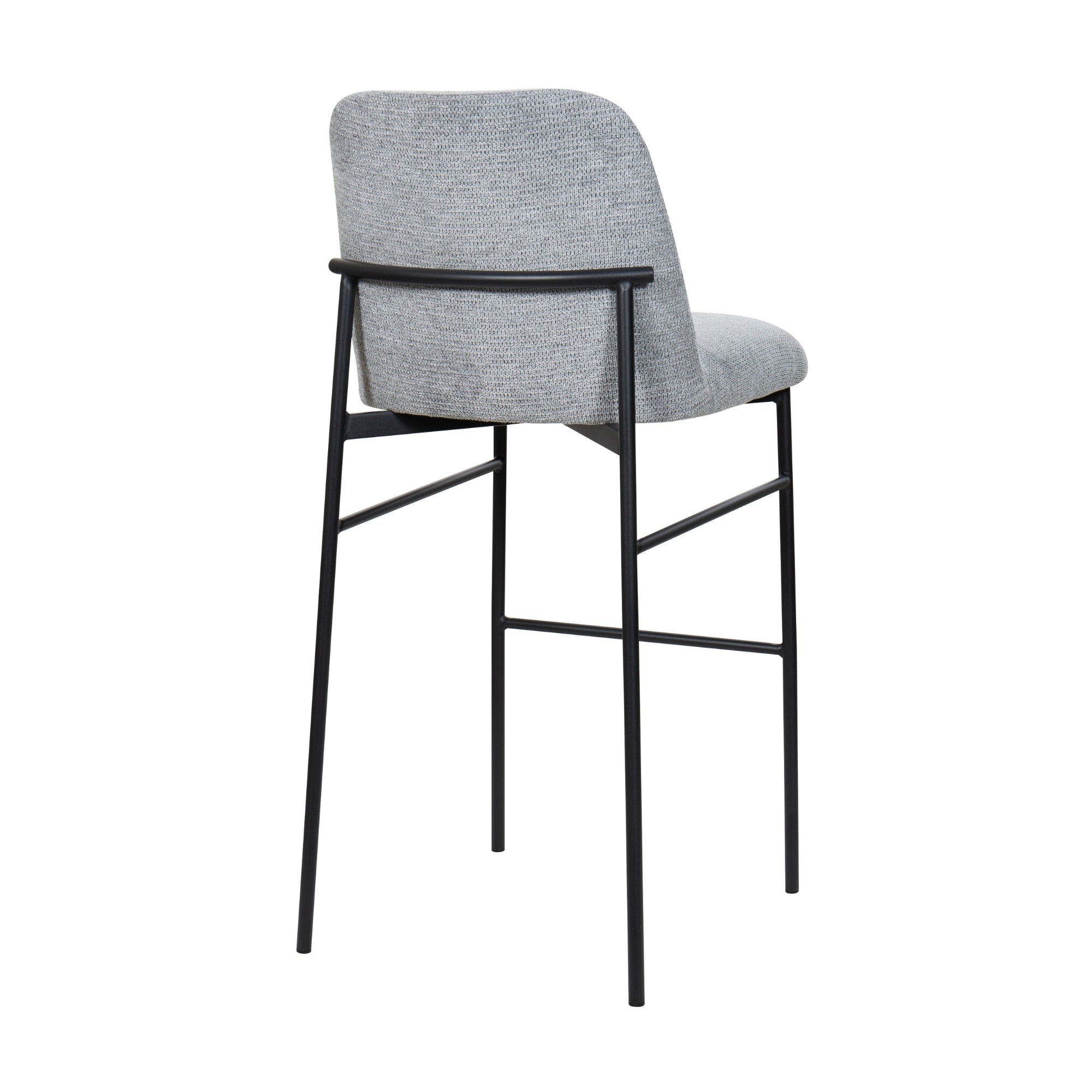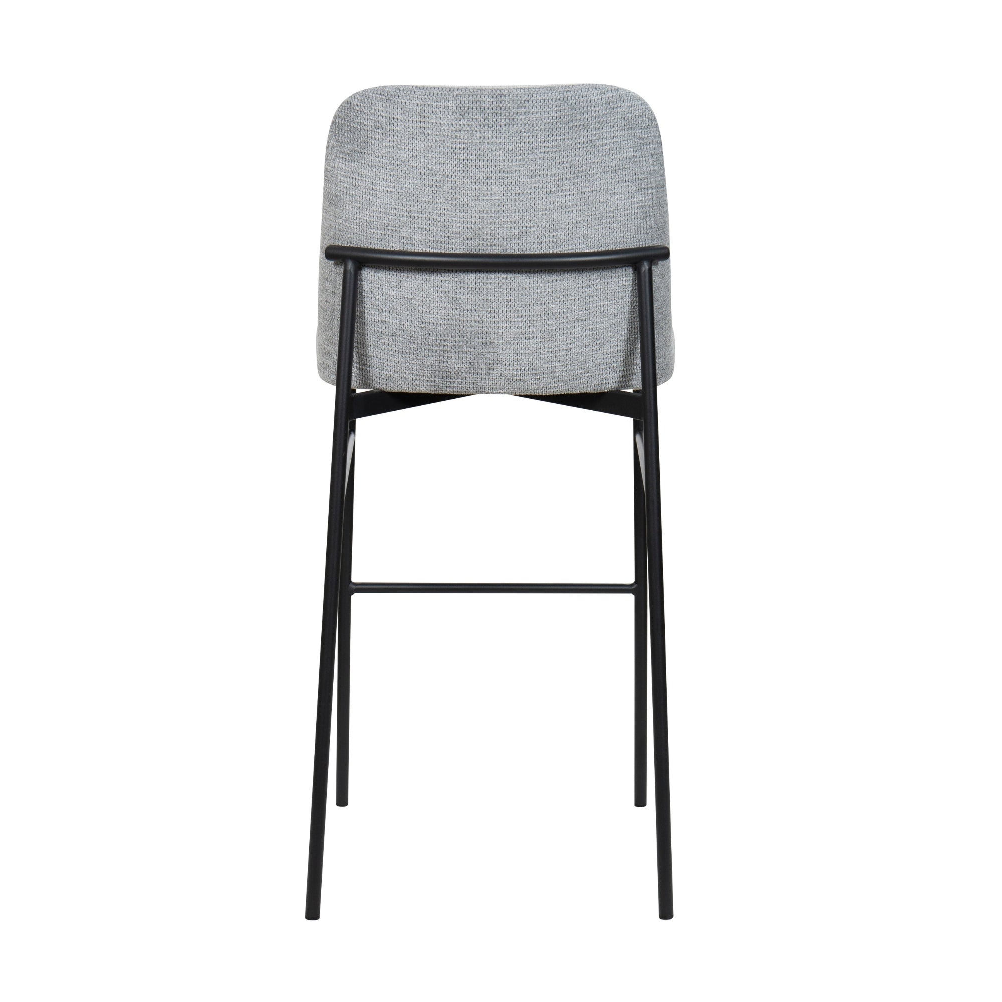 Enhance your dining experience with this Grey Bar Chair, a perfect blend of comfort, durability, and contemporary style. Upholstered in high-performance 100% polyester fabric, this bar chair offers a soft yet resilient seating surface. Supported by a sturdy metal frame with black powder-coated legs, it ensures long-lasting stability and elegance. Ideal for pairing with various dining tables, its versatile design adds a modern touch to any dining room.