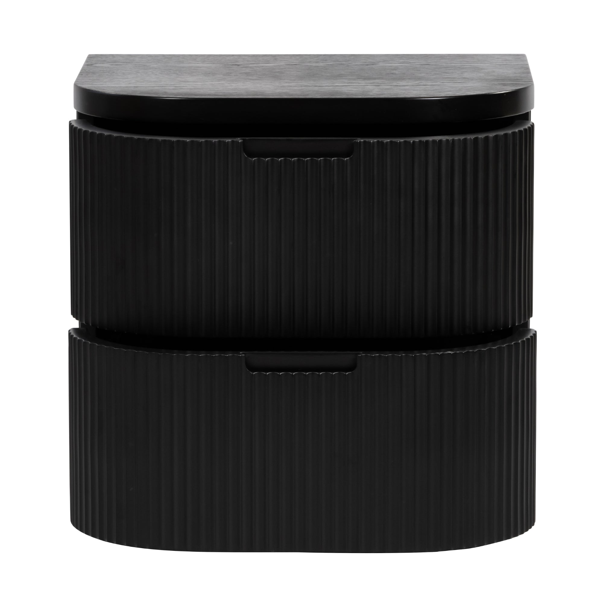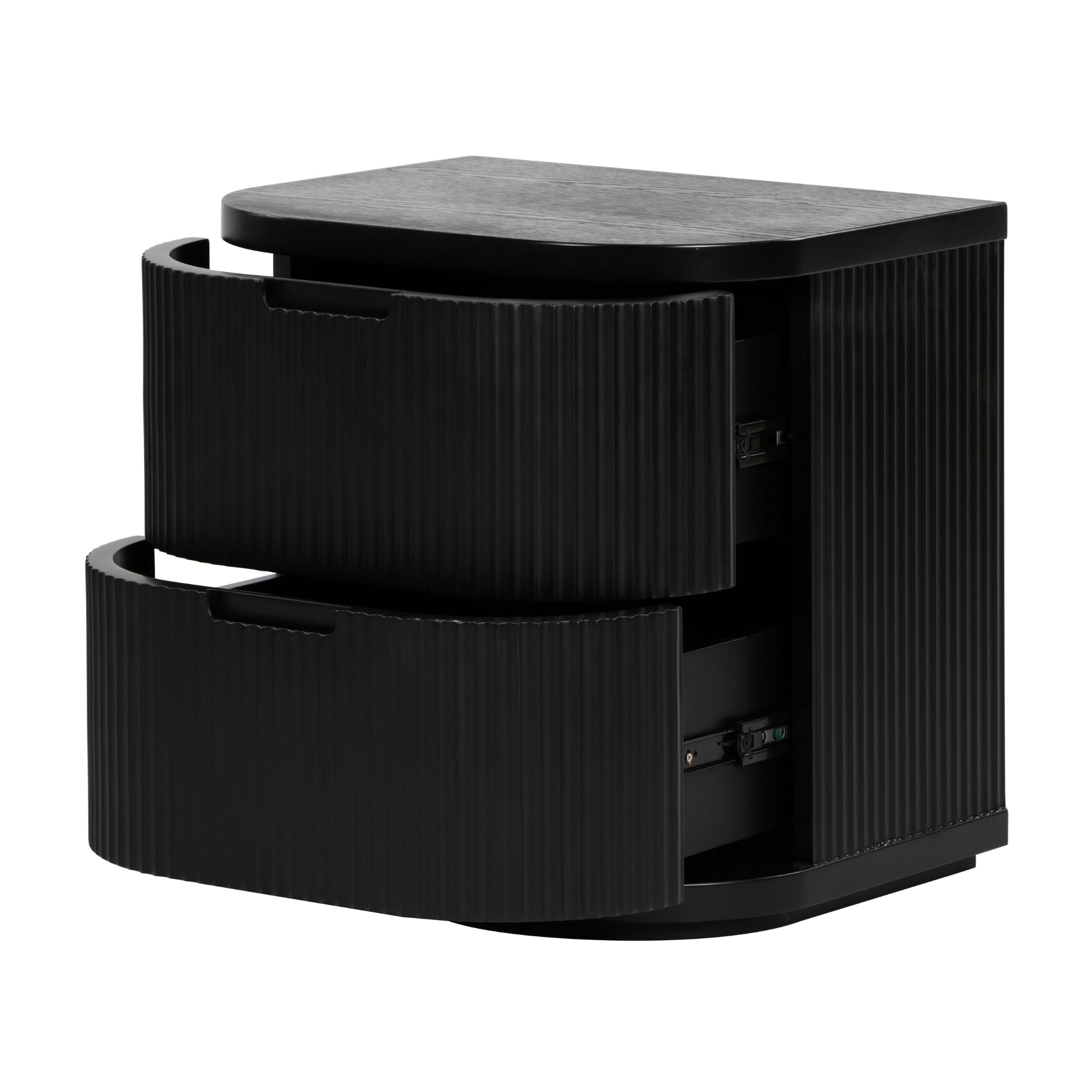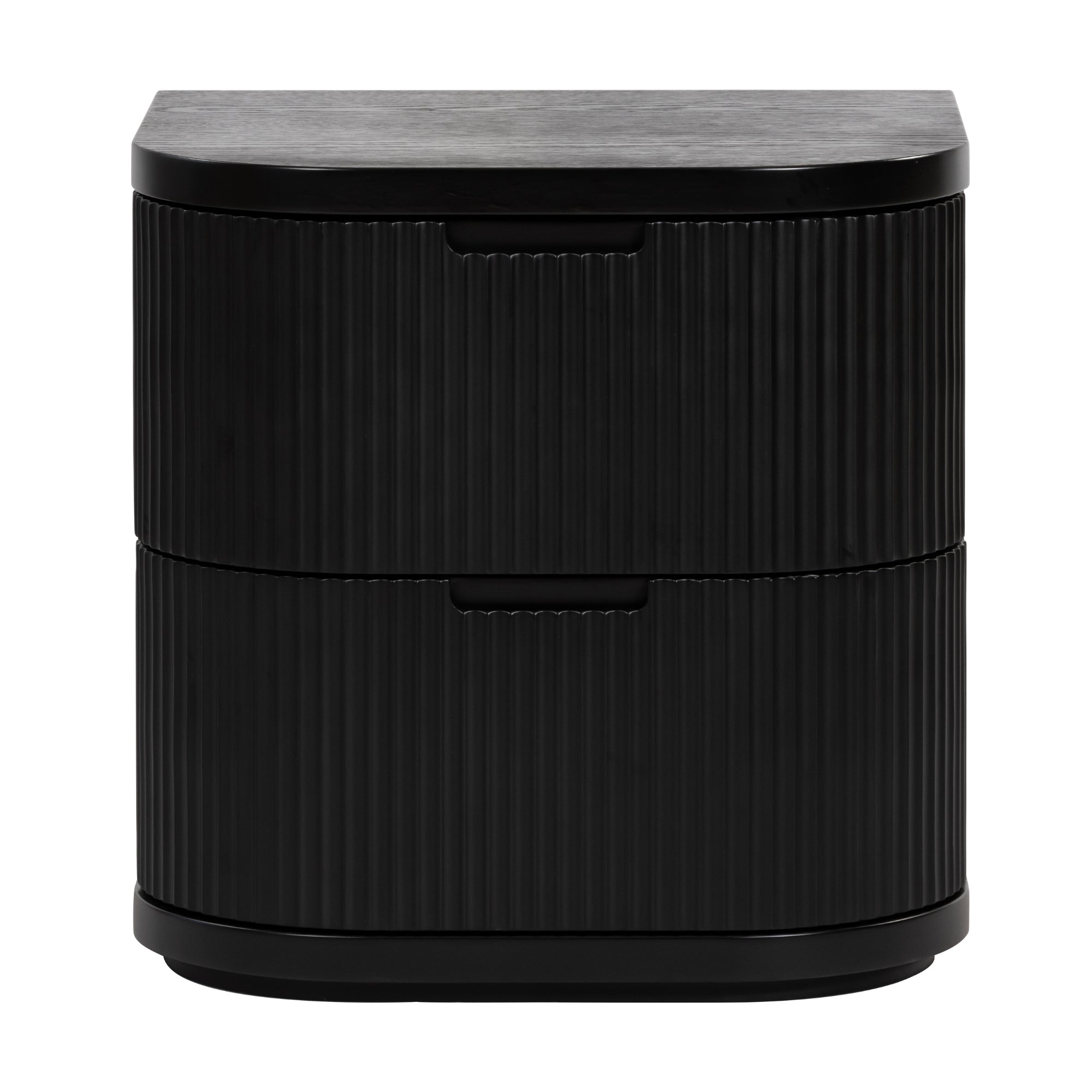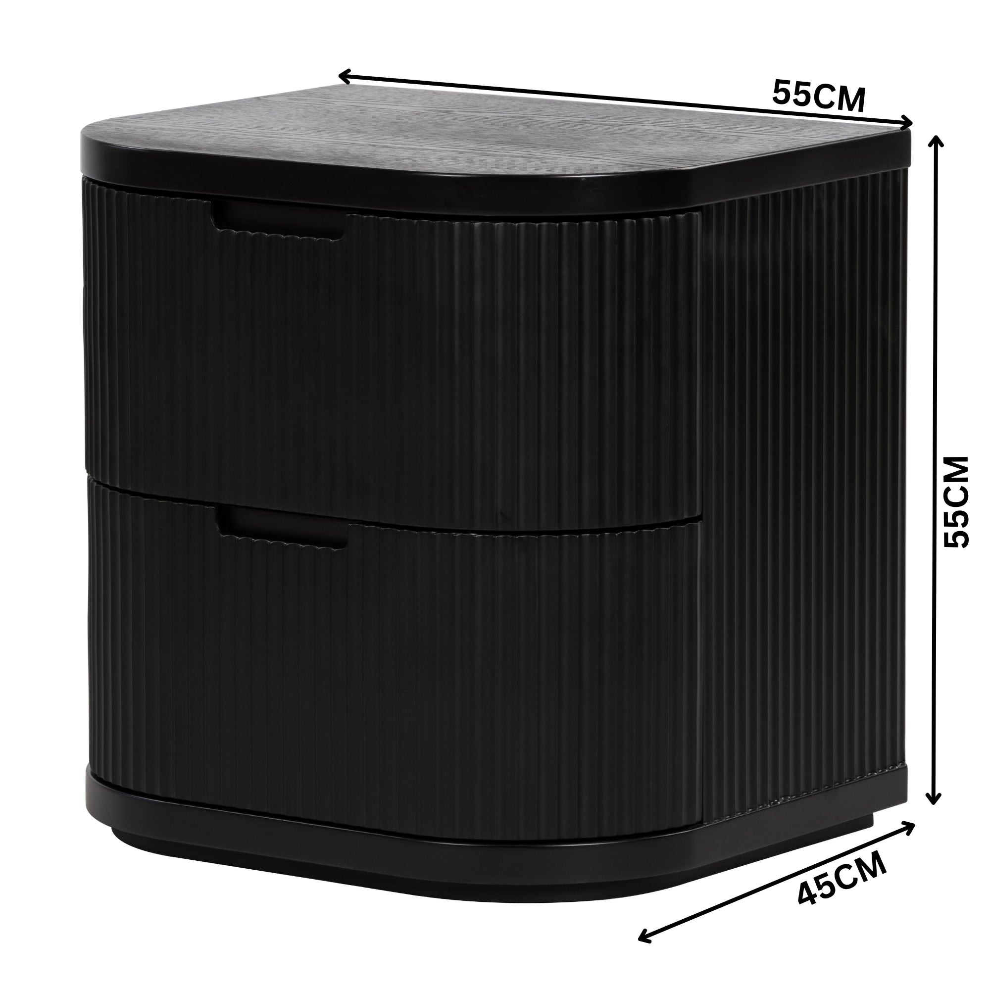 Introduce timeless elegance to your bedroom with this 2 Drawer Bedside in Black Colour, a beautifully crafted piece designed to complement modern, classic, or coastal-inspired interiors. Featuring a clean silhouette and a fresh black finish, this bedside table adds sophistication while offering practical storage for your nighttime essentials. The design is elevated with vertical groove detailing on the drawers and sides, giving the bedside a contemporary, textured look that immediately draws attention. The top surface, crafted from durable MDF with a premium wood veneer, provides the perfect space for a lamp, decor, books, or your evening cup of tea. Equipped with two spacious drawers, the bedside ensures clutter-free organisation with smooth operation. Whether you're styling a master suite, guest room, or kid's bedroom, this bedside table effortlessly enhances both aesthetics and functionality.
