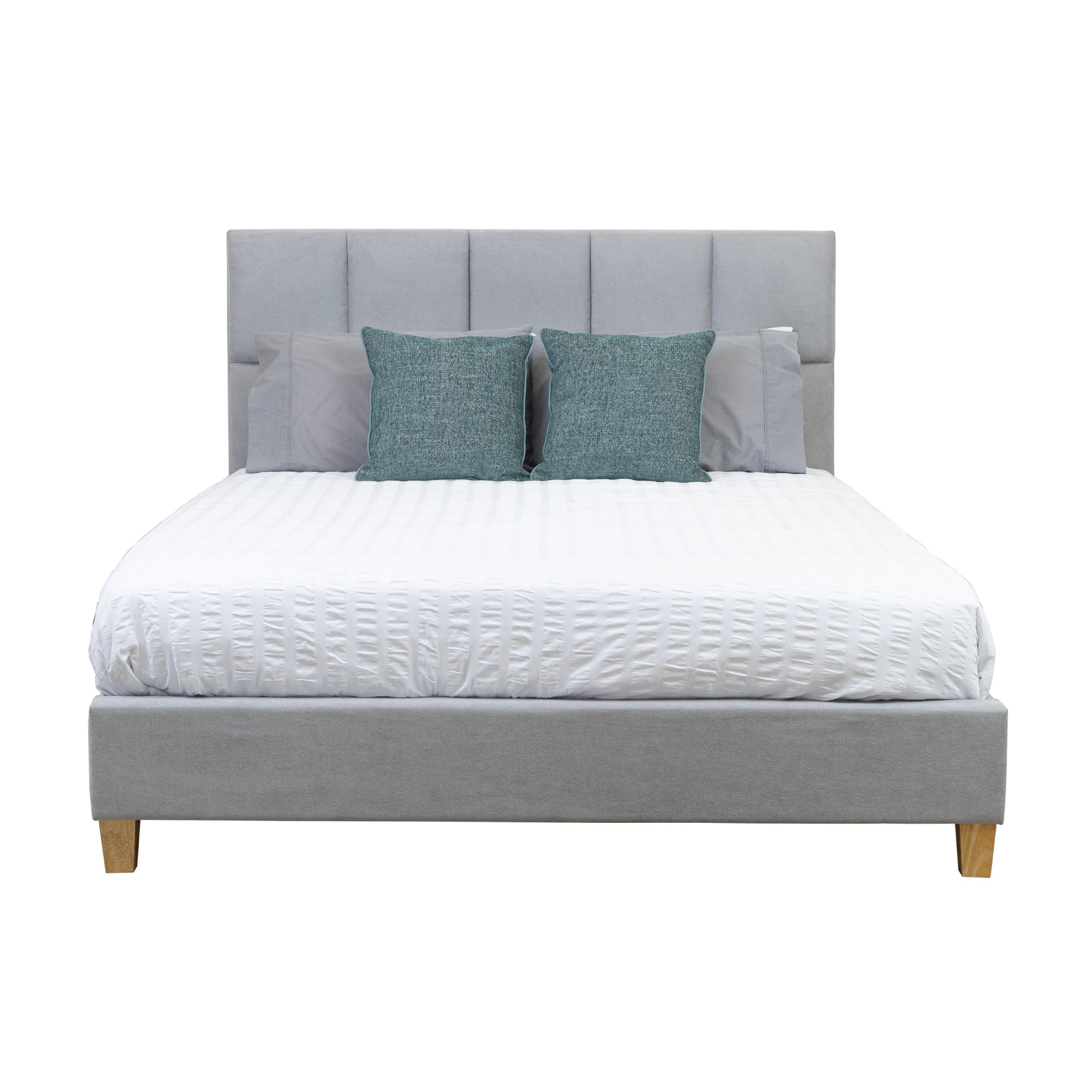 This double bed designed in a contemporary style creates a classy, comforting space in your bedroom. Offering a versatile design, this great value piece of furniture features a grid-patterned bedhead that is comfortable as well as beautiful. The bed is fully upholstered in soft polyester fabric. A 45mm thick solid timber slat system with central support gives it internal strength, and natural-coloured rubberwood legs in a tapered design provide the furniture with a robust support. The beautiful furniture is made of sustainably harvested particle board. The wood is known for its shock resistance and beauty. The easy-to-assemble bed in a mist gray colour matches effortlessly with a variety of interior decor styles and themes. A one-year warranty is included with the frame and fabric of the bed, and it comes with dimensions of W145 x D208 x H110 CM.