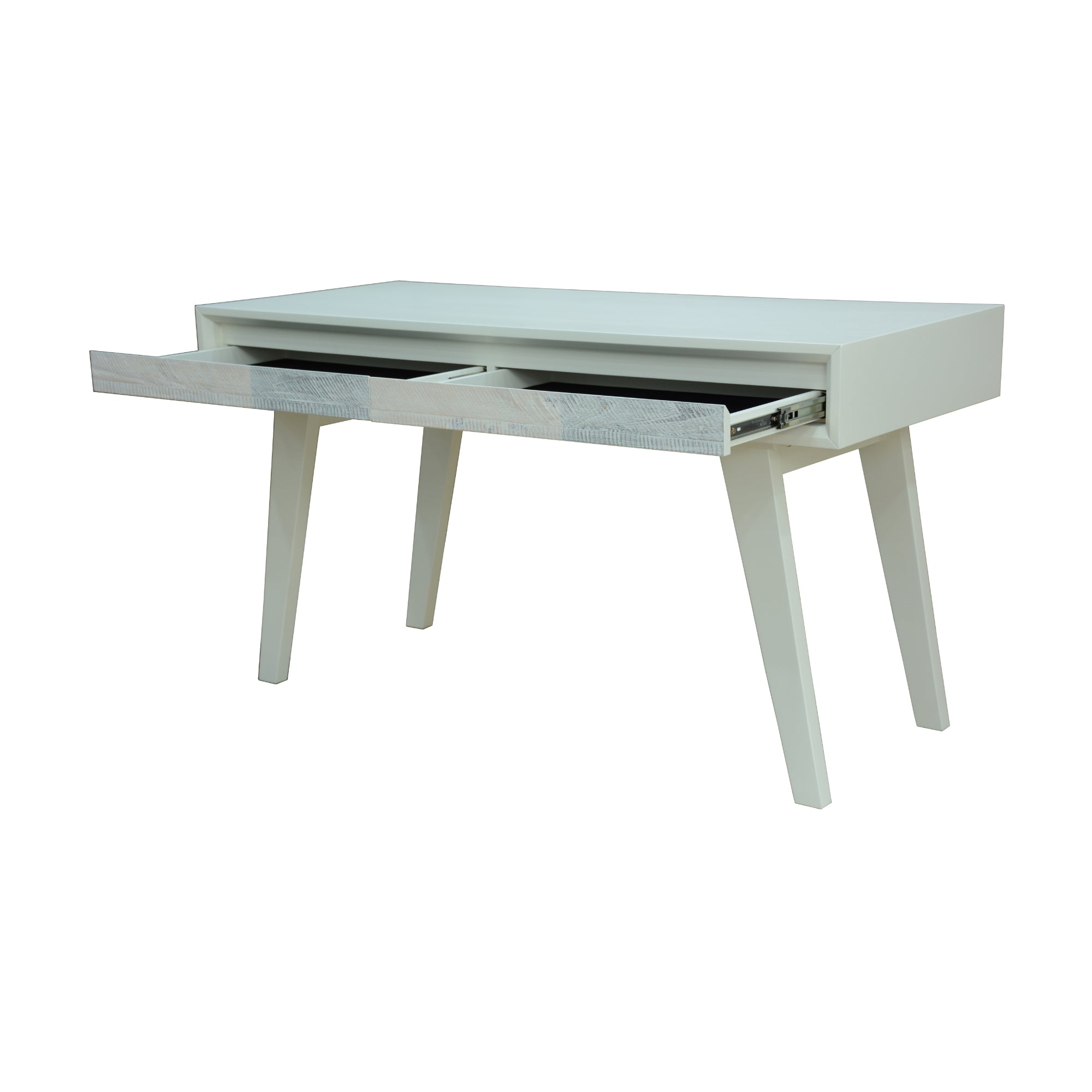 Introduce timeless craftsmanship and coastal charm into your workspace with this 2 Drawer Desk from the Mexican Collection - a stunning blend of mid-century design and rustic character. Inspired by the breezy, relaxed aesthetic of 1960s coastal Mexico, this desk celebrates authentic materials, hand-finishing, and functional style. Expertly crafted from solid recycled pine, each piece carries a unique history. Natural imperfections such as old nail and screw holes highlight the desk's reclaimed nature, giving it an authentic and individual appeal. The hand-applied whitewash finish undergoes a meticulous multi-step distressing process, producing a soft, weathered texture that enhances the natural grain of the timber. Finished with a clear lacquer, this desk offers durability while maintaining its rustic beauty. Designed with everyday practicality in mind, the two spacious drawers feature full extension side-mounted metal runners for smooth operation, providing ample room to store stationery, documents, and accessories. Whether placed in a home office or creative workspace, this desk seamlessly combines coastal inspiration with modern functionality.