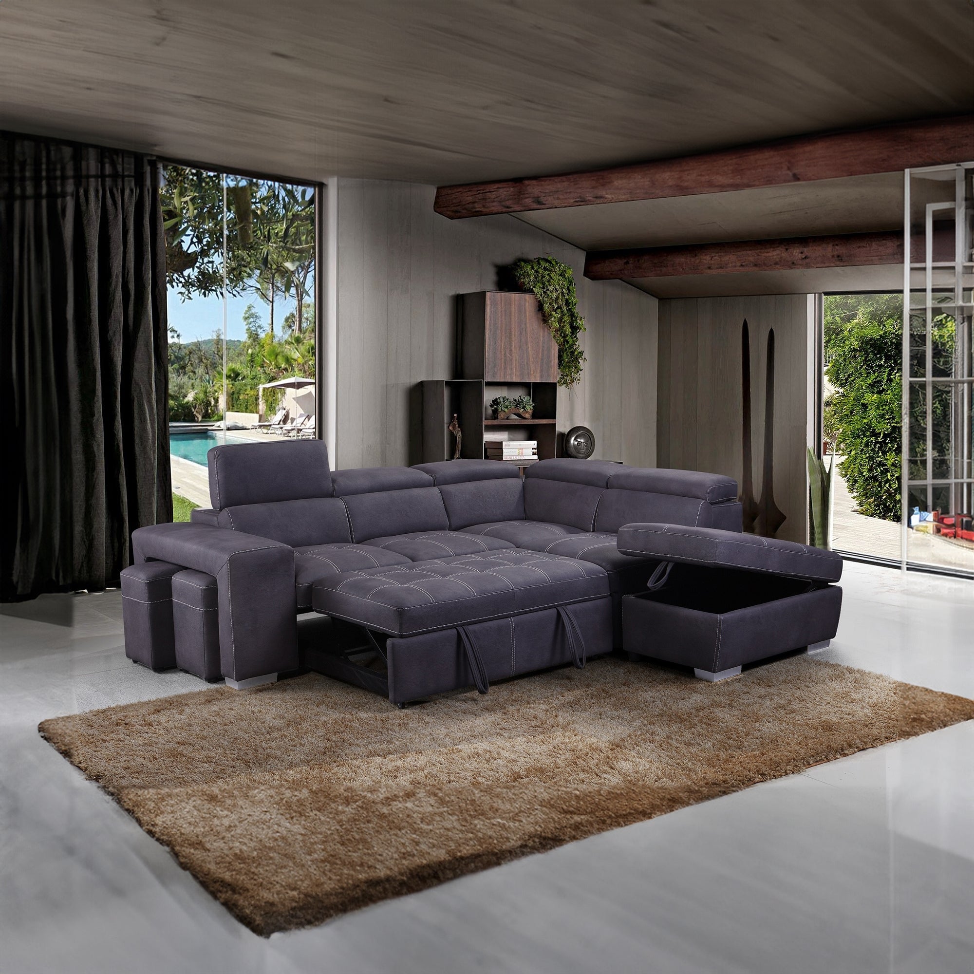 Experience the ultimate in comfort and versatility with this Modular Corner Lounge in Charcoal Colour - a perfect fusion of modern design, clever functionality, and premium craftsmanship. Upholstered in soft, high-performance Nabuk fabric (100% polyester), this modular lounge offers a luxurious texture and long-lasting durability suitable for everyday family living. Its innovative multi-functional design includes a pull-out sofa bed, a storage ottoman, and two hidden mini ottomans, offering ample flexibility for relaxing, lounging, or accommodating overnight guests. The adjustable headrests provide personalized comfort and support, allowing you to find the ideal position for reading, reclining, or watching TV. Featuring contrast stitching details that add a touch of sophistication, and supported by a solid timber frame with webbing, S-springs, and high-density D28 foam, this lounge guarantees both comfort and strength. The warm charcoal colour complements a variety of interiors, making it a stylish centerpiece for modern living spaces.