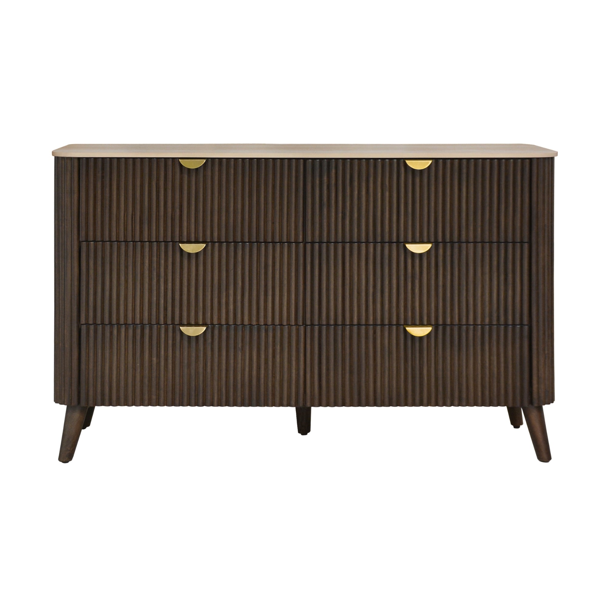 Transform your bedroom into a luxurious retreat with this 4PC bedroom Set, featuring a King Size Bed, 2PC Bedside Table, and a Dresser. Expertly crafted from solid & veneer Malaysian hardwood, this set offers unmatched durability and timeless style. The bed showcases a rich walnut finish that pairs beautifully with the matching bedside tables and dresser, both topped with travertine-finish sintered stone for a premium look and enhanced durability. Gold metal handles add a touch of sophistication, while the full-extension drawers and felt-lined top drawers provide practical storage with a touch of luxury. This coordinated set blends functionality with elegance, making it the perfect centrepiece for any modern or classic bedroom.