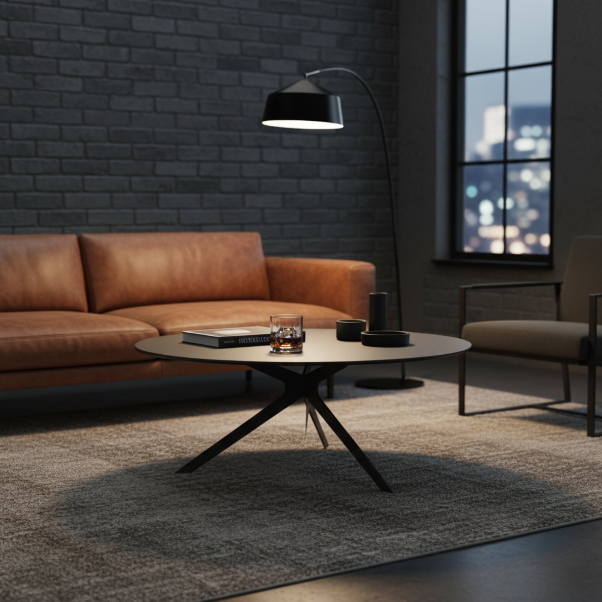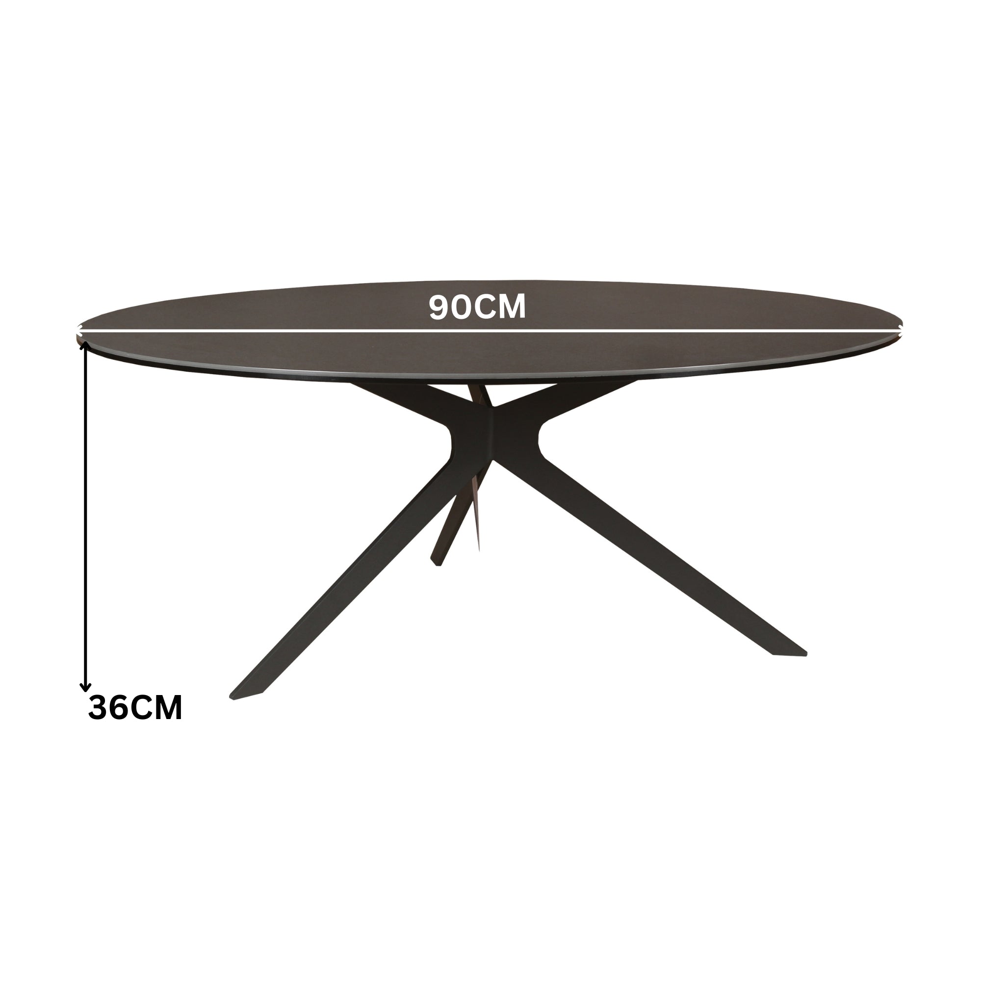 The 90cm Round Coffee Table in Dark Grey is a stunning addition to any modern living space. Featuring a sleek, 10.5mm thick tabletop crafted from a 4.5mm ceramic layer laminated over a 6mm tempered glass base, this coffee table combines elegance with easy maintenance. Its contemporary cross-designed metal legs, coated in black powder, add durability and style, making it the perfect accent piece. Designed to coordinate seamlessly with our Iza, Kross, and Riff extension dining tables, this coffee table creates a cohesive and sophisticated look in your home.