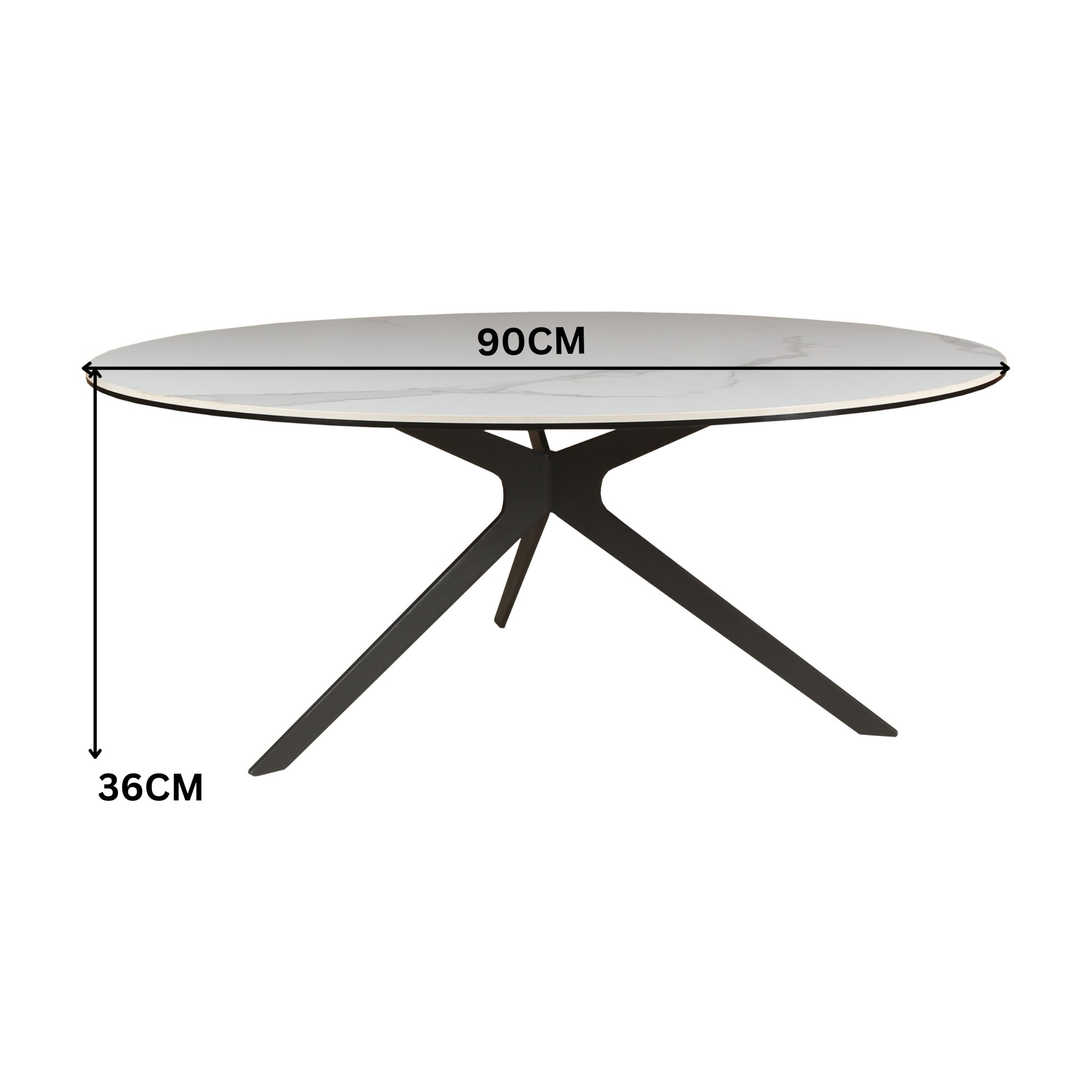 The 90cm Round Coffee Table in White is a stunning addition to any modern living space. Featuring a sleek, 12mm thick tabletop crafted from a 6mm ceramic layer laminated over a 6mm tempered glass base, this coffee table combines elegance with easy maintenance. Its contemporary cross-designed metal legs, coated in black powder, add durability and style, making it the perfect accent piece. Designed to coordinate seamlessly with our Iza, Kross, and Riff extension dining tables, this coffee table creates a cohesive and sophisticated look in your home.