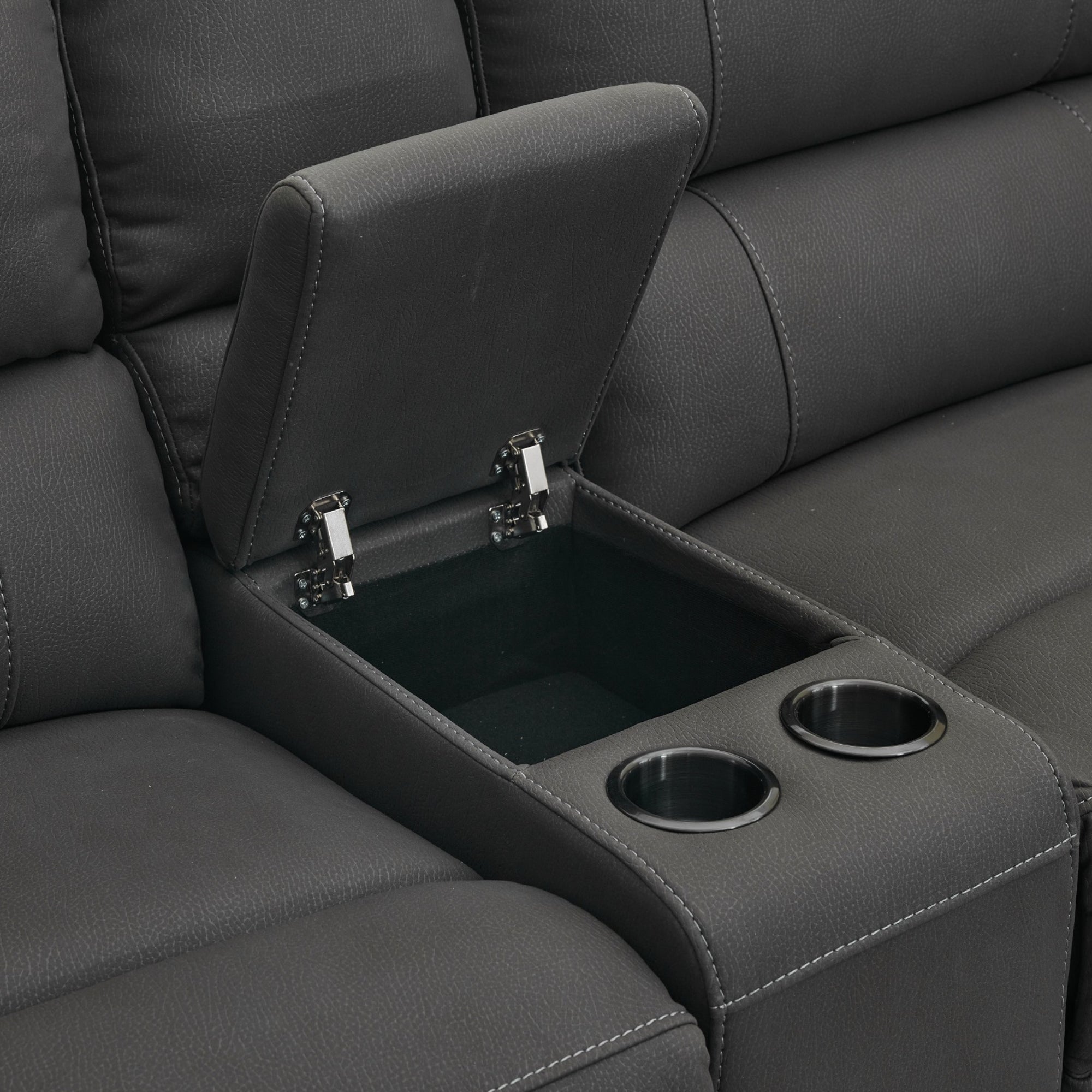 Experience the perfect blend of luxury, comfort, and functionality with this Corner Modular including 3 Recliners in Jet Colour. Designed for modern living, this expansive corner lounge suite offers ample seating with three built-in recliners, ideal for relaxing with family or entertaining guests. Upholstered in luxe rhino fabric, a soft yet durable 100% polyester material, the modular features visible stitching and gentle curves, giving it a modern, tailored appearance. The high backrests, pillow-top arms, and deep cushioning provide exceptional comfort and full-body support, making it perfect for long lounging sessions. For added practicality, it includes a built-in storage console with a flip-top lid and dual cup holders, keeping essentials close at hand. Crafted with a sturdy plywood frame and advanced multi-layered seating support system - featuring foam, webbing, S-springs, and pocket springs - this modular is built to last while maintaining plush comfort. Whether you're unwinding after a long day or hosting friends, this jet-coloured recliner modular adds both comfort and sophistication to your home.