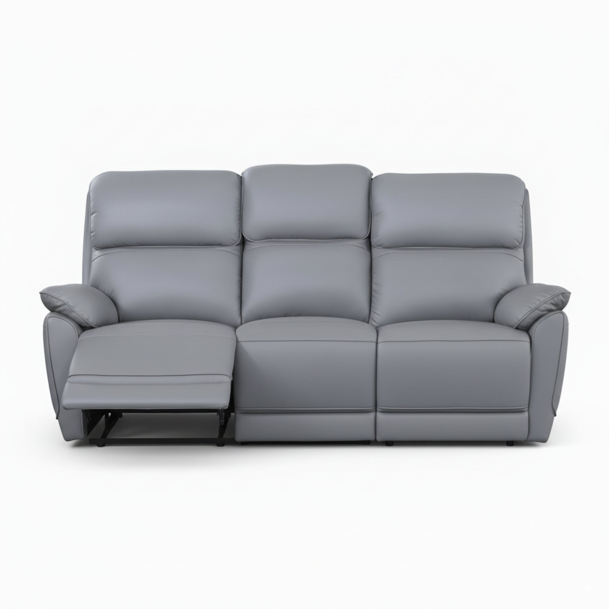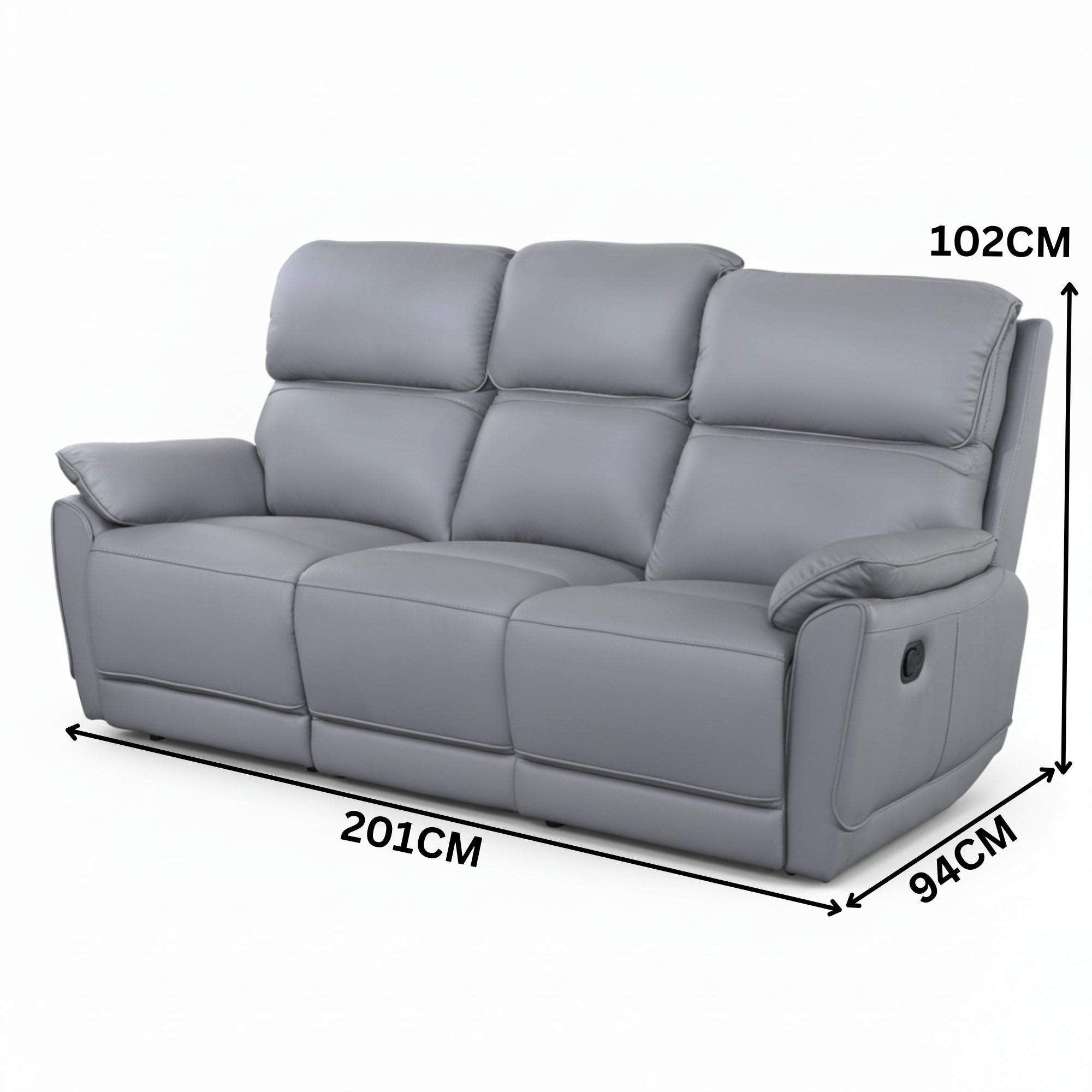 New York 3 Seater Manual Recliner Genuine Leather Stone Grey