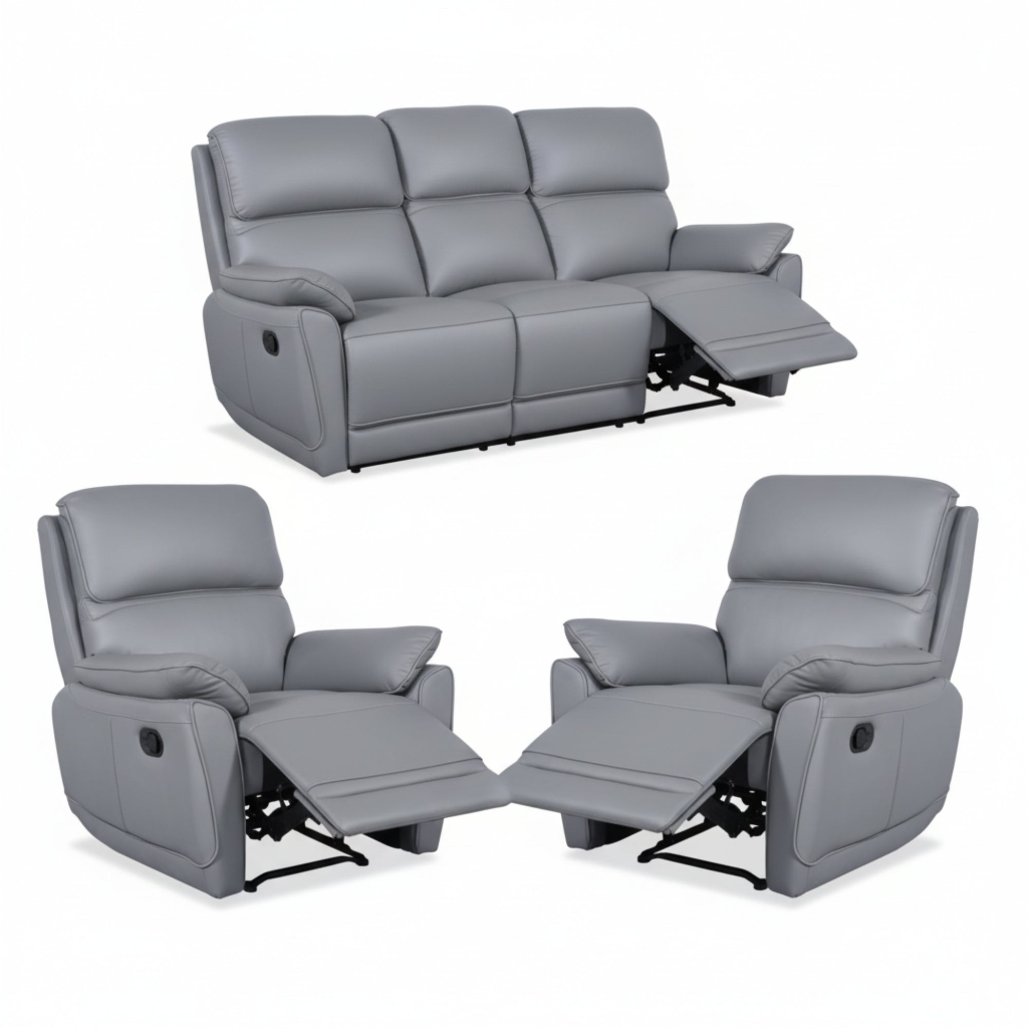New York 3+1+1 Seater Manual Recliner Genuine Leather Stone Grey