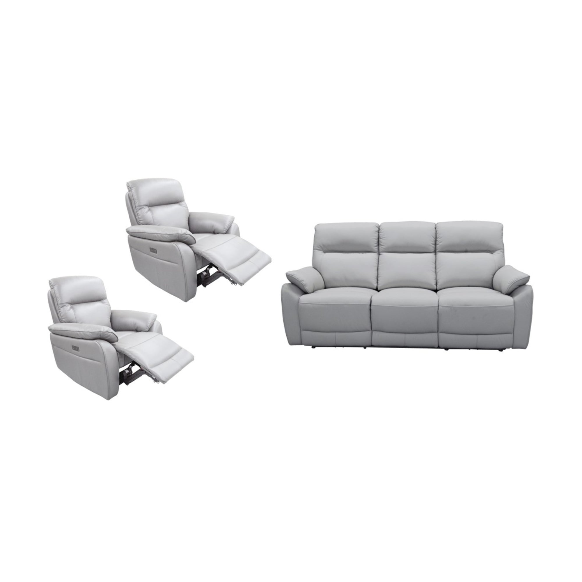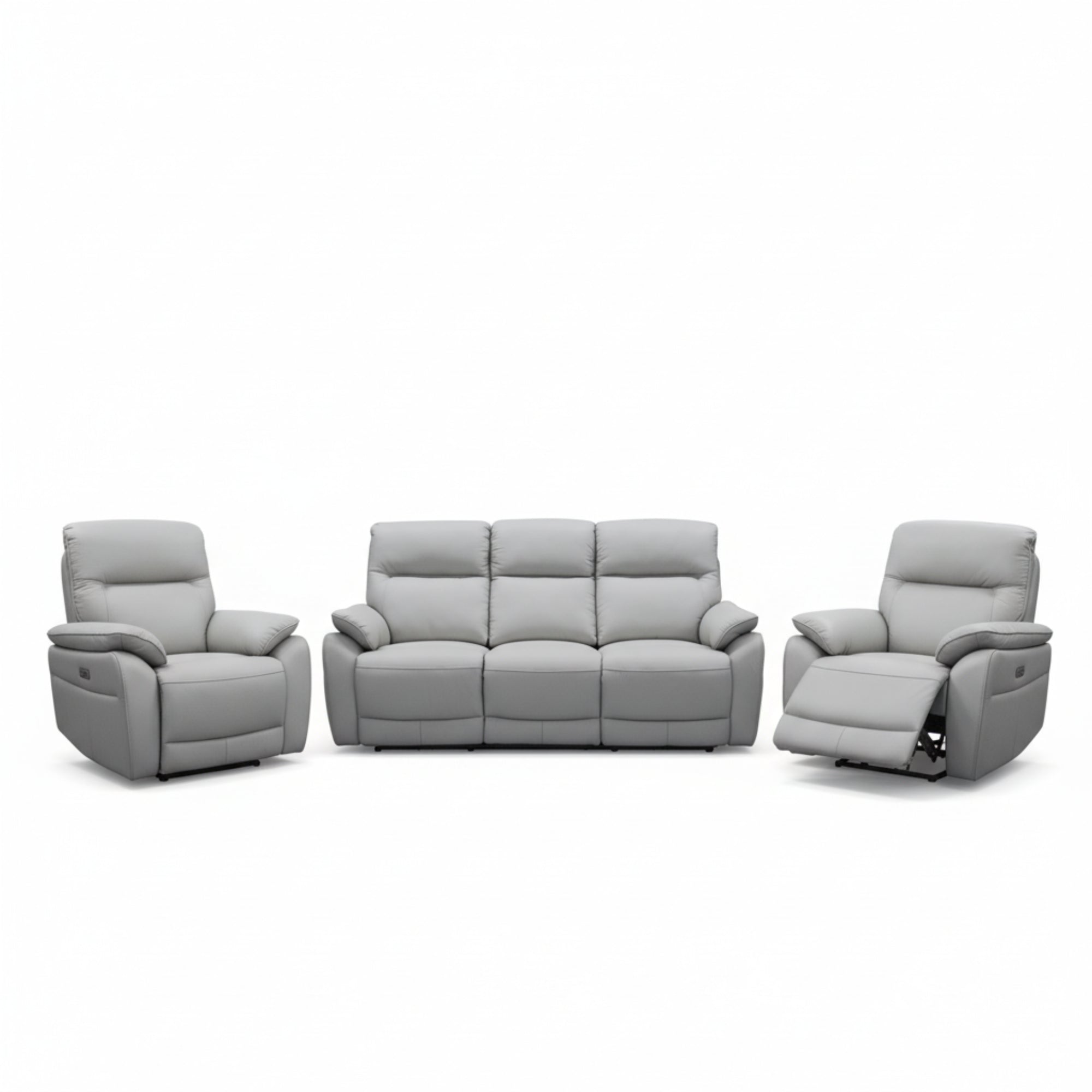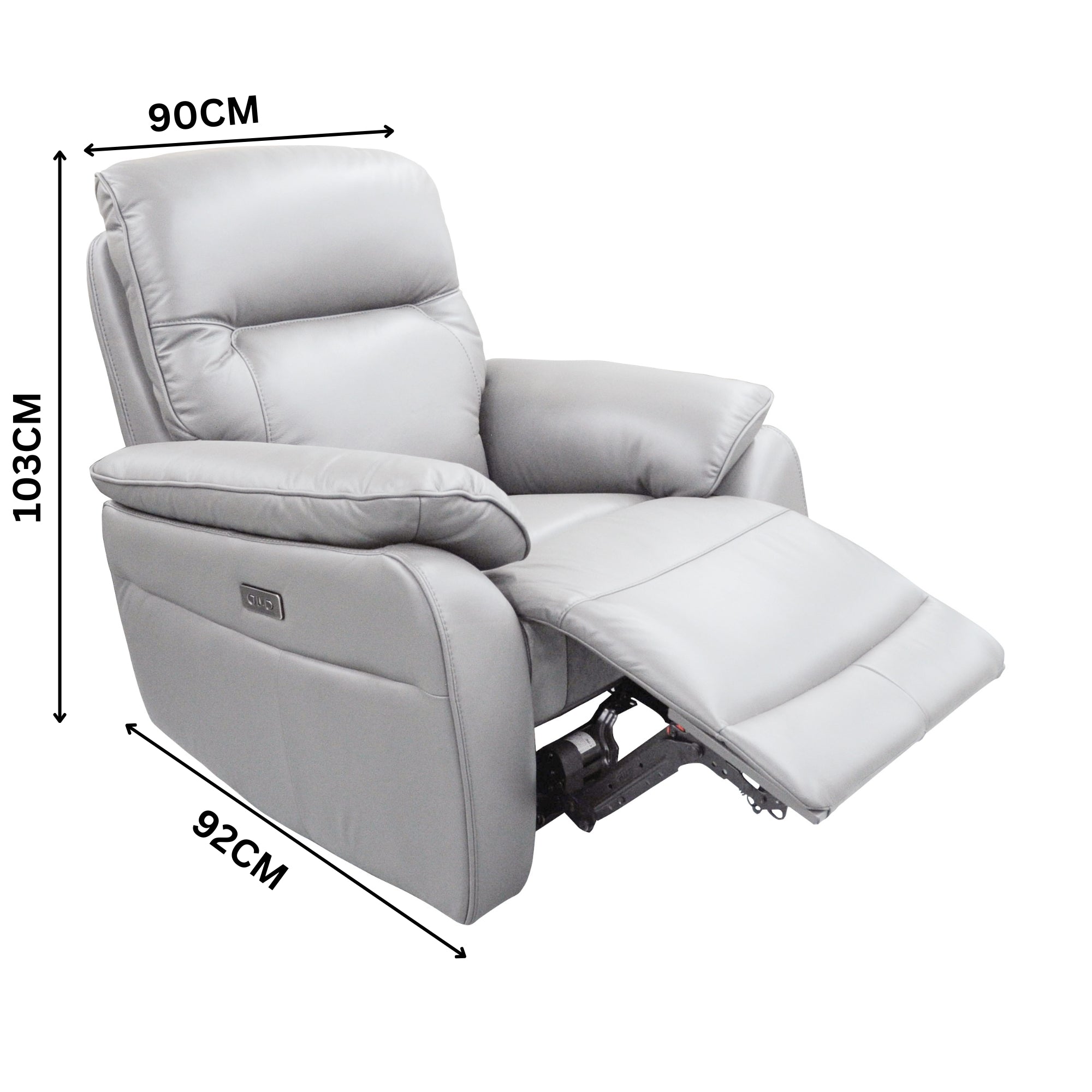 North Star 1+1+3 Seater Electric Power Genuine Leather Recliner Sofa Lounge Silver