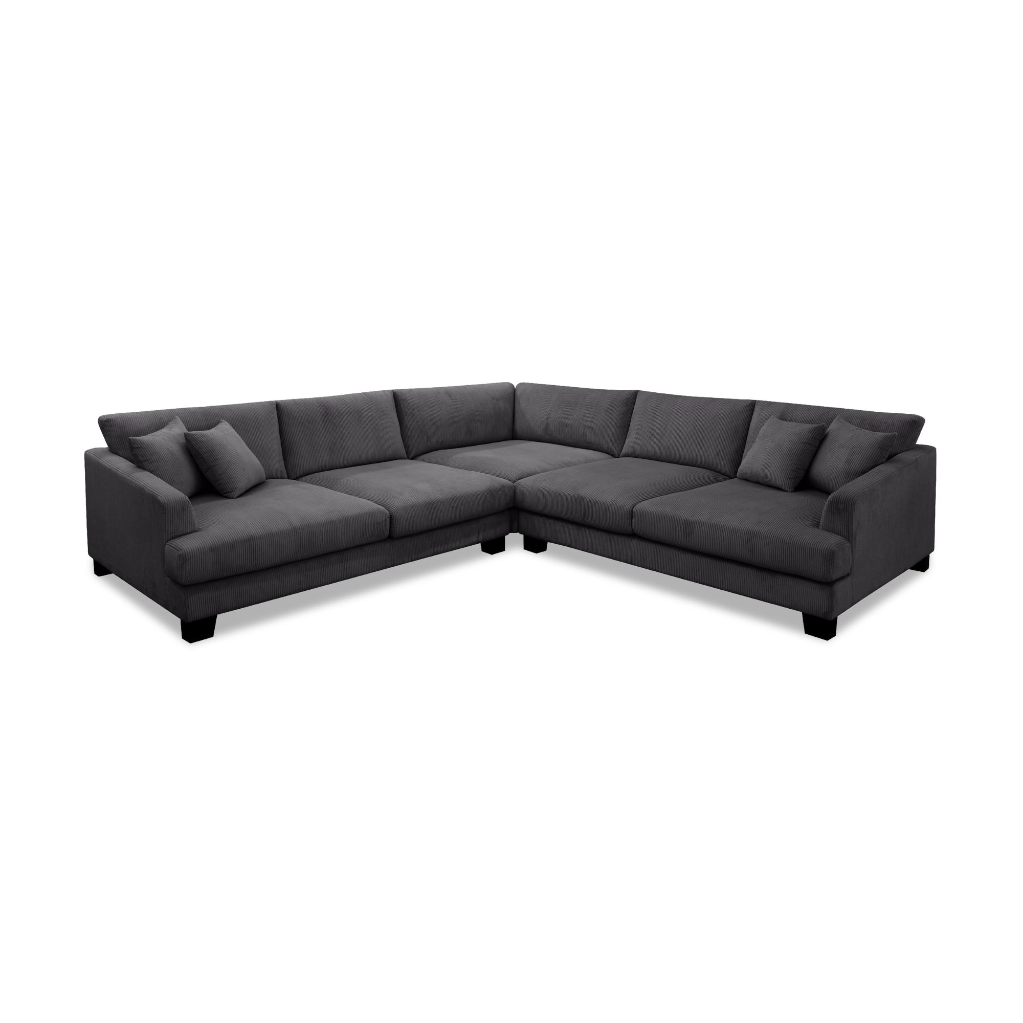Transform your living space into a haven of comfort and modern elegance with this 3Pc Corner Lounge in Charcoal Colour. Designed for both spacious family living and contemporary interiors, this lounge combines generous proportions with understated sophistication. Featuring wide, deep seating and two plush scatter cushions, this modular corner lounge offers exceptional relaxation for gatherings, movie nights, or casual lounging. Upholstered in on-trend charcoal cord fabric, it effortlessly complements any colour palette, adding a soft and cozy texture to your home decor. The modern low-profile silhouette with sleek arms and loose, non-reversible cushions delivers a chic, minimalist appeal. Supported by a sturdy plywood frame, high-density foam, and pocket spring seating, this sofa provides the perfect balance of comfort and durability. Whether you're furnishing a large open-plan living room or creating a cozy family corner, the 3Pc Corner Lounge in charcoal makes a refined and inviting centrepiece.
