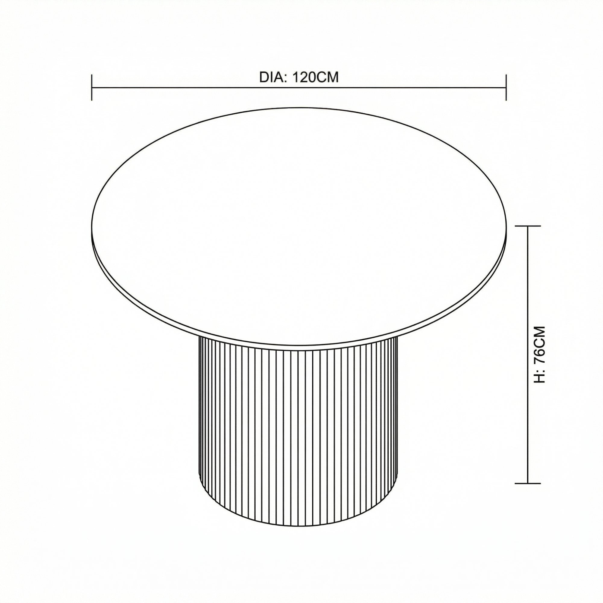 Make a bold statement in your dining space with this 120cm round shape dining table in yellow travertine look finish—a perfect fusion of modern design and everyday functionality. Featuring a beautifully crafted tabletop in a yellow travertine-inspired melamine finish, this table captures the elegance of natural stone while offering the durability and ease of engineered materials. The standout wave-pattern base adds sculptural interest and a contemporary edge, creating a striking focal point in any dining room. Designed with a beveled edge finish and seamless 3D foil wrapping, the table delivers a refined, cohesive look from every angle. Generously sized, it provides ample space for family dining, entertaining guests, and everyday living. Durable, stylish, and easy to maintain, this dining table is ideal for modern, minimalist, and designer-inspired interiors.